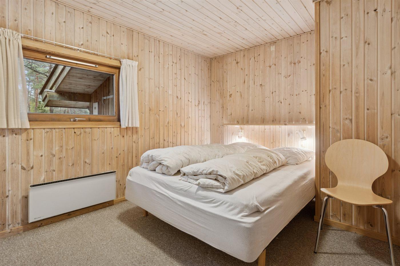 Auf einem kleinen Hügel im alten, heute von Kiefern bewachsenen Gebiet von Dueodde, liegt dieses besonders schöne Ferienhaus von hoher Qualität mit Platz für bis zu 8 Personen. Der Strand unterhalb des Hauses ist ikonisch und wurde von Lonely Planet zu einem der besten Strände Europas gewählt. Das Grundstück ist leicht hügelig, und eine Holztreppe führt zum Haus hinauf.