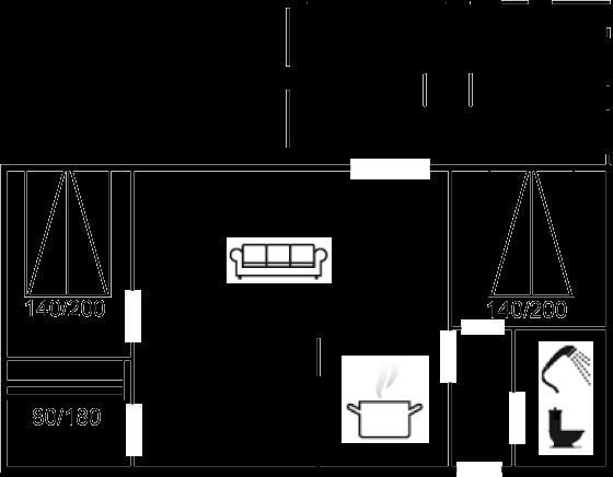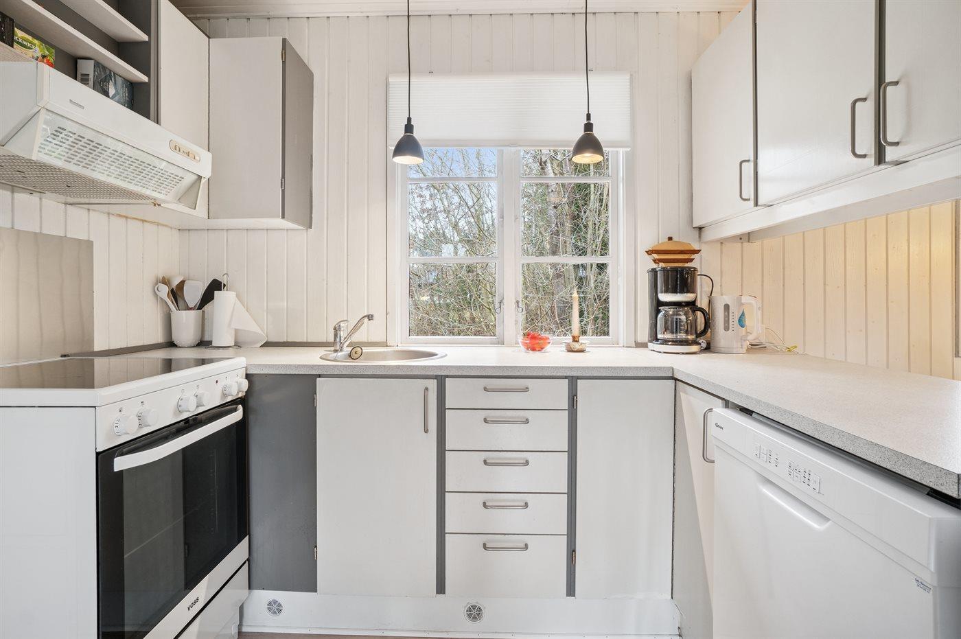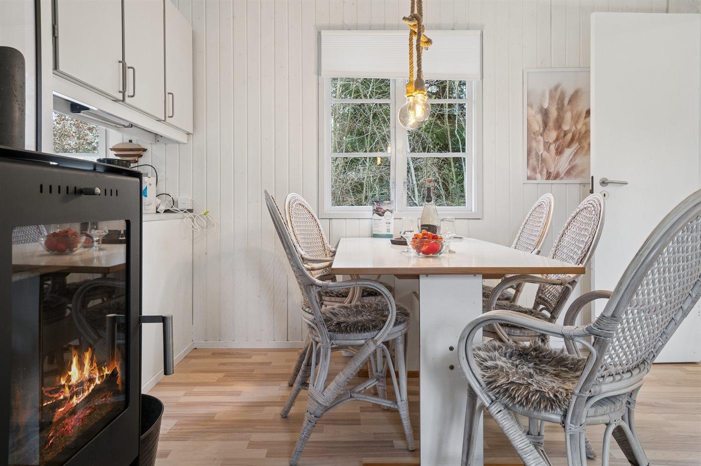 Innen wirst du von hellen und freundlichen Räumen empfangen, die klassische Ferienhaus-Gemütlichkeit ausstrahlen. Das Badezimmer verfügt über eine praktische Duschniche, und die offene Küche ist voll ausgestattet, unter anderem mit Geschirrspüler, Induktionsherd und Rührmaschine. Im Wohnzimmer findest du einen Kaminofen, ein Smart-TV und schnelles WLAN, sodass du dich entweder entspannen oder mit der Außenwelt in Verbindung bleiben kannst.