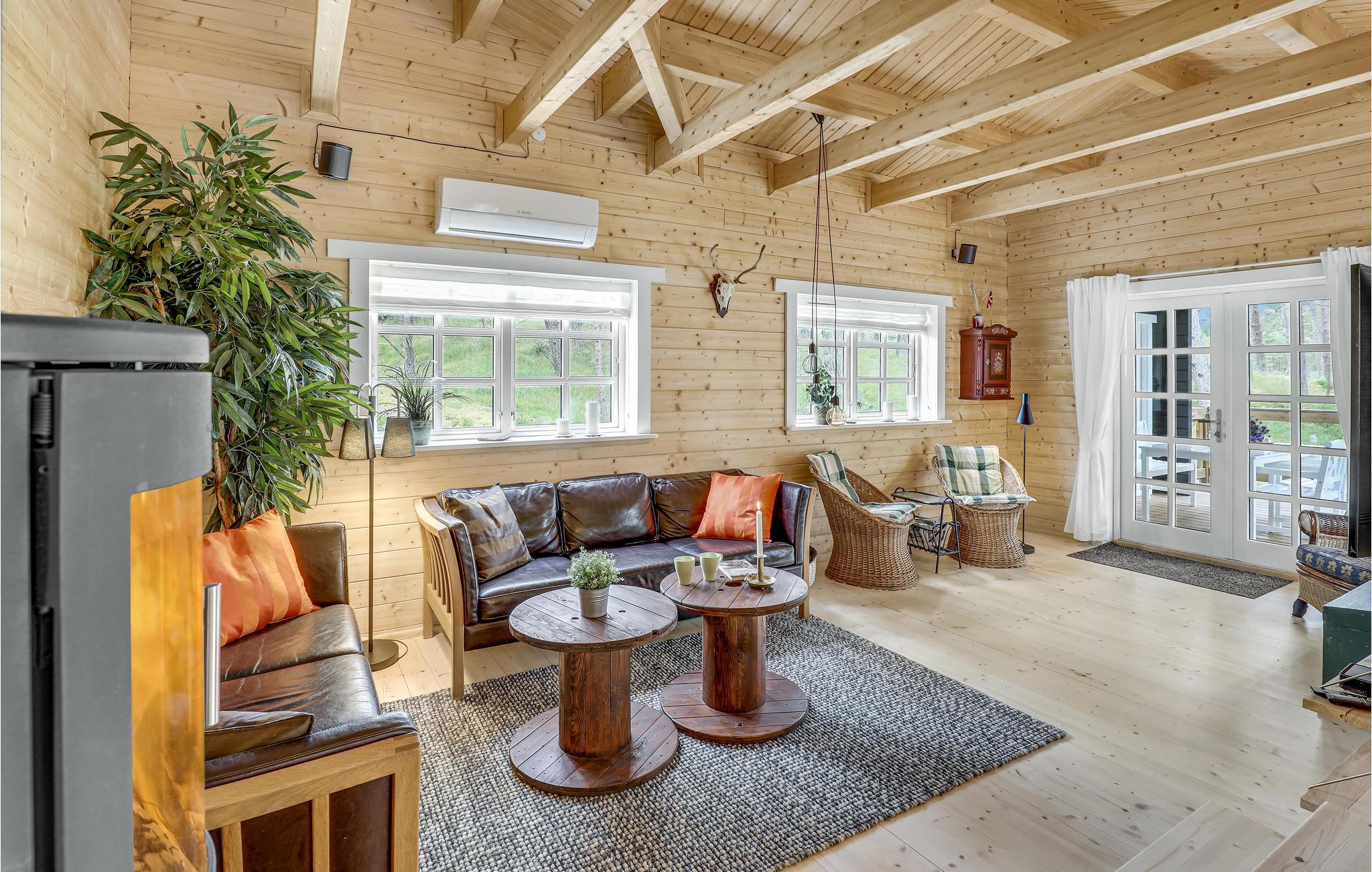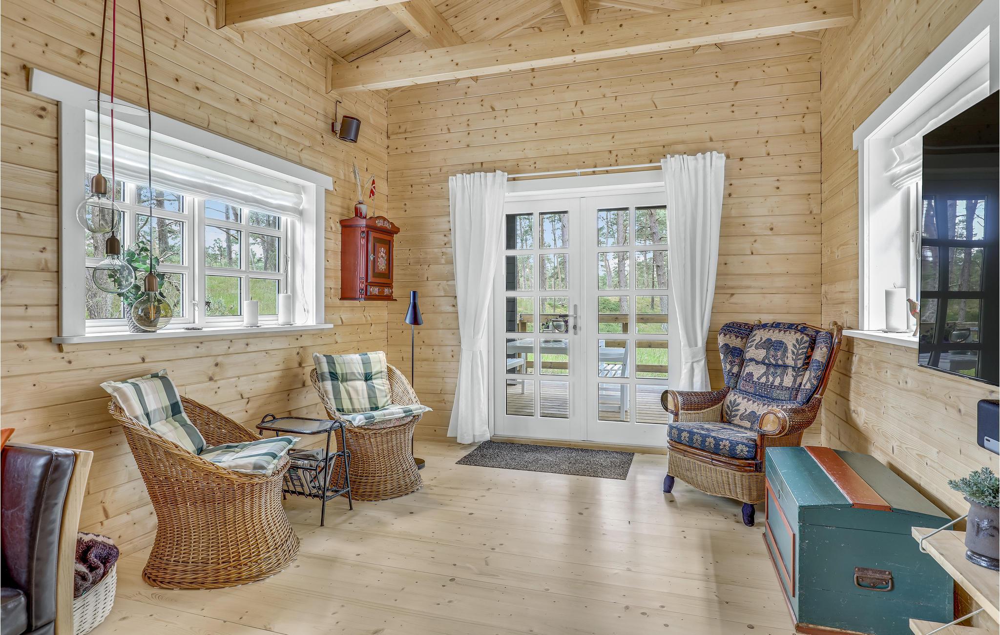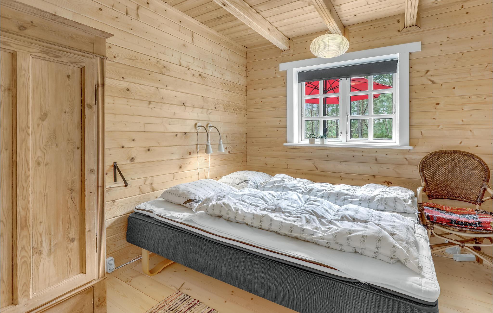 Dieses fantastische Holzhaus aus dem Jahr 2016 ist eine wahre Oase. Holz überall, gemütliche Möbel, von denen aus Sie das knisternde Feuer im Holzofen beobachten oder auf dem Breitbildfernseher einen guten Film sehen können, die riesige Holzterrasse, auf der Sie sowohl tagsüber als auch abends gesellig ihre Mahlzeiten genießen können und die grandiose Natur Bornholms direkt vor der Tür.