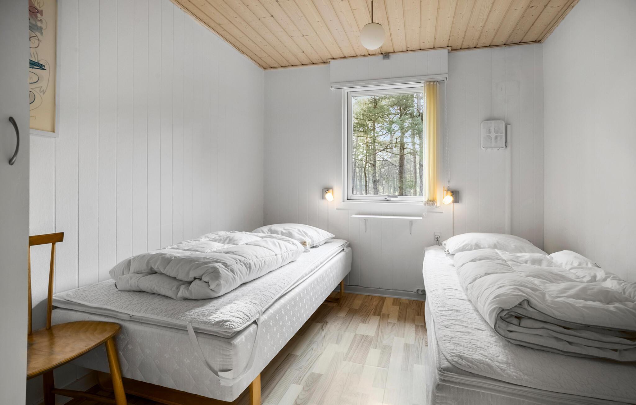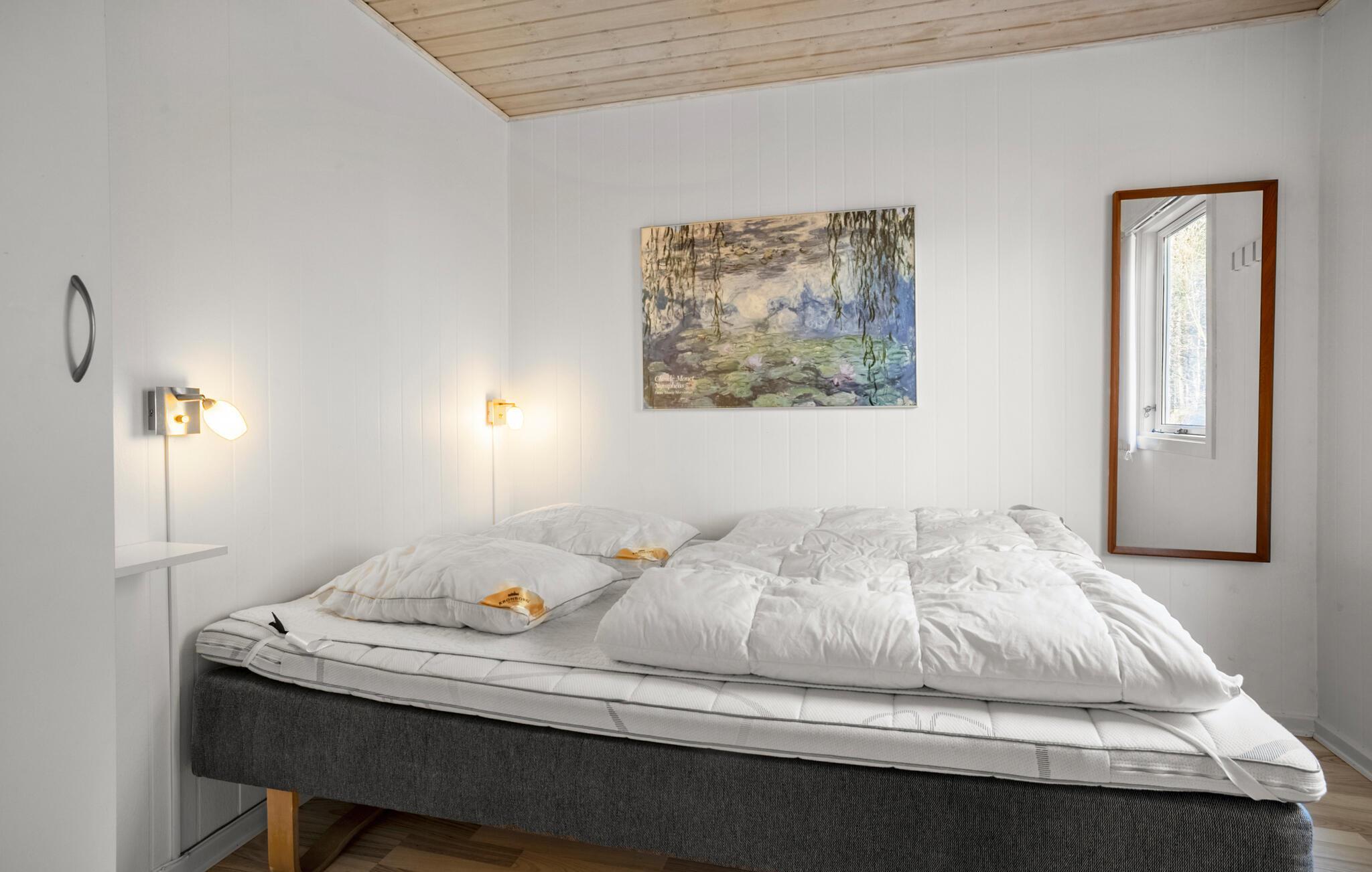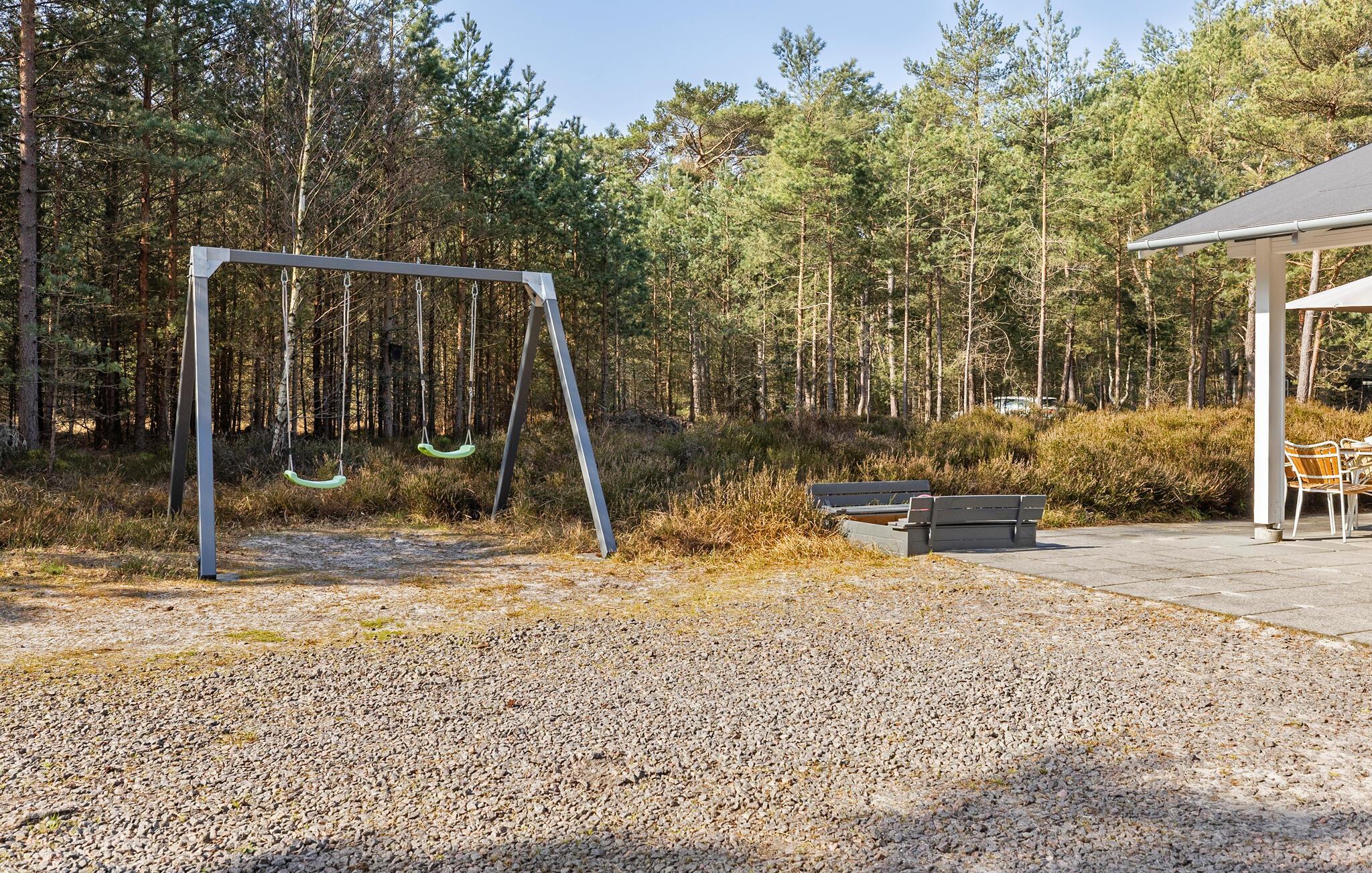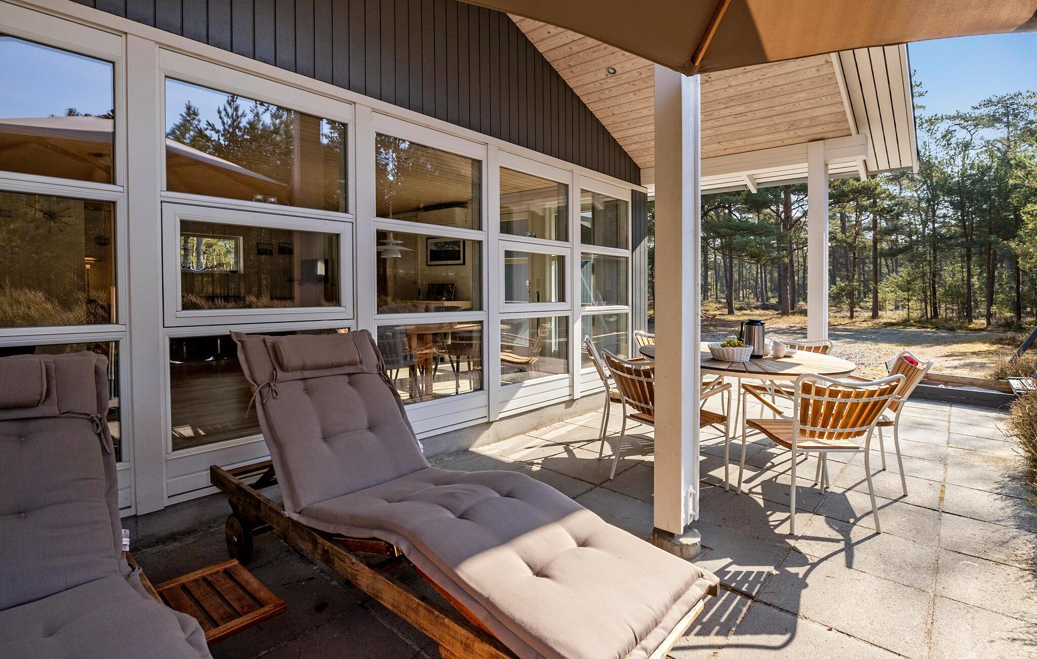 Gemütliches Ferienhaus in Dueodde, umgeben von Kiefern und Dünen, mit Whirlpool und Kaminofen für entspannte Urlaubstage.