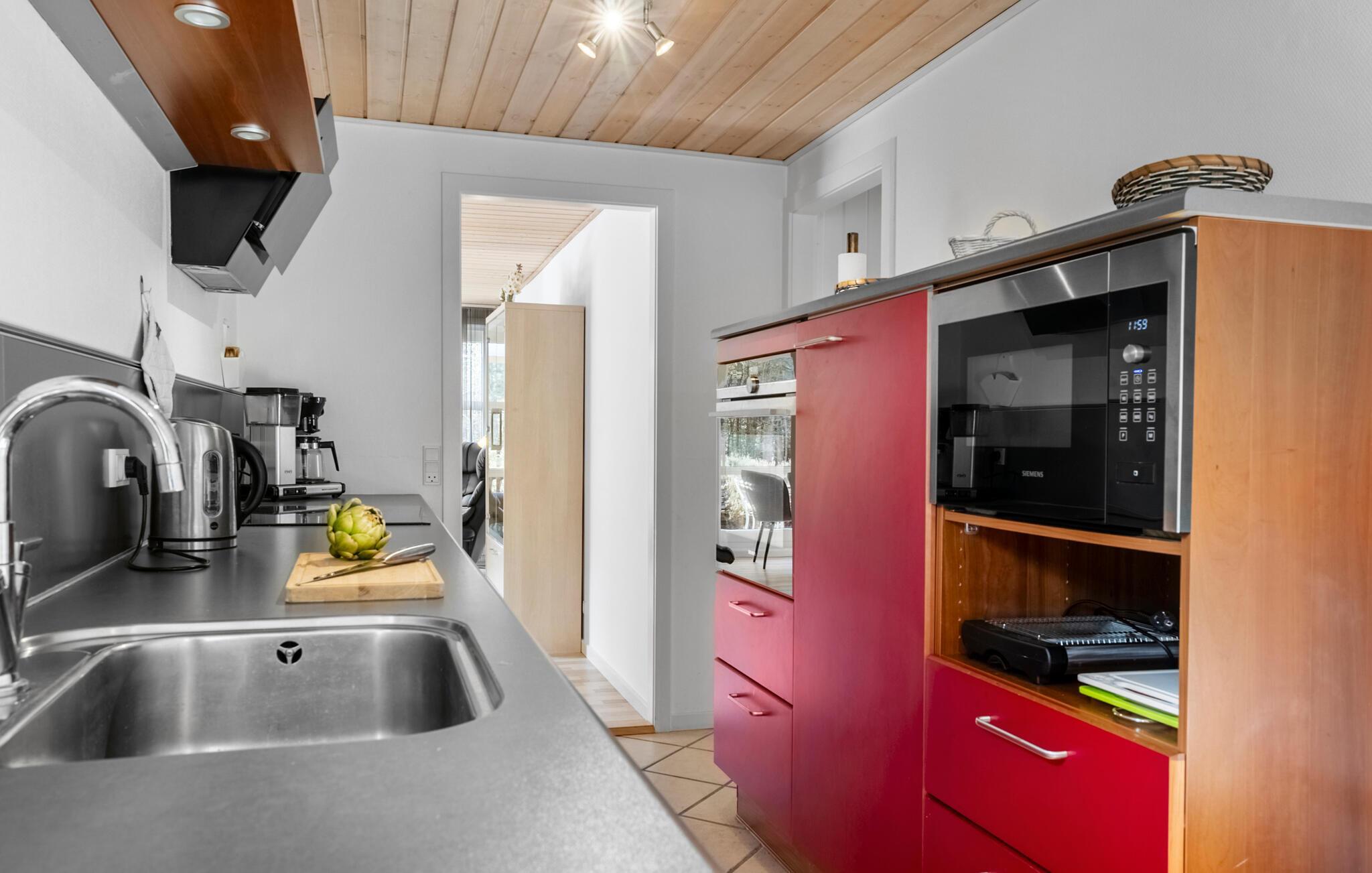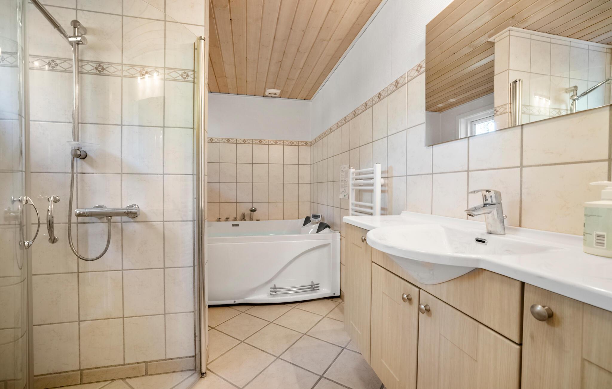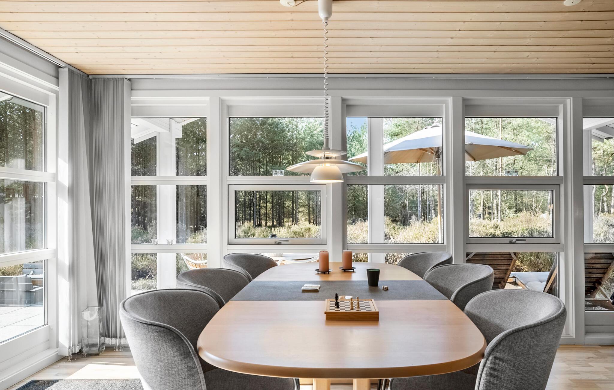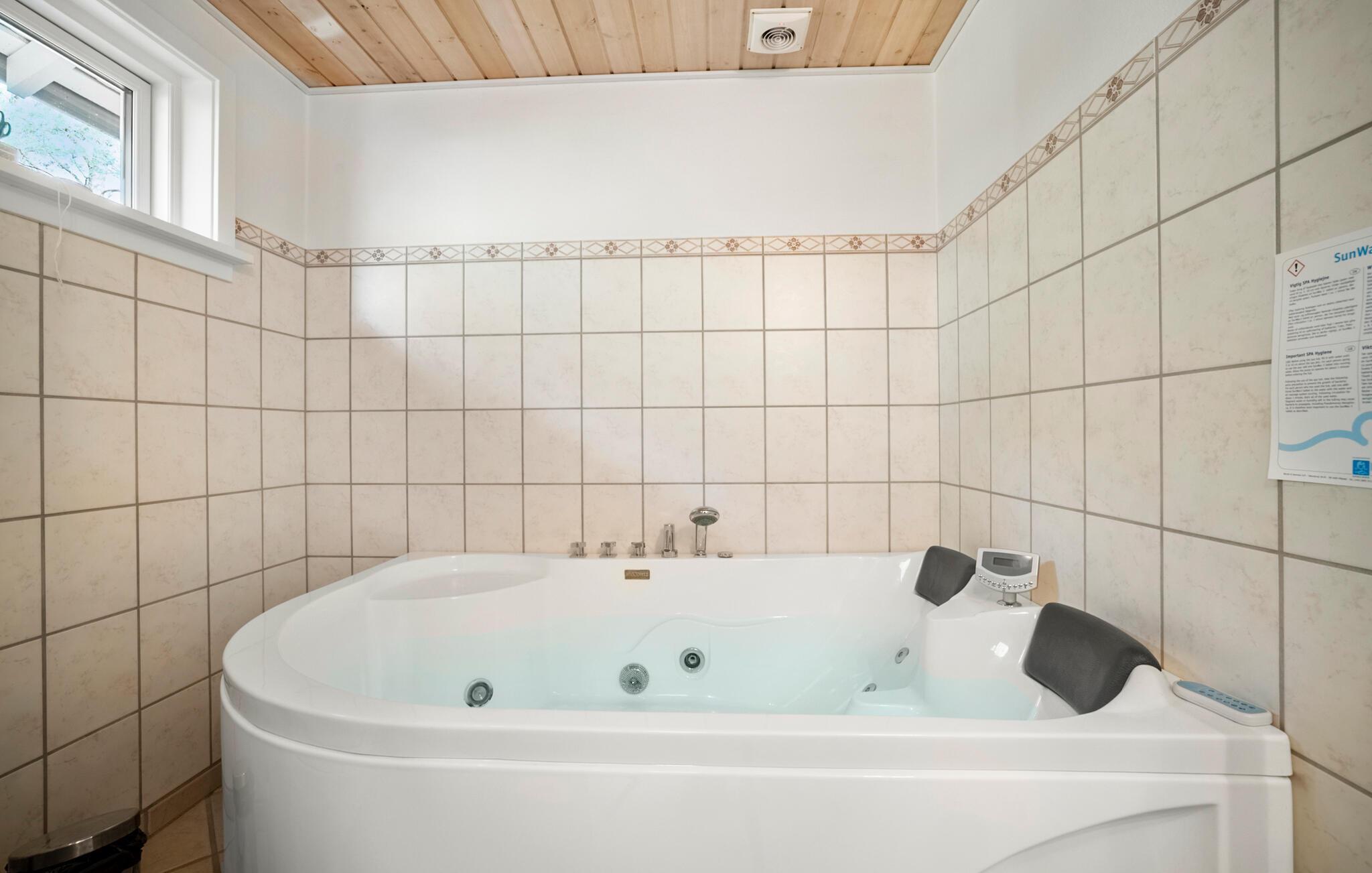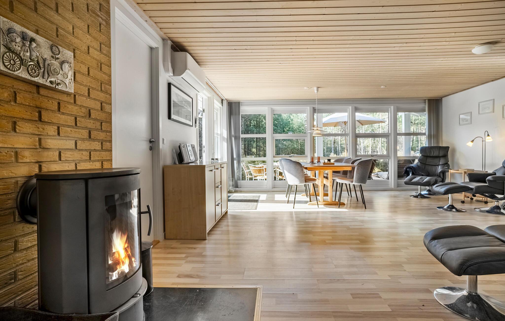 Freuen Sie sich auf erholsame Tage in diesem schönen Haus, das von herrlicher Natur, hohen Kiefern und der für Süd-Bornholm typischen Dünenlandschaft umgeben ist. Hier kann die ganze Familie eine Pause vom Alltag einlegen und die entspannte Atmosphäre dieses gemütlichen Hauses genießen, das sich harmonisch in die Umgebung einfügt. Nehmen Sie Ihr Frühstück im Wohnzimmer ein, wo die großen Fenster fast das Gefühl vermitteln, mitten im Grünen zu sitzen. Nach einem langen Spaziergang an der frischen Luft ist es besonders schön, sich mit einem Buch auf dem Sofa niederzulassen und die Wärme des Kaminofens zu genießen. Für noch mehr Entspannung gönnen Sie sich ein Bad im Whirlpool.