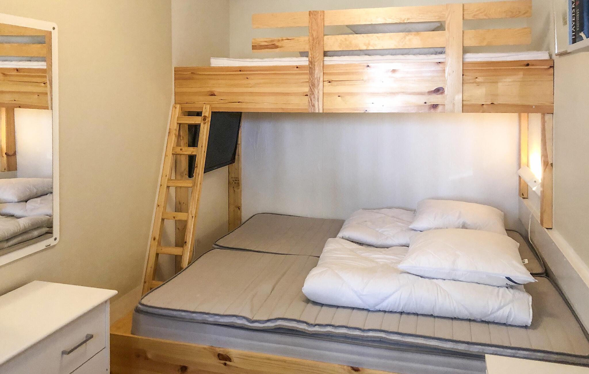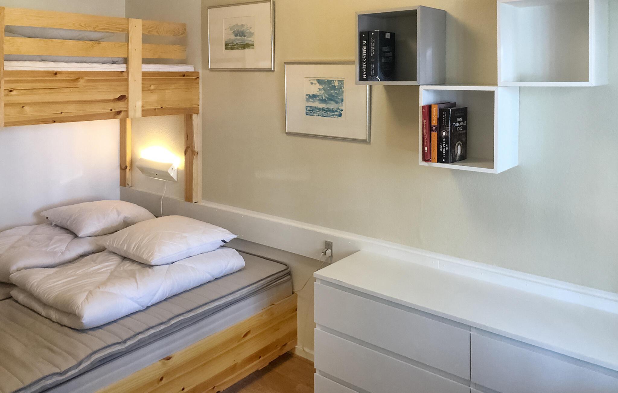 Schlafzimmer (nr. 1) - 2 Schlafmöglichkeiten. (Doppelbett(en)). 1 Schlafmöglichkeit. (Etagenbett).
