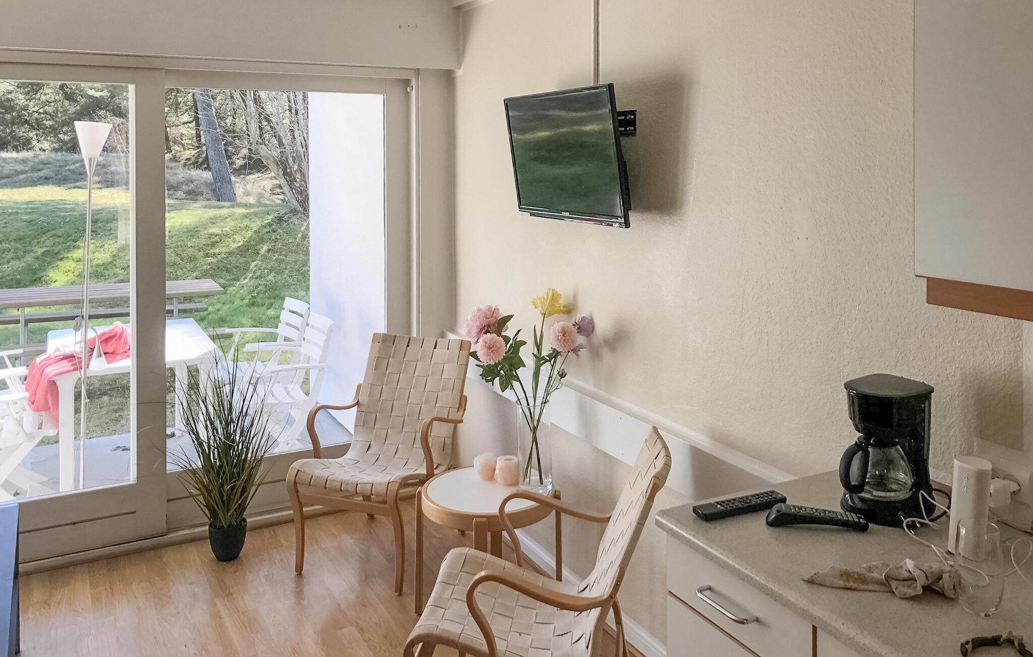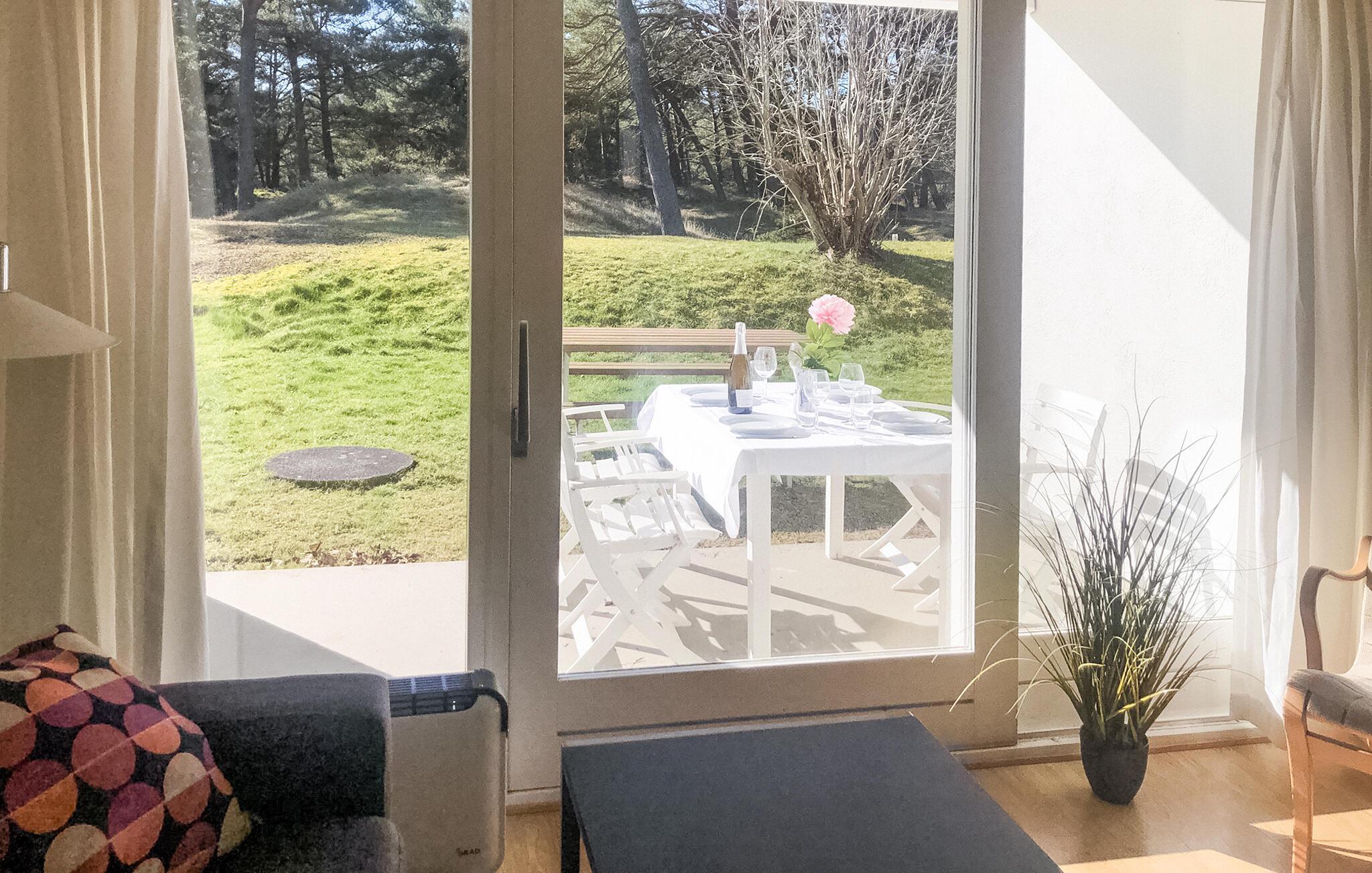 Gemütliche Ferienwohnung in Dueodde mit Terrasse, Blick ins Grüne und Nähe zum Strand, ideal für erholsame Tage auf Bornholm.