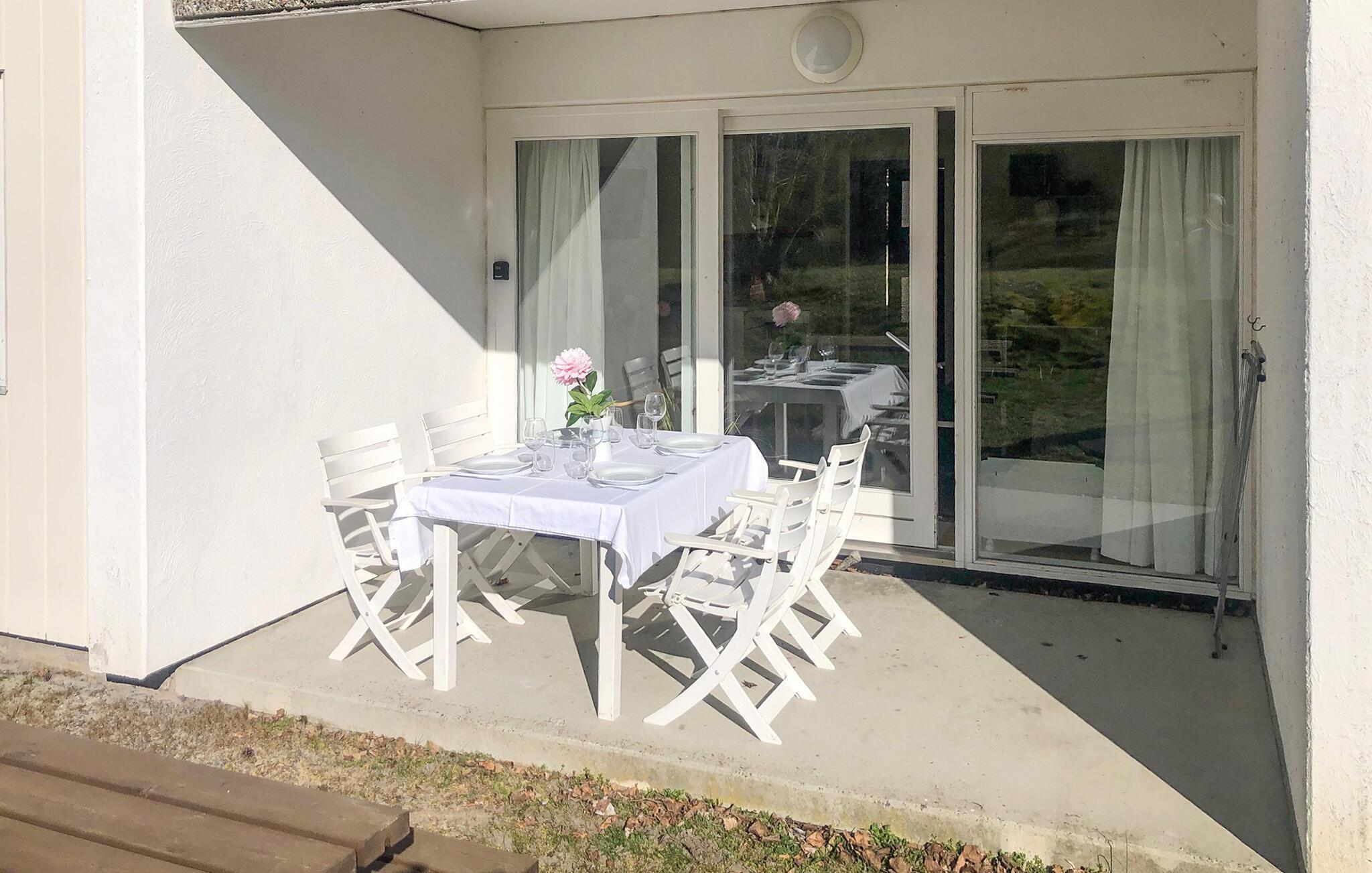 Ihre gemütliche Wohnung bietet Ihnen alles, was Sie für einen entspannten Urlaub brauchen. Beginnen Sie Ihren Tag mit einem Frühstück auf Ihrer eigenen Terrasse. Genießen Sie den Blick ins Grüne und die frische Luft, während Sie sich auf einen Tag voller Entdeckungen vorbereiten. Das helle und modern eingerichtete Wohnzimmer lädt zum Entspannen ein. Lehnen Sie sich auf dem Sofa zurück oder machen Sie es sich in den bequemen Sesseln gemütlich und lassen Sie den Abend entspannt ausklingen. In der Küche können Sie Ihre Mahlzeiten zubereiten und diese im Essbereich oder draußen auf der Terrasse genießen.