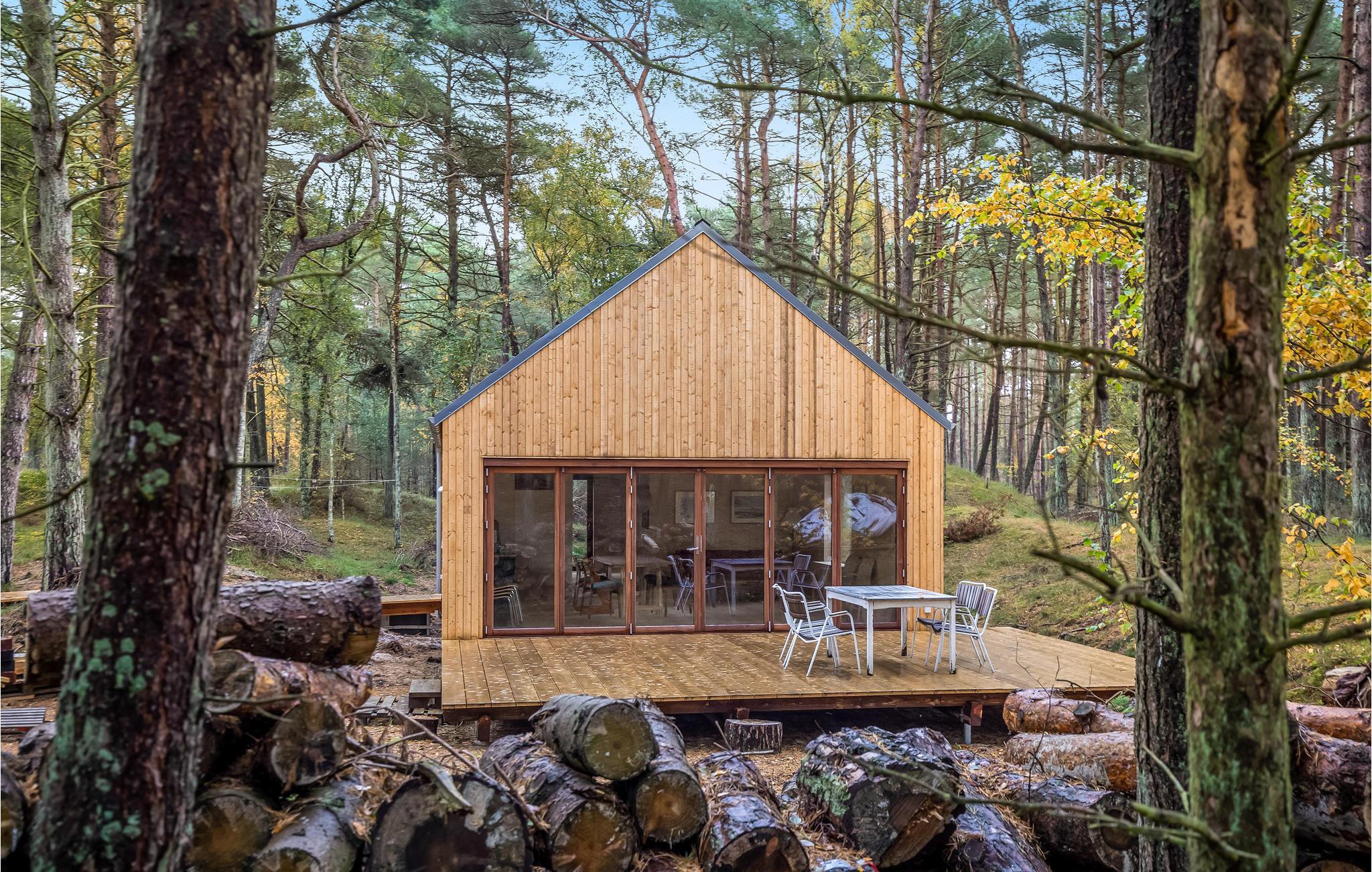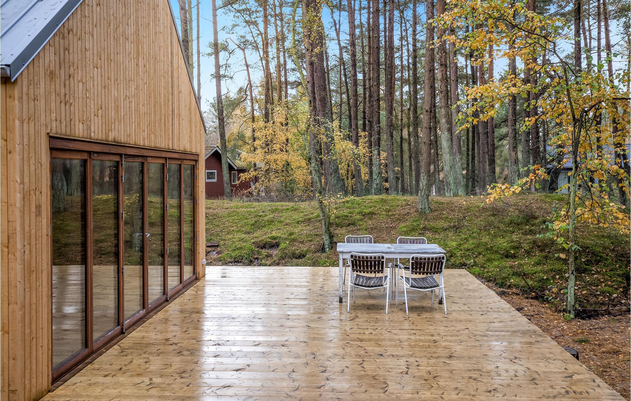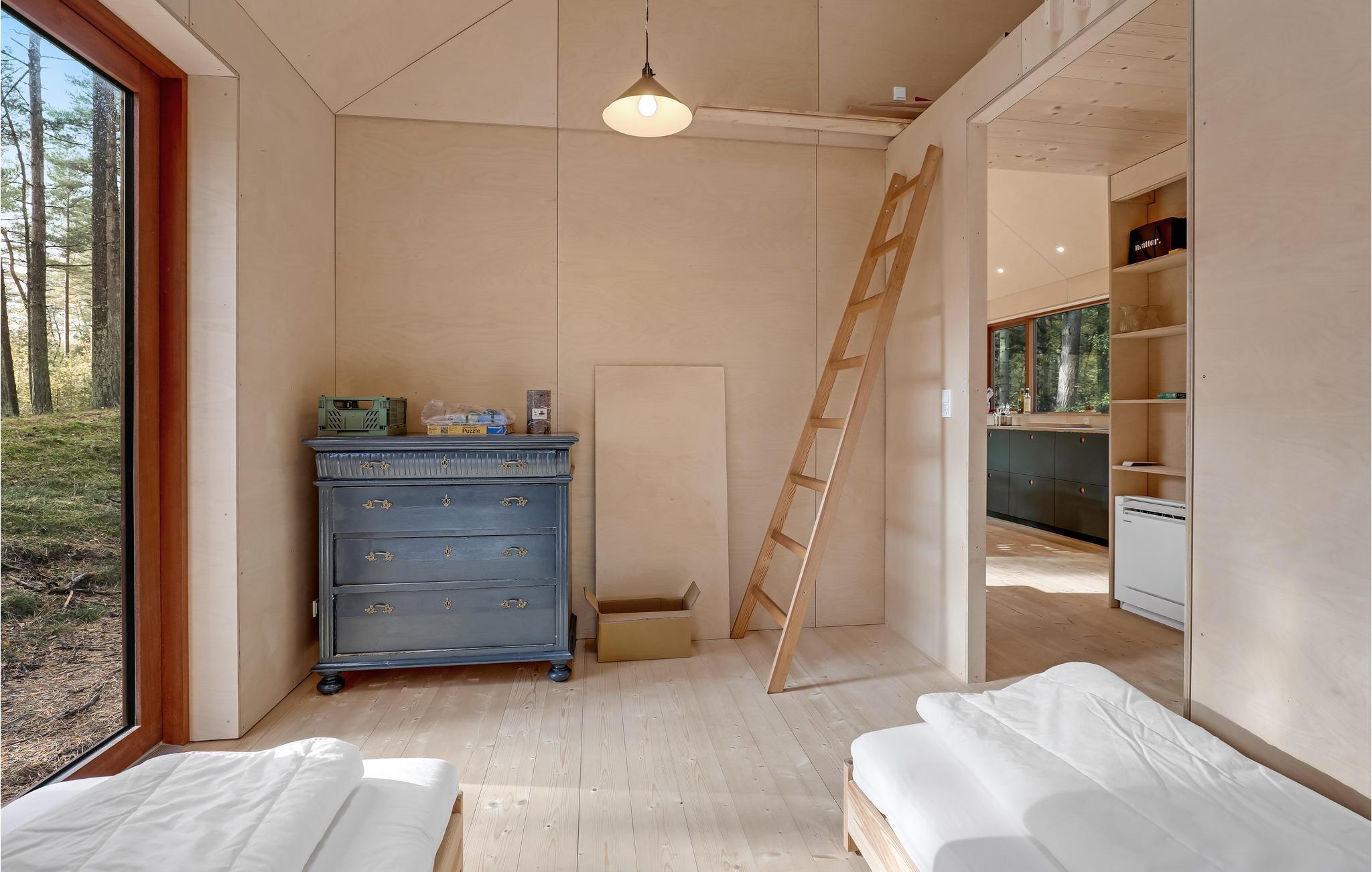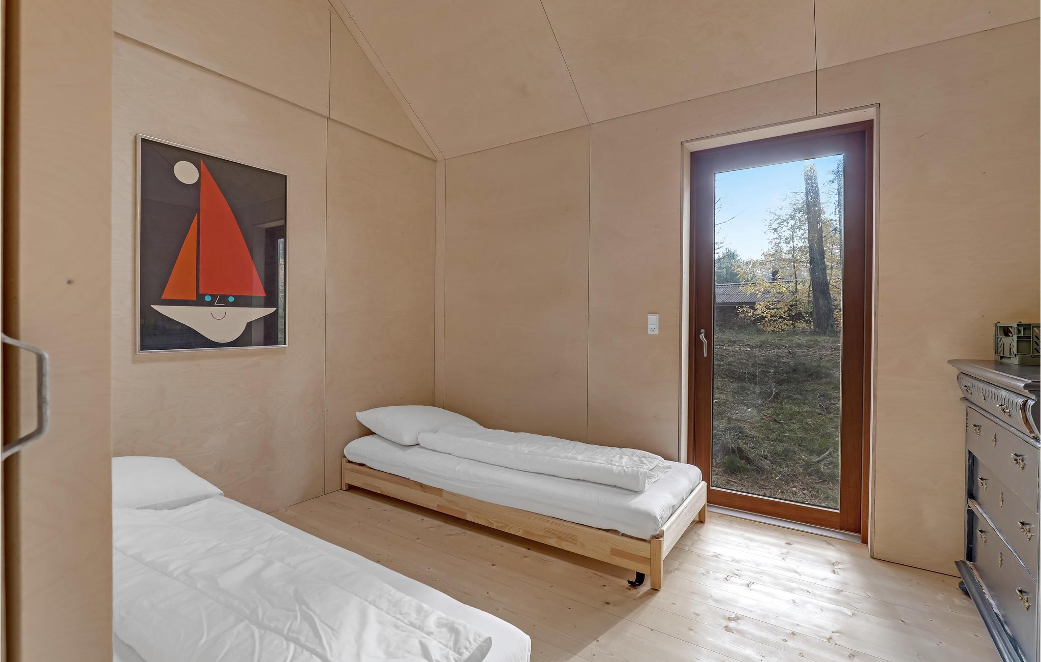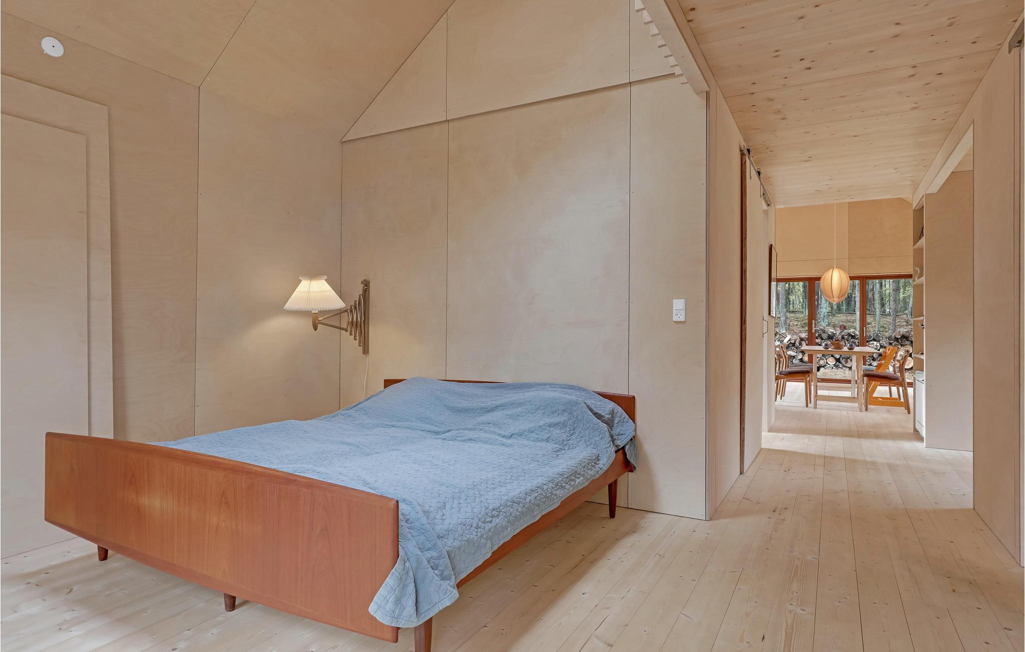 Freuen Sie sich auf einen entspannenden Aufenthalt in diesem modernes, in einem Waldstück gelegenen Ferienhaus. Die vielen Fensterpartien und Türe des Hauses lassen vieles Licht ein und schaffen eine angenehme Atmosphäre und Nähe zur umgebenden Landschaft. Der Mittelpunkt des Hauses ist das große, kombinerte Wohnzimmer und Küche mit Dachschräge, sodass Sie sich in der modern ausgestatteten Küche kulinarisch entfalten und gleichzeitig mit den übrigen Gästen unterhalten können. Am Esstisch können Sie mit Ihrer Familie oder Ihren Freunden schön gemeinsam essen, und an Sommerabenden die Türe aufmachen und sich auf die große Terrase zurückziehen, wo Sie mit Waldblick und Vogelgesang den Tag ausklingen lassen können.