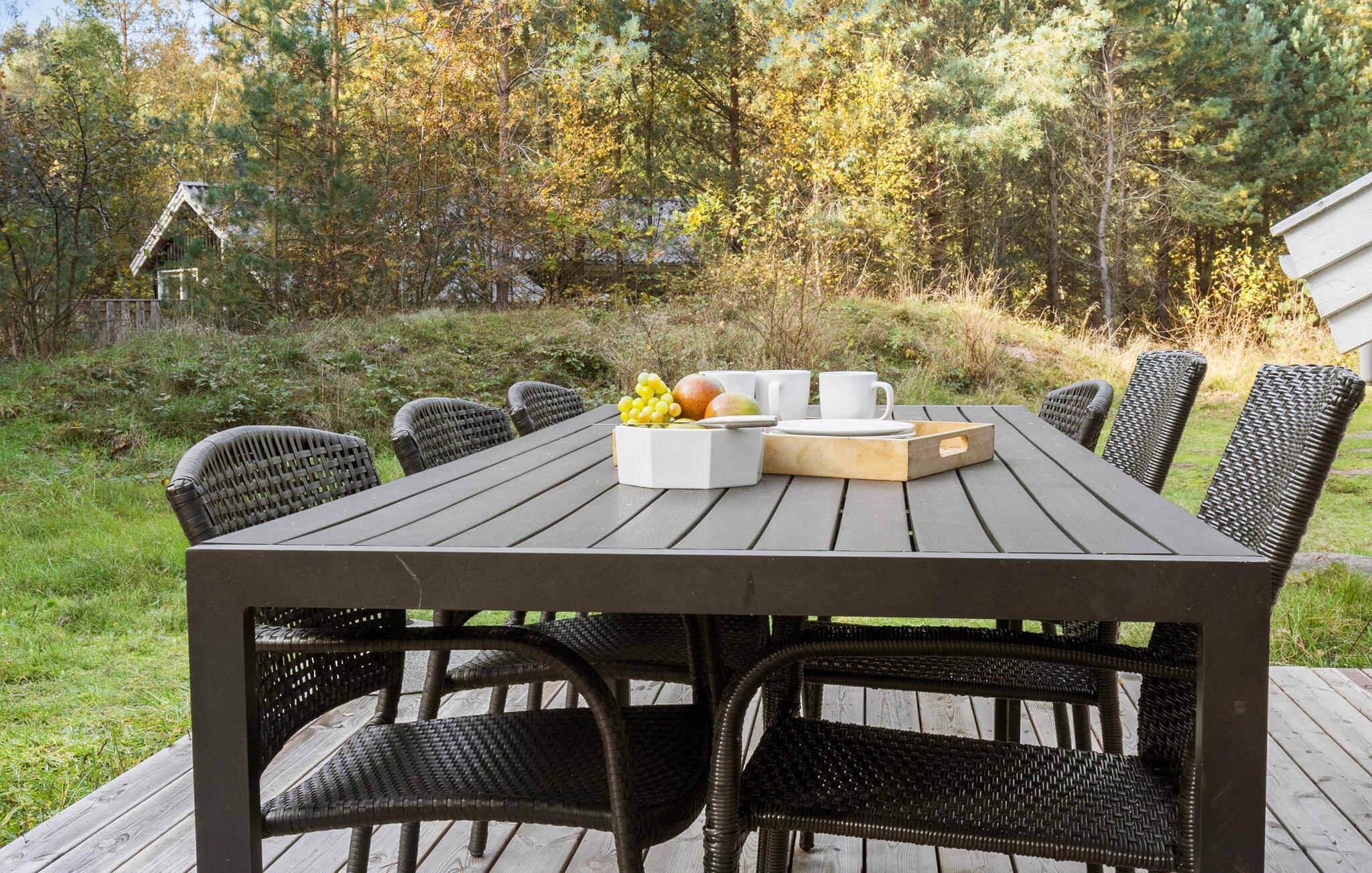 Ihr gemütliches Ferienhaus in Dueodde bietet Ihnen den Komfort, den Sie für einen gelungenen Urlaub brauchen. Beginnen Sie Ihren Tag mit einem Frühstück auf der Terrasse und genießen Sie den Blick in den eigenen Garten, der viel Platz zum Entspannen und Erholen bietet. Der helle Wohnbereich lädt nach einem aktiven Tag dazu ein, sich auf dem Sofa zurückzulehnen und die Abendstunden in Ruhe zu genießen. An kühleren Tagen sorgt der Kaminofen für wohlige Wärme und eine entspannte Atmosphäre. Die moderne, großzügige Küche ist ideal, um köstliche Mahlzeiten zuzubereiten, die Sie im Essbereich oder auf der Terrasse genießen können.