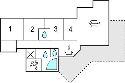 Badezimmer (nr. 1) - WC. Warmes und kaltes Wasser. Dusche
