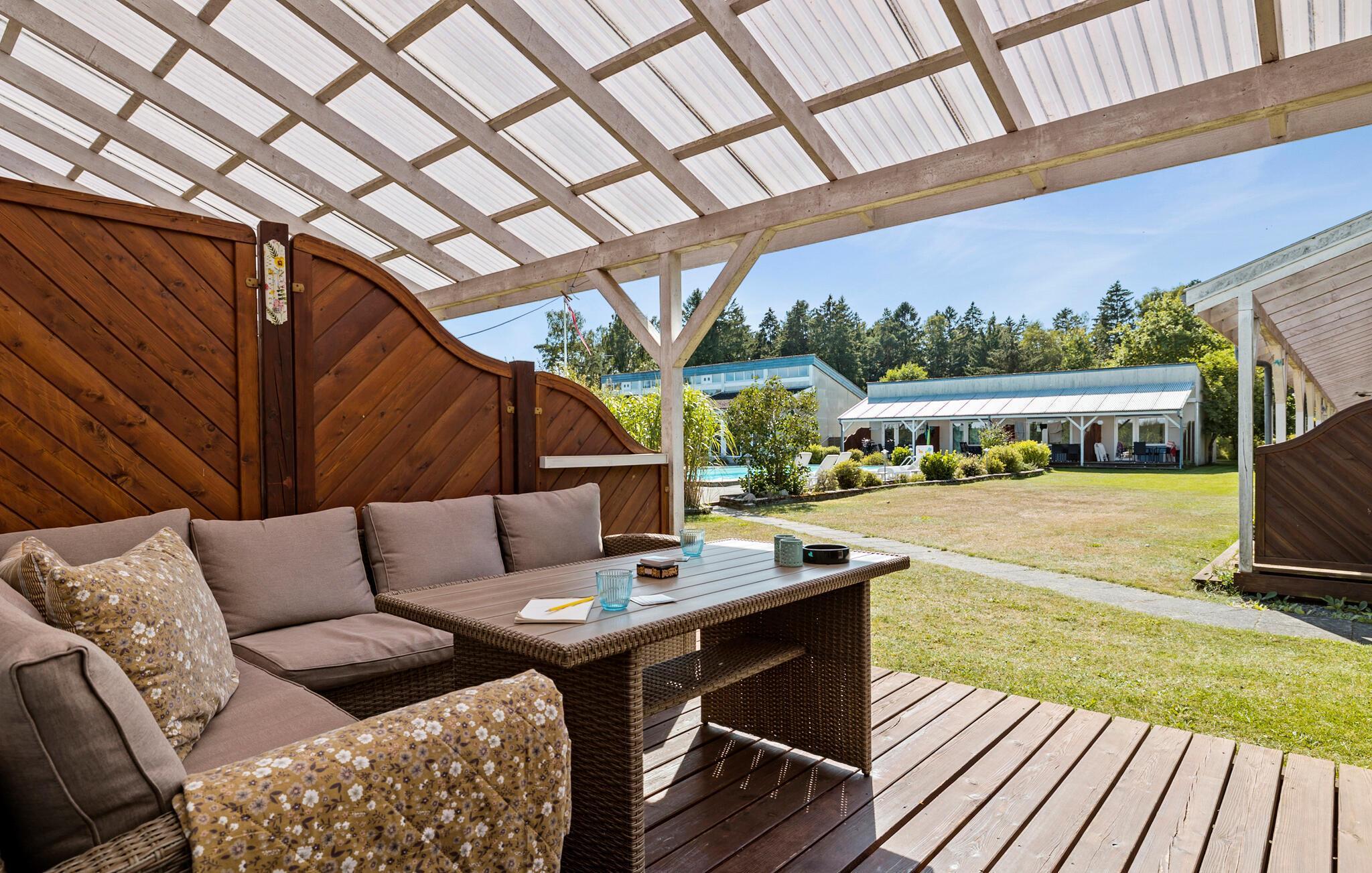 Herzlich Willkommen im Dueodde Feriepark im Südosten den Sonnenscheininsel Bornholm. Gelegen auf einem bewaldeten Grundstück voller Grün, spüren Sie hier von Anfang die entschleunigte, entspannte Urlaubsatmosphäre. Entdecken Sie auf dem Gelände des Parks die verschiedenen Freizeitmöglichkeiten: Starten Sie Ihre Tage je nach Jahreszeit mit einem Sprung in das Hallenbad oder den Outdoor-Pool, mit einem Besuch der Fitnessgeräte, duellieren Sie sich beim Tischtennis, Tennis oder Pétanque. Tagsüber wollen die Kinder sicher mit Ihnen auf dem Spielplatz spielen, und abends entspannen Sie sich in der Sauna beim Hallenbad und lassen einen weiteren aktiven Tag gemächlich Revue passieren.