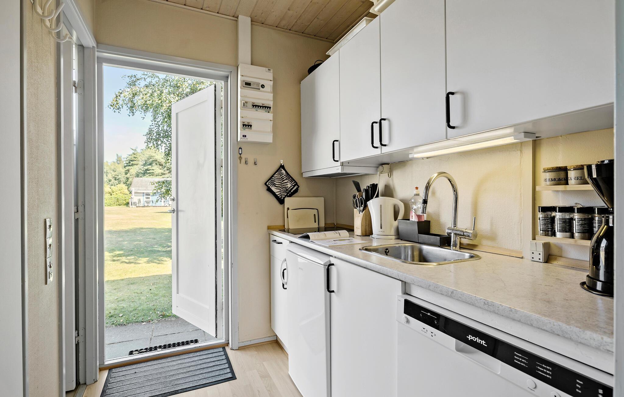 Für jedermann lässt sich vor Ort eine passende Beschäftigung finden, und nach nur wenigen Schritten sind Sie am wohl traumhaftesten Strand der Insel: Am Dueodde Strand machen Sie lange Spaziergänge an der frischen Luft, gehen baden oder tanken Sonne. Genießen Sie den Blick aufs Meer bis zum Horizont, und das ewige Rauschen der Wellen. Auch in der Nähe finden Sie mit dem Balka oder Sømarken Strand weitere reizvolle Abschnitte an der Küste. Besuchen Sie auch die einladenden Ortschaften der Gegend, mit verschiedenen Cafés, Restaurants und Geschäften, wie zum Beispiel Snogebæk oder Nexø. Rund drei Kilometer entfernt können Sie einige Runden auf dem nächsten Golfplatz drehen.