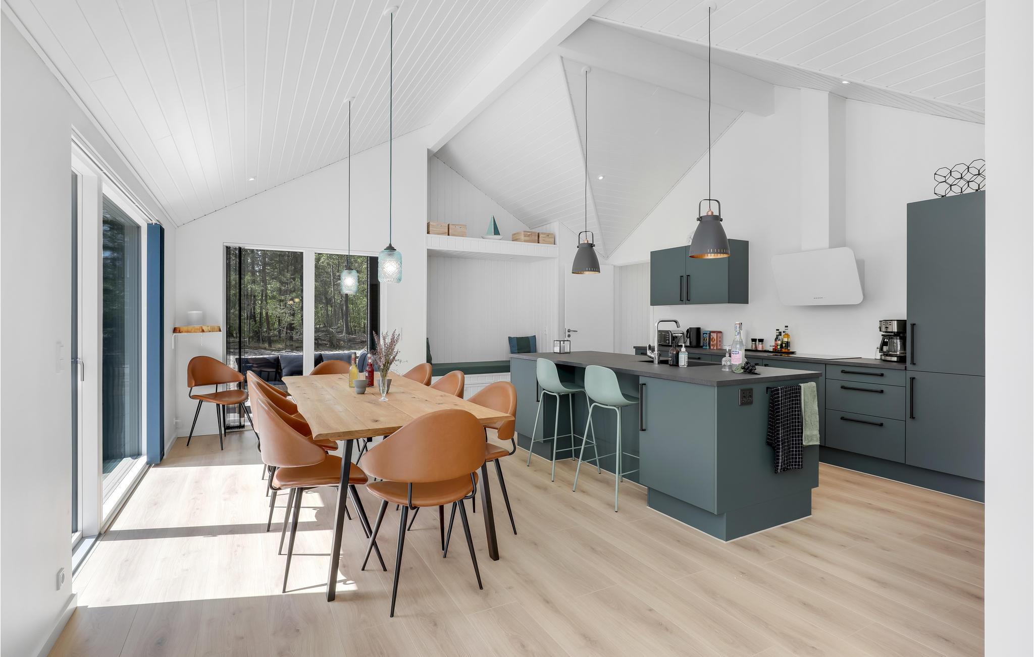 Die idyllische Stimmung fängt im Innenraum an, wo mit Liebe zum Detail eingerichtet und an gemütlichem Inventar nicht gespart wurde. Machen Sie es sich in den einigen Ecken des geräumigen Domizils bequem, lesen Ihre Urlaubslektüre oder freuen Sie sich auf ein gemeinsames Frühstück im taghellen Raum. Im Außenbereich erwartet Sie eine offene Terrasse mit Gartenmöbeln und Grill, wo Sie entspannte Stunden im Freien genießen können, zusammen frühstücken und zum Abend hin grillen können.