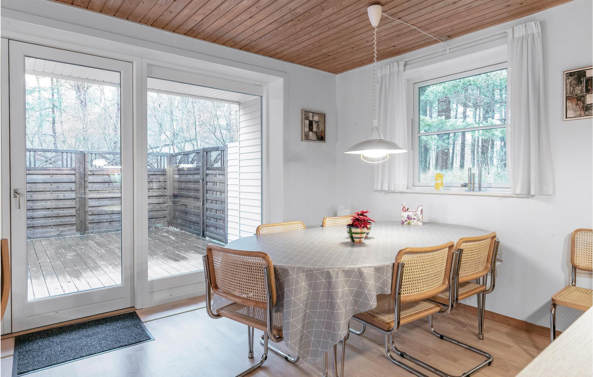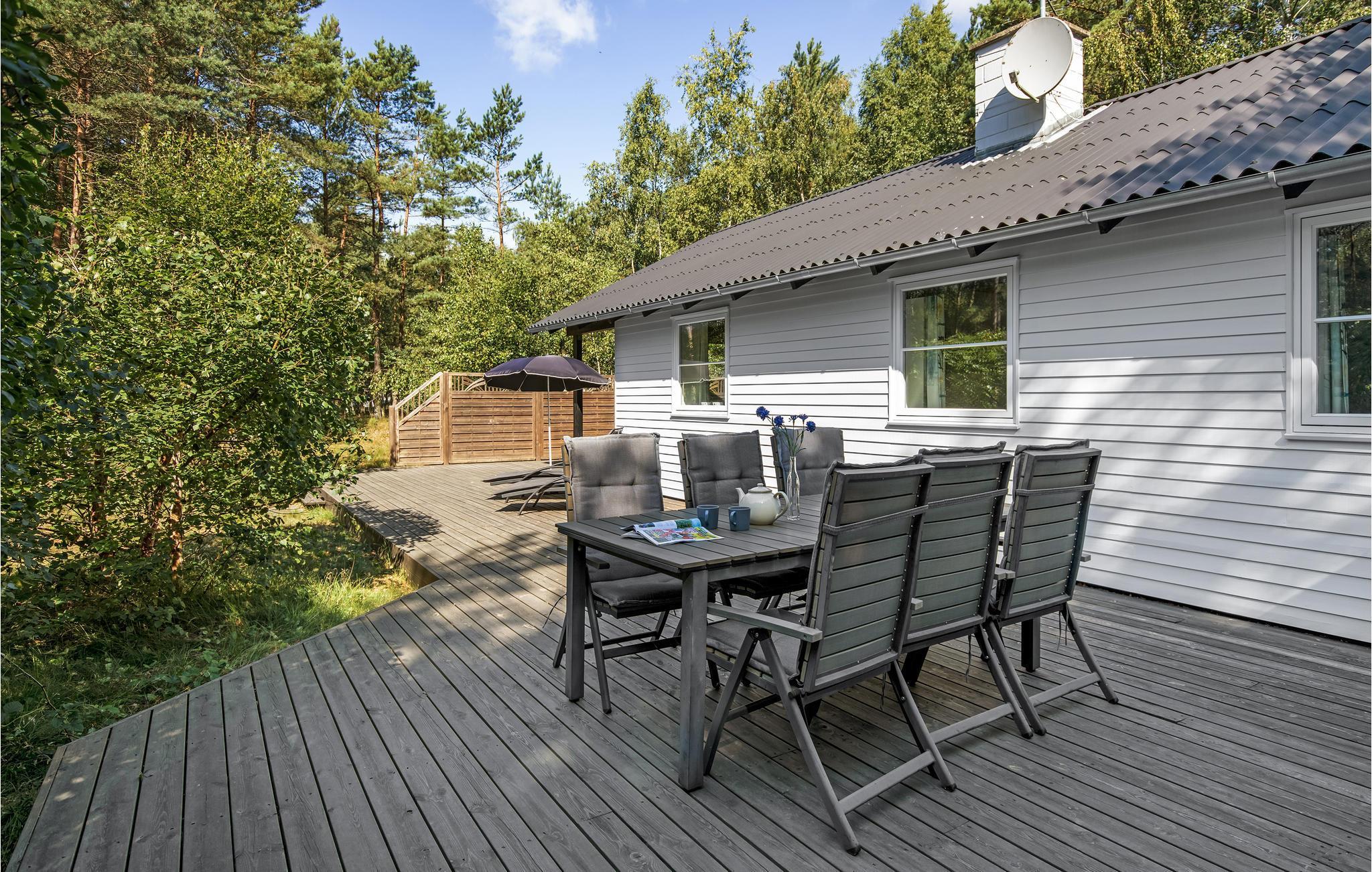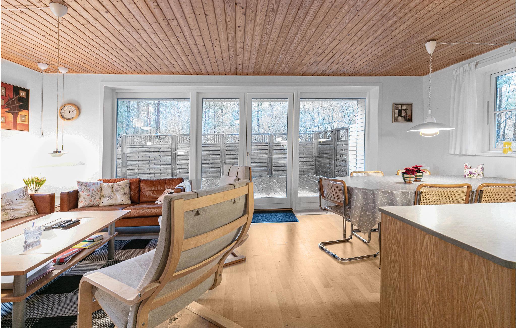 In ruhiger Umgebung und auf einem großen Naturgrund liegt dieses gemütliche Ferienhaus mit einer schönen, großen Holzterrasse. Der großflächige Wohnraum hat einen integrierten Essplatz und gute Möbel, einen Holzofen und eine Wärempumpe und kostenloses Internet. Der Lichteinfall durch die vielen Glaspartien schafft eine angenehme Stimmung im Innenbereich und bietet gleichzeitig einen wundervollen Ausblick auf die umliegende Natur. Vom Wohnraum geht es direkt auf die Terrasse mit hochwertigen Gartenmöbeln und Grill.