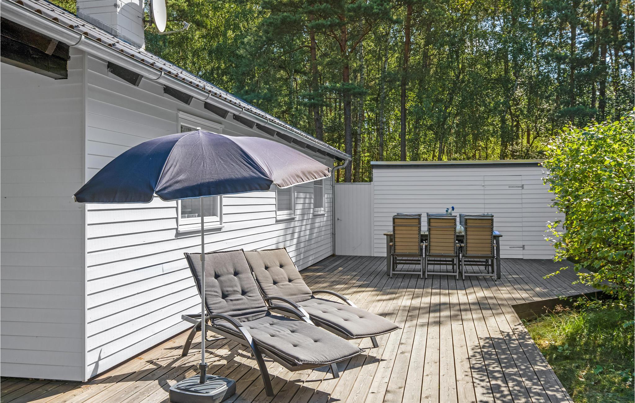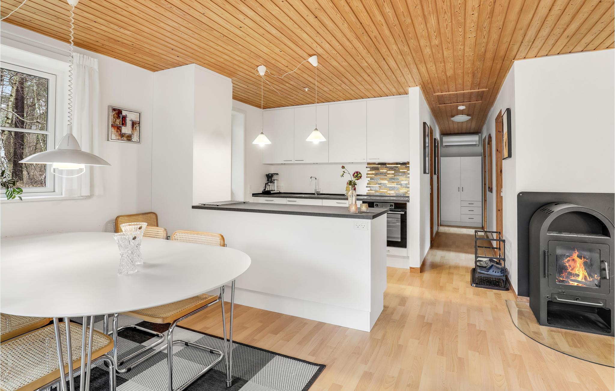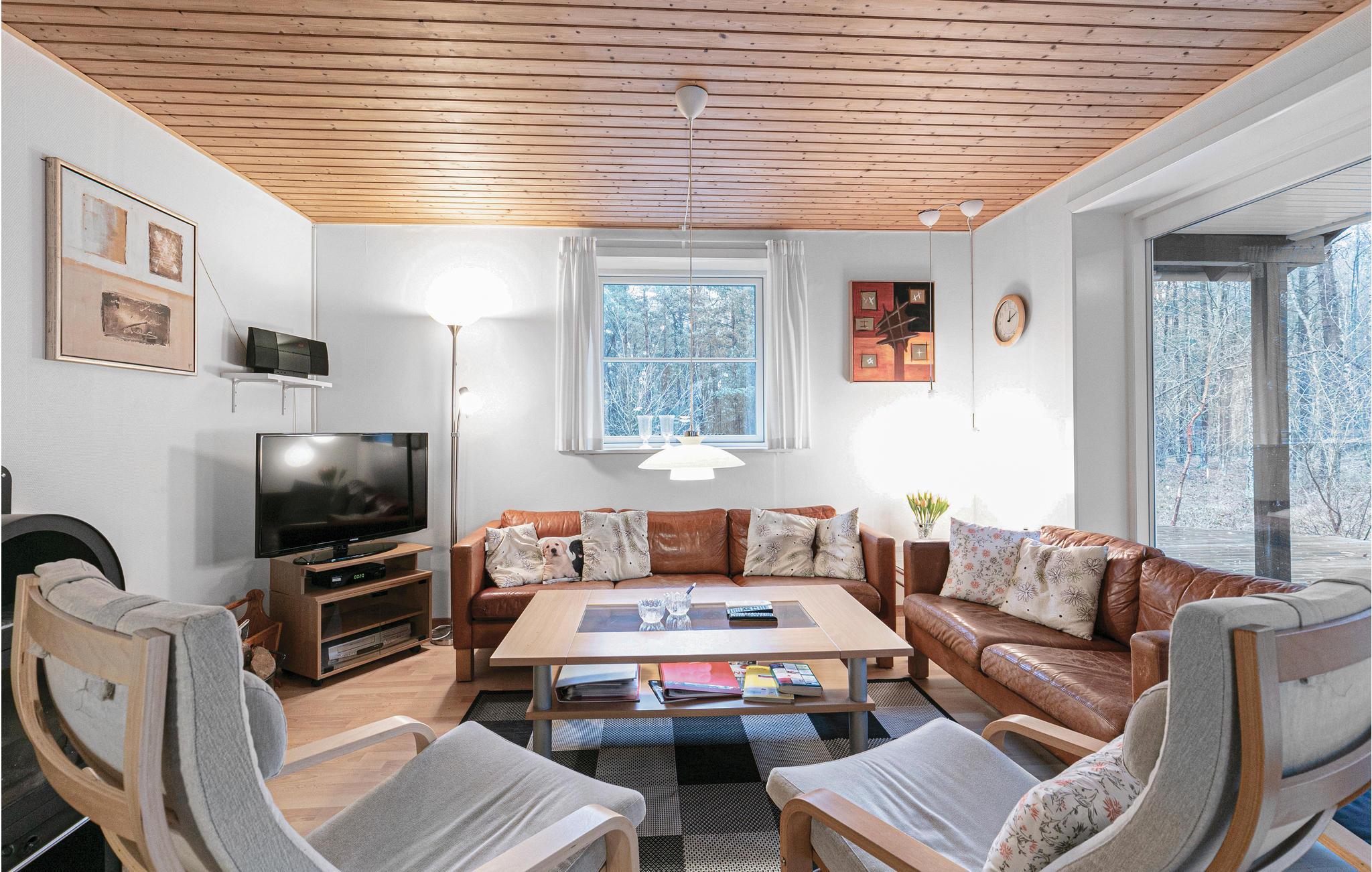 In ruhiger Umgebung und auf einem großen Naturgrund liegt dieses gemütliche Ferienhaus mit einer schönen, großen Holzterrasse. Der großflächige Wohnraum hat einen integrierten Essplatz und gute Möbel, einen Holzofen und eine Wärempumpe und kostenloses Internet. Der Lichteinfall durch die vielen Glaspartien schafft eine angenehme Stimmung im Innenbereich und bietet gleichzeitig einen wundervollen Ausblick auf die umliegende Natur. Vom Wohnraum geht es direkt auf die Terrasse mit hochwertigen Gartenmöbeln und Grill.