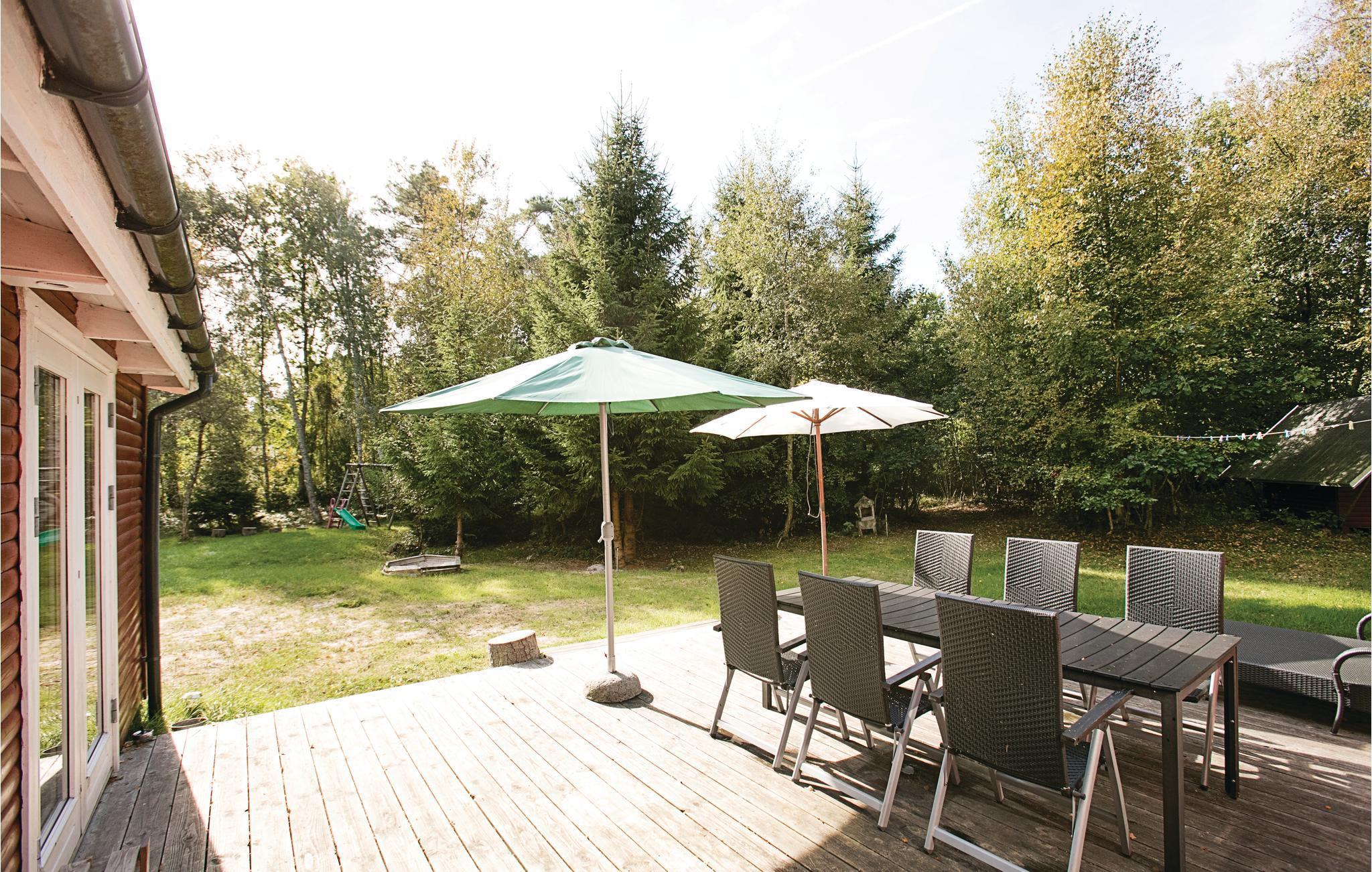Dieses gepflegte und hübsch eingerichtete Holzferienhaus liegt auf einem Naturgrundstück unweit des Badestrandes und mit viel Platz zum Spielen. Es ist hell, mit komfortablen Möbeln, einem Kaminofen, einer offenen Küche und einem Esszimmer eingerichtet. 2007 ist dieses Ferienhaus mit einem Anbau, in dem sich ein großes Badezimmer mit Fußbodenheizung und Whirlpool und ein schönes Schlafzimmer befinden, erweitert worden. Vom Schlafzimmer haben Sie Zugang auf eine große Holzterrasse. Die vielen, modernen Einrichtungen, wie z.B. eine Playstation 2, machen dieses Haus das ganze Jahr über gut für Ferien geeignet.