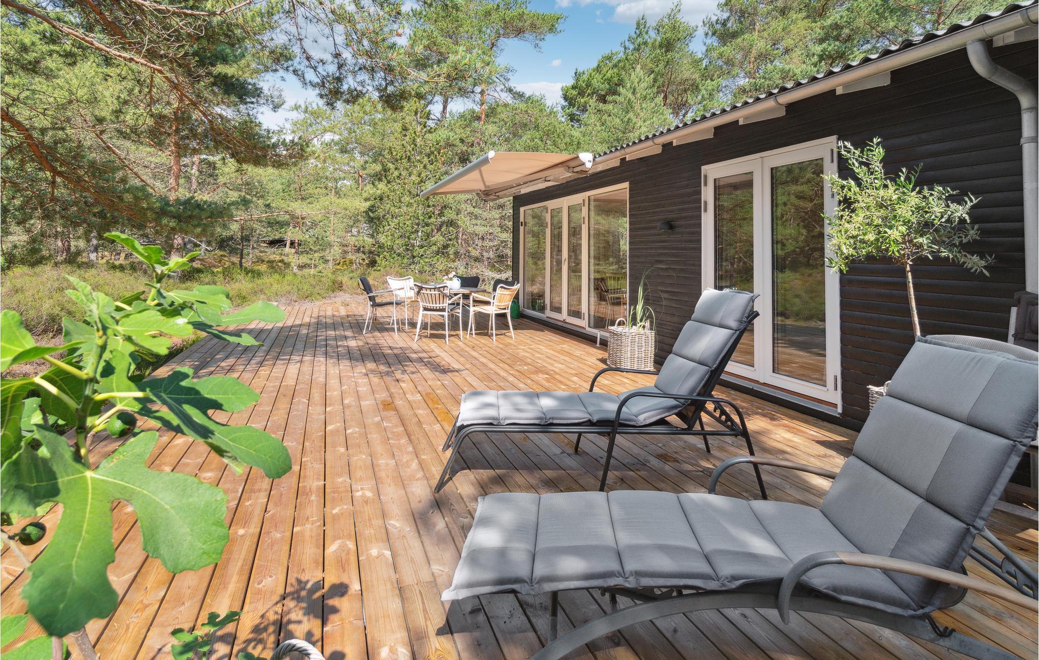 Gemütliches, gut ausgestattetes Ferienhaus in der ersten Reihe zum Sandstrand mit Aussicht auf die schöne Natur. Hell eingerichtet, mit neuerer Küche und gemütlicher Stube. Schnelles, gratis Internet mit Glasfaserkabel. Schöne Terrasse, gepflegtes Badezimmer und gute Schlafzimmer erwarten Sie auch. Auf dem großen Grundstück können Sie sich entfalten. Wenn Sie sich auf der Terrasse in den behaglichen Gartenmöbeln aufhalten, merken Sie, wie still es hier ist. Ein eigener Fußweg bringt Sie zum Strand. In dem Gebiet gibt es auch gute Radwege und schöne Gelegenheiten zum Joggen und Spazieren. Nicht weit entfernt liegt der Golfplatz von Dueodde.