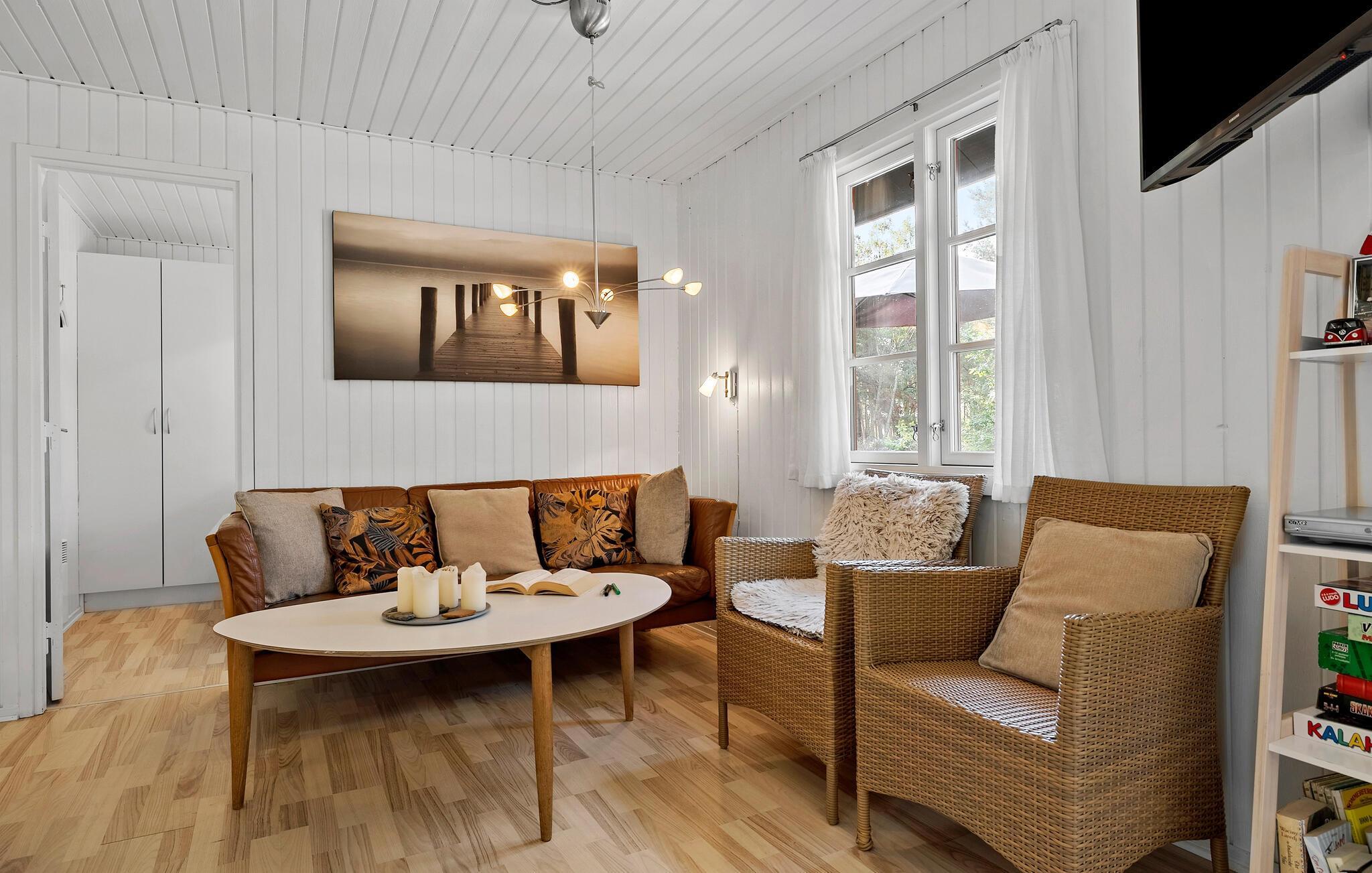 Dieses gemütliche Holzferienhaus liegt in der 1. Häuserreihe vom Strand. Es liegt einen kurzen Fußweg von einem der besten Sadstrände der Insel und gehört zu einem größeren Feriencenter aus etwa 50 Häusern. Hier können Sie sich auf eine kinderfreundliche Gegend mit gemeinsamen Spielplatz und einem Swimmingpool im Freien freuen. Die Einrichtung ist schön, und vom Wohnzimmer erreichen Sie direkt die herrliche Terrasse, auf der Sie in den angenehmen Gartenmöbeln den Urlaub genießen können. Wenn Sie ans Meer möchten, müssen Sie sich nur ein Handtuch über die Schulter werfen und losgehen. Für einen aktiven Urlaub kann die ganze Familie lange Spaziergänge am Wasser entlang machen. Im Gemeinschaftsgebäude sind ein Tischtennisraum, Waschküche und Internet gegen Bezahlung vorhanden. Hier stehen Ihnen auch ein Pool und ein Kinderpool (im Freien und beheizt von etwa 15. Juni bis 1. September) zur Verfügung, sie gehören zum Feriencenter Dueodde Ferieby.
