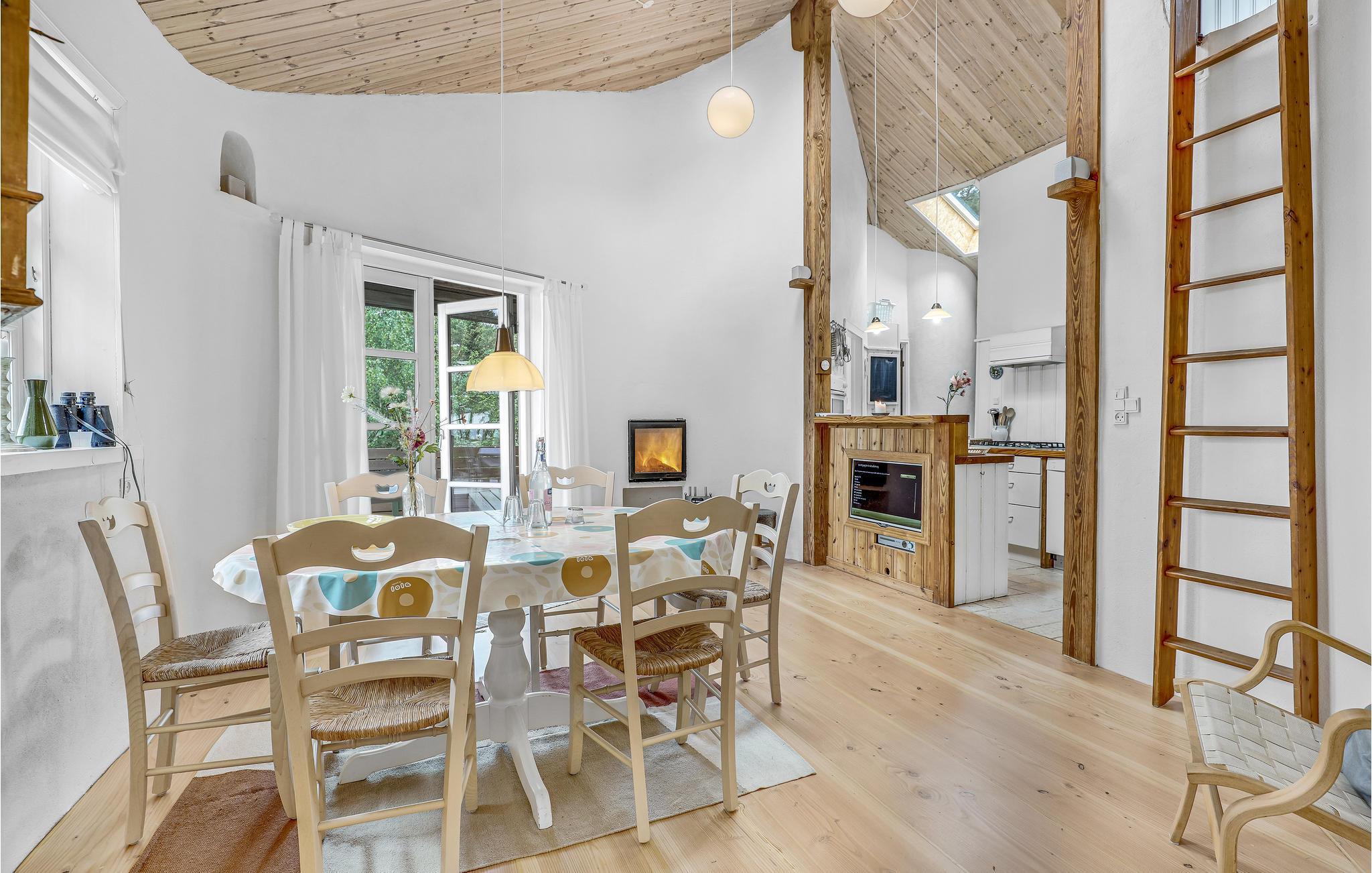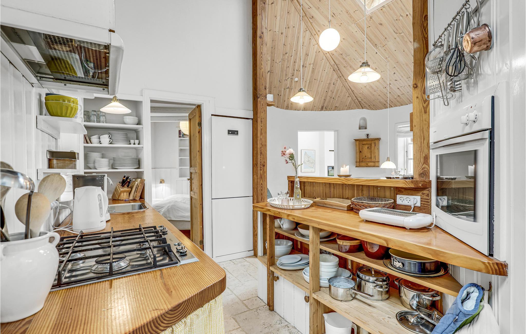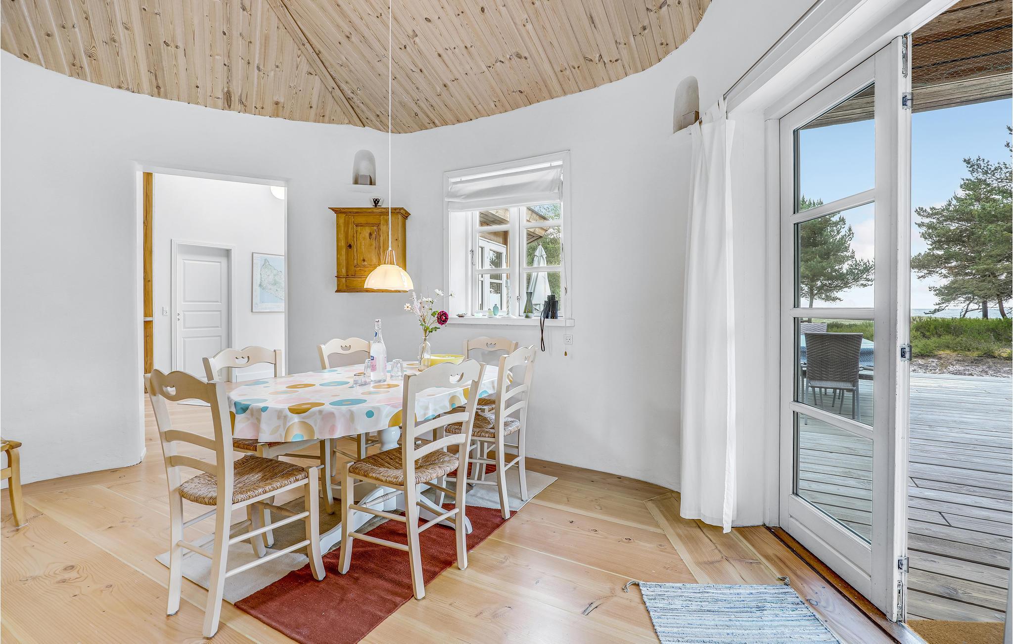 Einzigartig gelegenes Holzhaus in 1. Reihe zum schönen Sandstrand. Von diesem charmanten und gemütlichen Ferienhaus haben Sie direkten Zugang zum Strand und eine Bad in der Ostsee ist sehr zu empfehlen. Das Ferienhaus wird in den Jahren 2019/2020 um einen Privatbereich erweitert, der nicht Teil der Vermietung ist, aber während der Mietsaison finden keine Bauarbeiten statt. Dieses einzigartige Ferienhaus ist sehr charmant und rustikal eingerichtet mit runden Wänden und hohen Decken im Wohnbereich. Gemütliche offene Küche und 3 kleinere Schlafzimmer. Gut ausgestattetes Badezimmer mit kleiner, aber gemütlicher Sauna. Vom sehr gemütlichen Wohnzimmer des Hauses gelangen Sie auf einen kleinen Dachboden. Vom Wohnzimmer aus haben Sie Zugang zu einer schönen Holzterrasse und einen herrlichen Blick auf das Meer und die wunderschöne Natur Bornholms. Eigener Weg zum Strand. Die Größe des Hauses macht es für 4 Personen geeignet. Dieses einzigartige Ferienhaus ist einfach ein Juwel - teilweise wegen seiner fantastischen Lage und teilweise wegen seines ganz eigenen Stils und seiner Architektur. Die Gegend eignet sich zum Radfahren und Wandern. Das beliebte Fischerdorf Snogebæk mit guten Einkaufsmöglichkeiten und attraktiven kleinen Geschäften und Restaurants ist ebenfalls nicht weit entfernt.