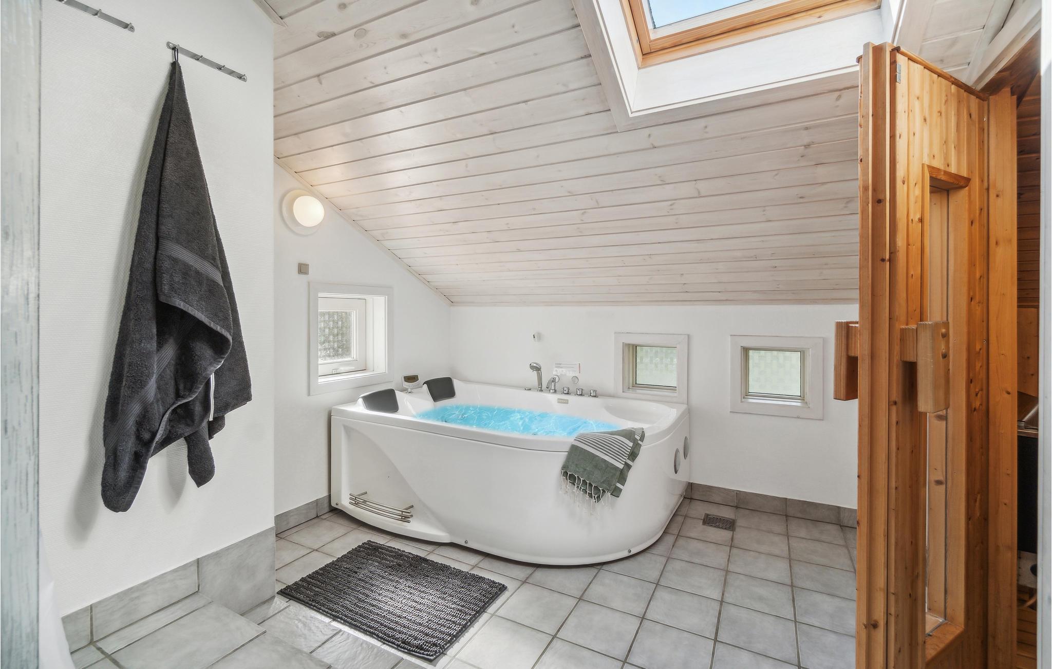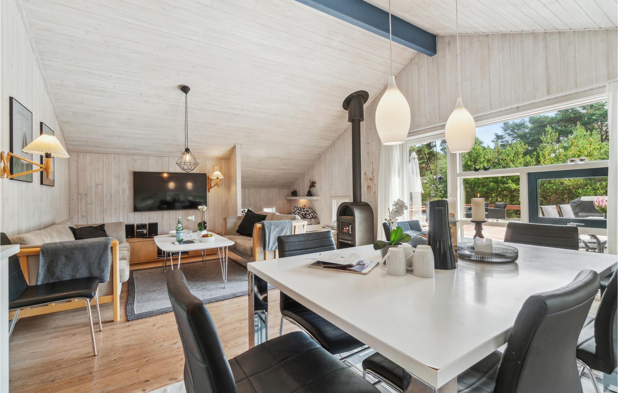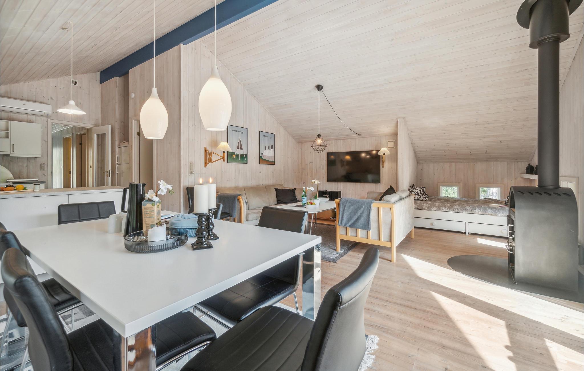 Das Haus ist modern und hell eingerichtet. Der natürliche Treffpunkt ist das kombinierte Wohn- und Esszimmer, in dem Sie es sich gemütlich machen, fernsehen, Radio oder Musik hören, Spiele spielen und einfach nur plaudern können. Im Winter werden Sie die Wärme und die gemütliche Atmosphäre des Kaminofen schätzen. Im Wohnzimmer finden Sie auch einen kleinen Bereich mit 2 Schlafplätzen. In der offenen, gut ausgestatteten Küche macht das Kochen Freude. Zu den Highlights des Hauses zählen das große Badezimmer mit komfortabler Fußbodenheizung sowie der Wellnessbereich und die Sauna für grundlegende Entspannung nach einem der langen, aktiven Urlaubstage.