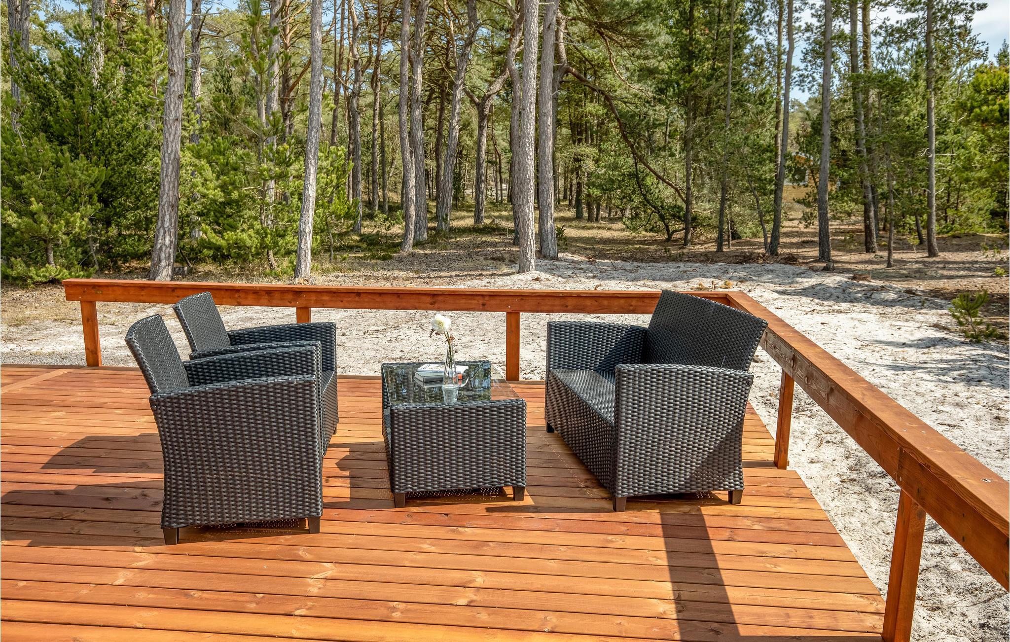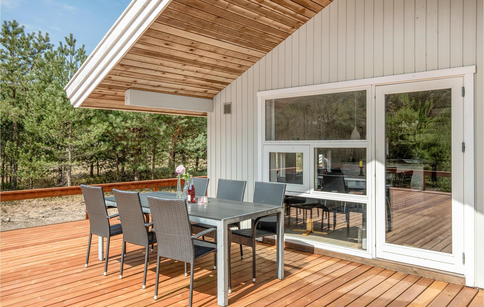 Rund um einen großen Teil Ihres Hauses verläuft eine teilüberdachte Holzterrasse mit Loungemöbeln wie z. B. Sonnenliegen und einem Grill, damit Sie auch im Freien leckere Gerichte zubereiten können. Die Terrasse eignet sich hervorragend zum Studieren Ihrer Urlaubslektüre, Einnehmen Ihrer Mahlzeiten oder zum Genuss von Kaffe, Wein, Eis oder anderer Köstlichkeiten. Auf dem Grundstück rund um das Haus finden Ihre Kinder eine Menge Platz zum Spielen.