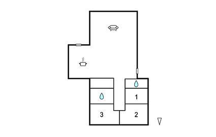 Badezimmer (nr. 1) - WC. Warmes und kaltes Wasser. Dusche