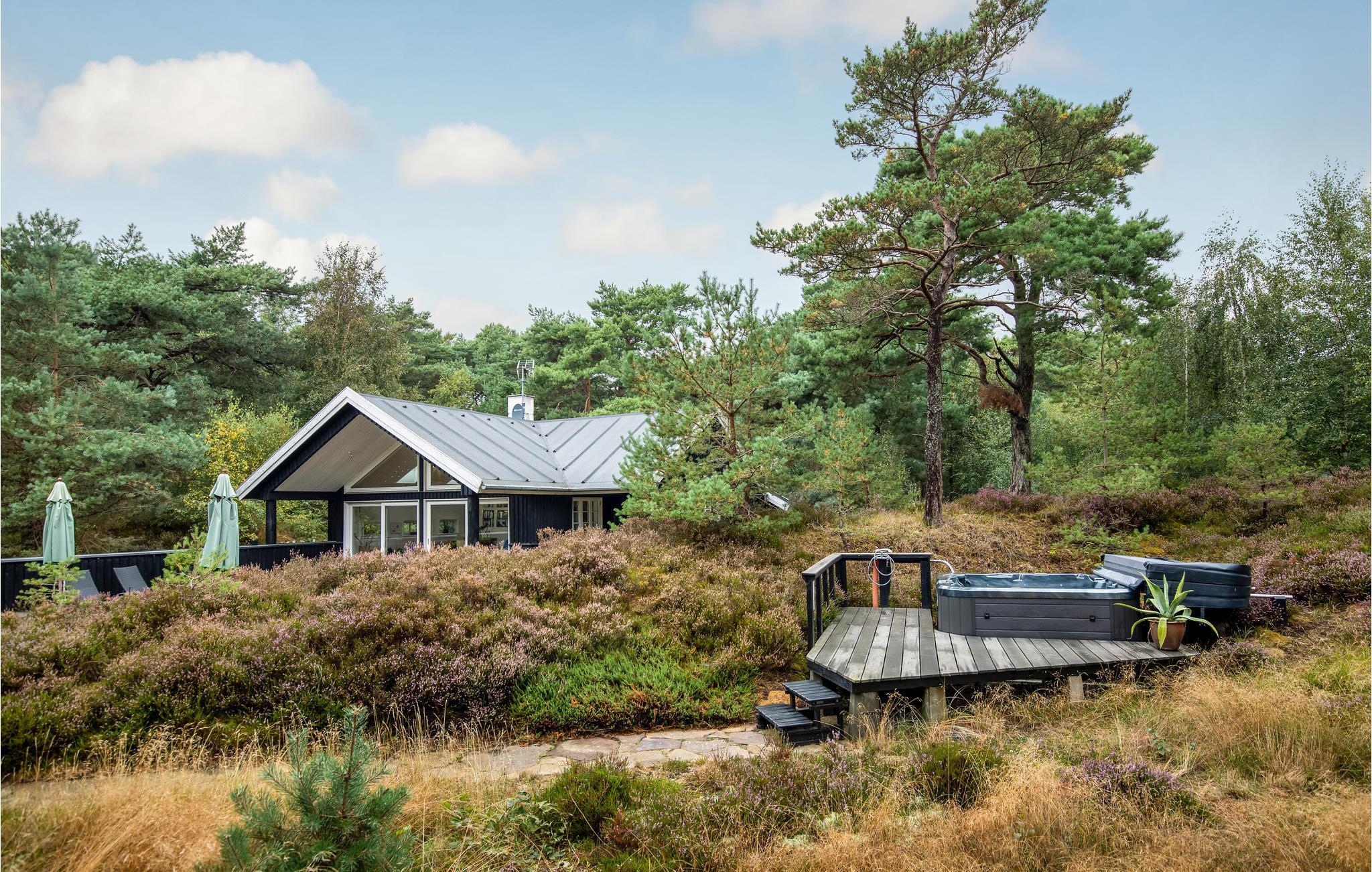 Komfortables Ferienhaus mit Whirlpool, Kamin und Nähe zum Strand in idyllischer Waldlage bei Dueodde.