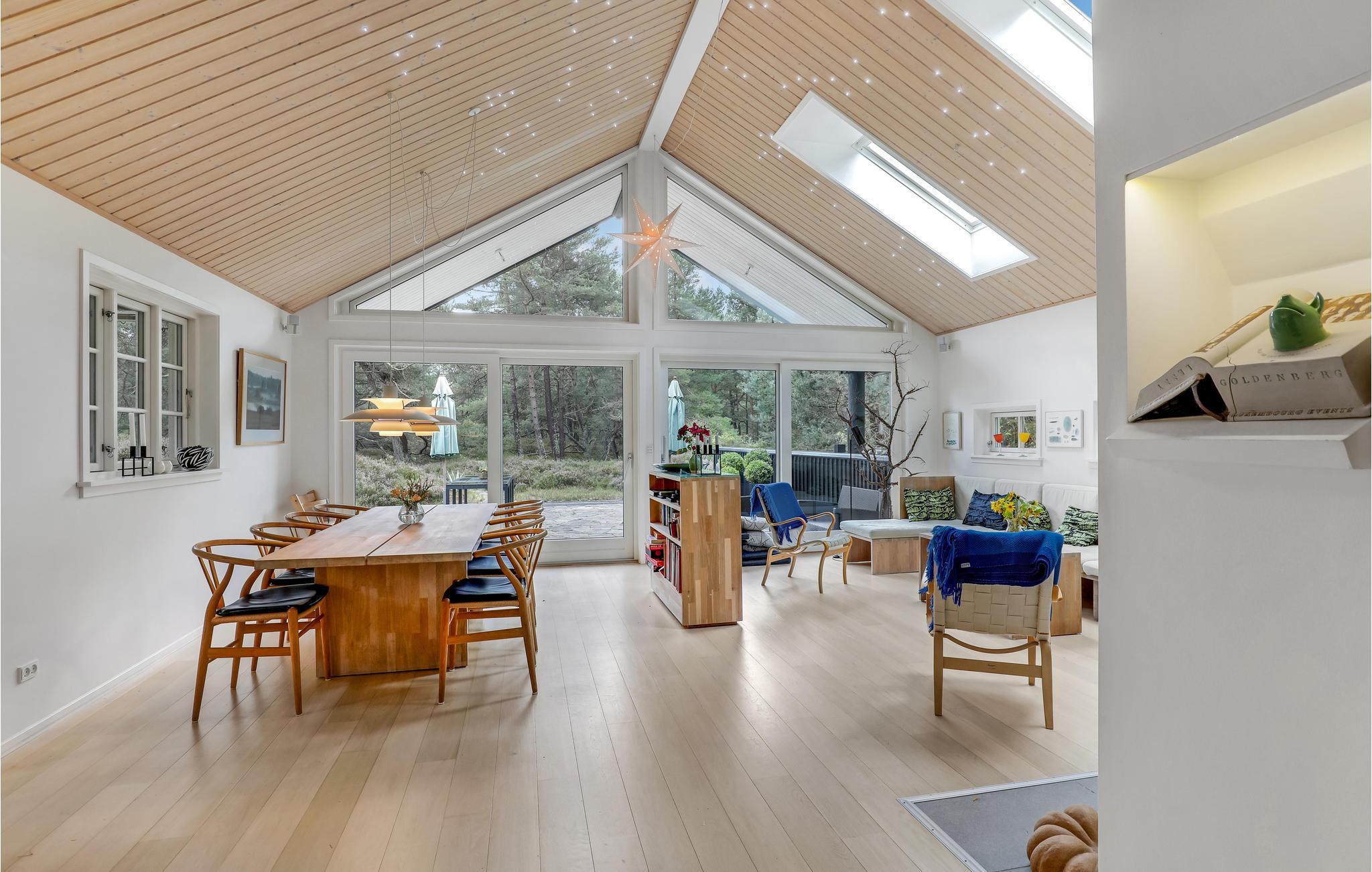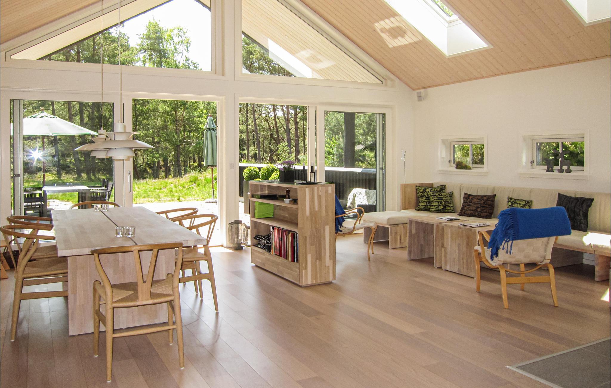 In idyllischer Lage am Waldrand und nur einen kurzen Spaziergang vom Strand entfernt begrüßt das helle und einladende Haus seine Gäste. Freuen Sie sich nach Ihren Erkundungen der Insel auf gemütliche Abende im heimeligen Wohnbereich. Lassen Sie den Blick durch die Fensterfront schweifen und plaudern Sie noch lange, während im Kaminofen die Flammen prasseln.