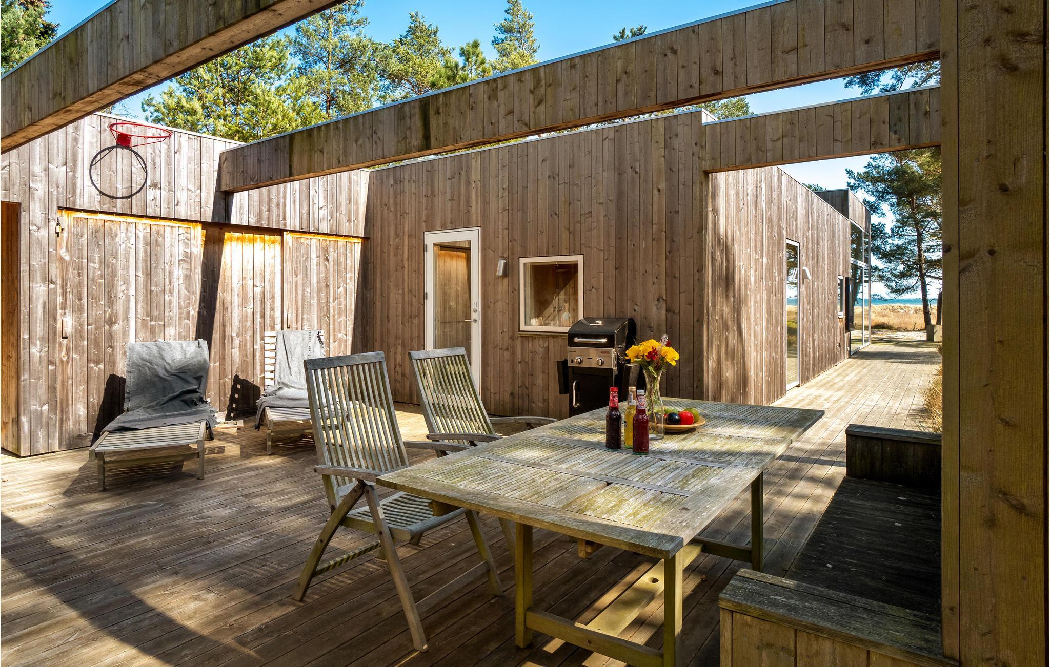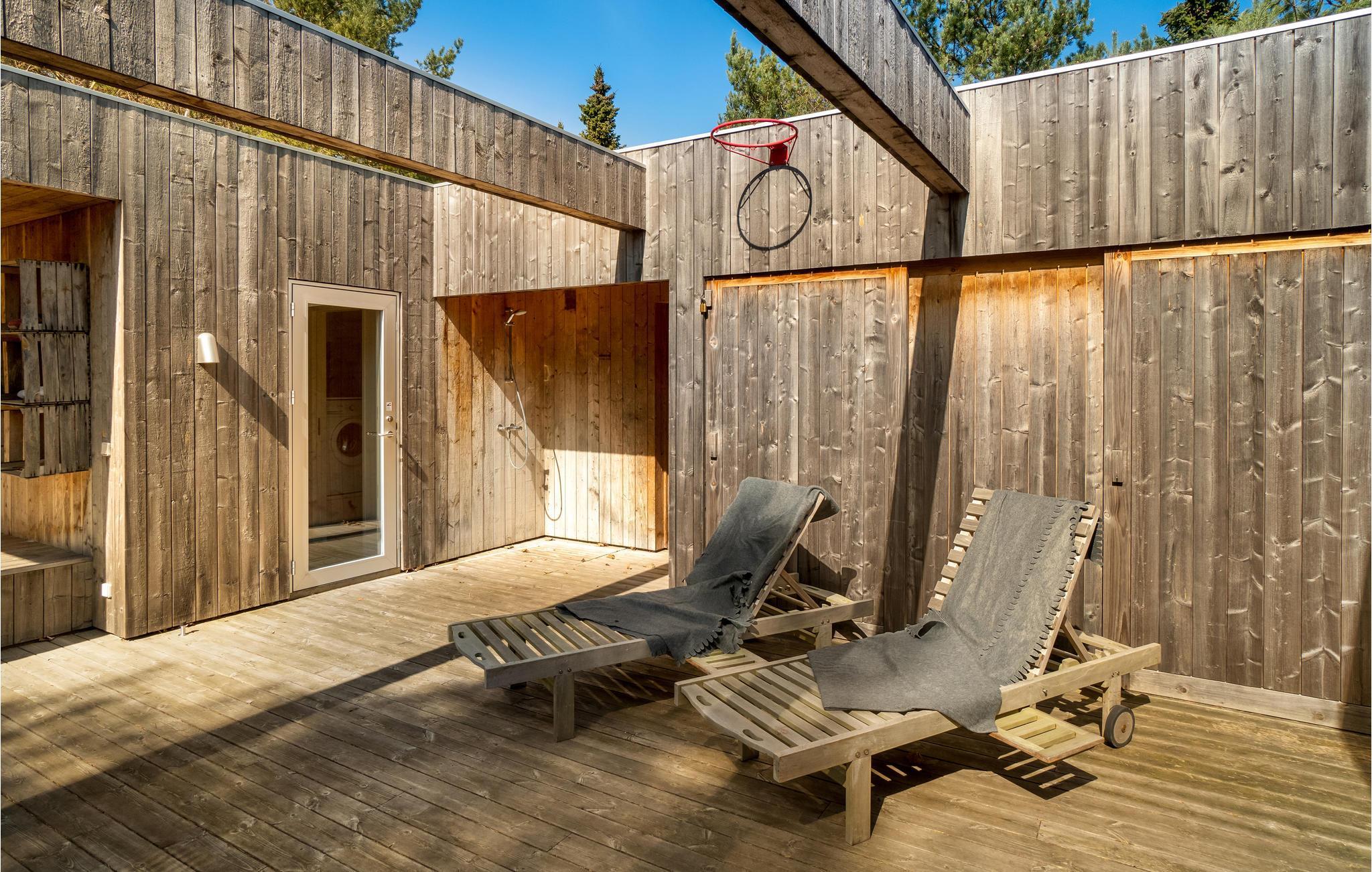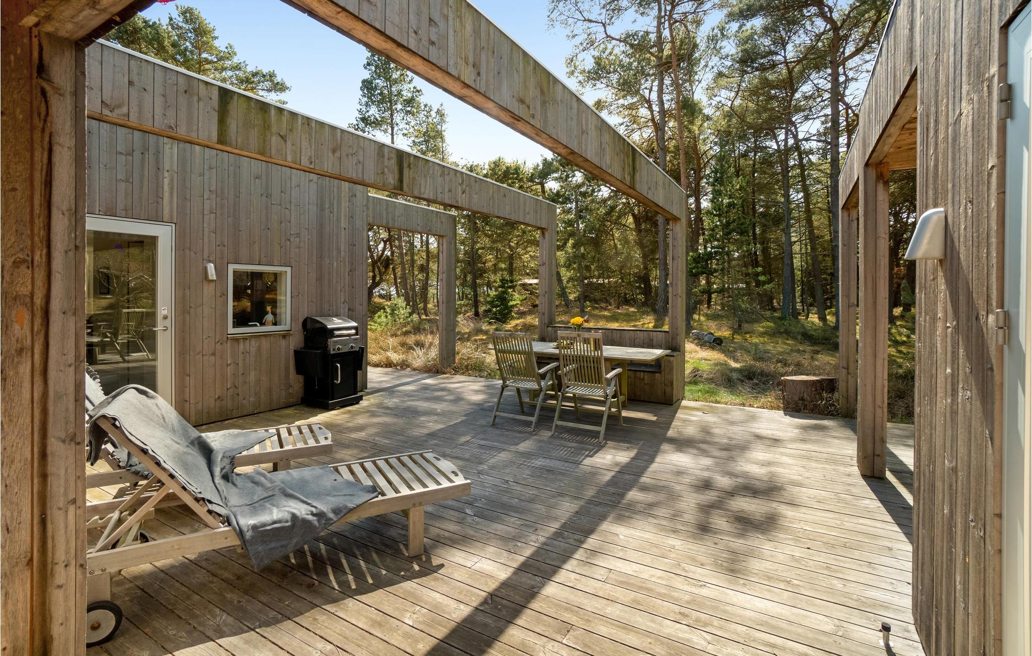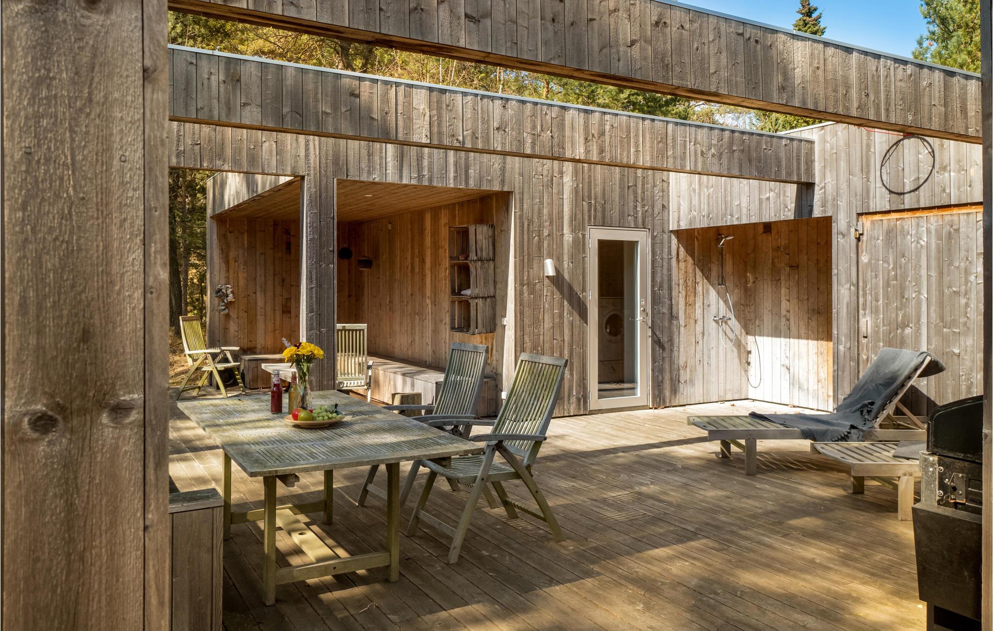 Das Highlight des Hauses ist vor Allem im Sommer die große Terrasse, die einen großen Teil des Hauses umrahmt und sowohl offene als auch überdachte Bereiche hat. Die Terrasse ist mit diversen Loungemöbeln - darunter Sonnenliegen - und einem Grill ausgestattet. Einen Großteil Ihres Urlaubs werden Sie hier draußen verbringen und die Sonne, die Aussicht und die frische Seeluft genießen - vielleicht mit einer Tasse Kaffee, einem kühles Bier oder einem guten Glas Wein in der Hand. Ihre Kinder haben Gelegenheit, in den Dünen und der umgebenden Natur zu spielen. Das Haus hat ein Nebengebäude, in dem Sie zwei Einzelbetten und ein Badezimmer mit Waschmaschine, Dusche und WC finden. Das Haus verfügt über eine Außendusche, die sich perfekt eignet, um sich nach einem Strandausflug den Sand abzuspülen.