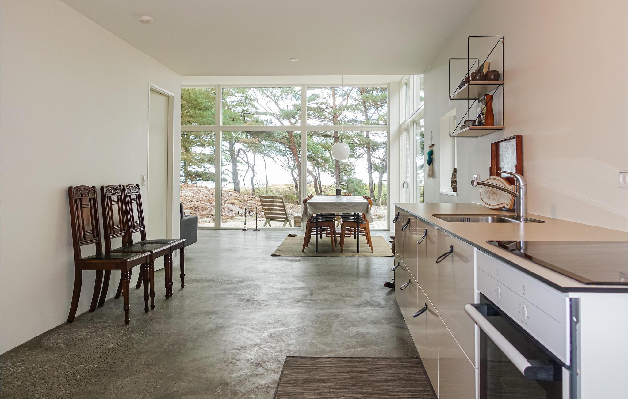 Willkommen in diesem luxuriösen Ferienhaus, in dem ein wunderbarer Urlaub garantiert ist. Der natürliche Treffpunkt des häuslichen Lebens ist das große Wohn- und Esszimmer mit offener Küche und riesiger Fensterfront, die für ein schönes Licht und einen schönen Blick auf das Meer sorgt. Im Winter können Sie hier sitzen und die Wärme des Ofens mit Blick auf das Wasser genießen. Sowohl im Wohnzimmer als auch in der Küche und im Bad gibt es eine komfortable Fußbodenheizung. Das Haus ist ohne Fernseher eingerichtet; Es gibt jedoch ein kostenloses und schnelles Glasfasernetz.