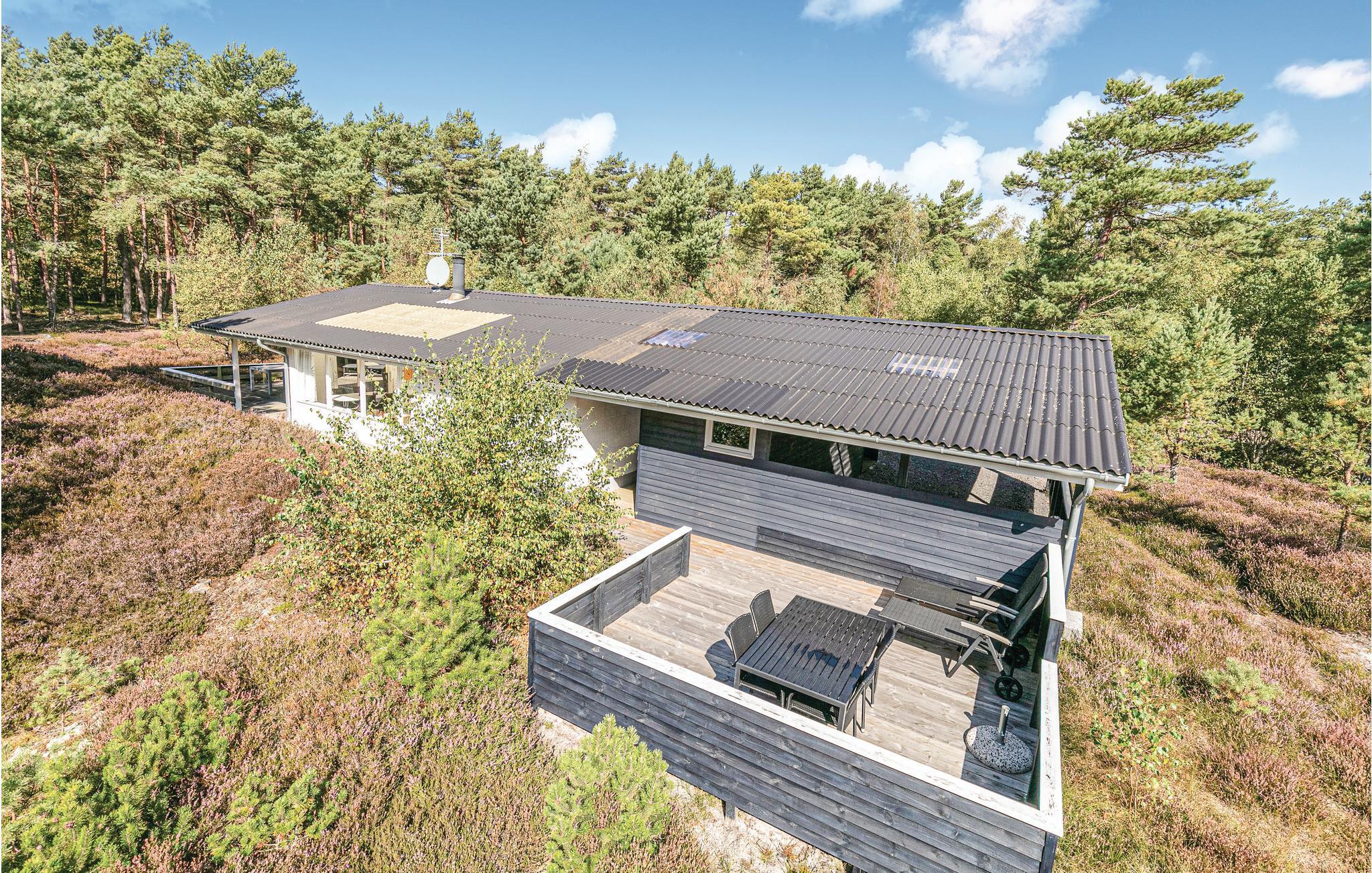 Gemütliches Ferienhaus mit großer Terrasse nahe Dueodde Strand auf Bornholm, ideal für entspannte Strandtage und Erkundungstouren.
