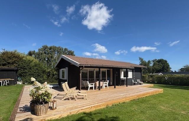 Der Garten rund ums Ferienhaus ist wie gemacht für das Leben im Freien. Auf der großen Holzterrasse genießt du den ersten Kaffee des Tages genauso wie den Sonnenuntergang am Abend, wenn der Himmel in warmen Farben leuchtet. Du kannst dich entspannt zurücklehnen, die Sonne auf der Haut spüren und die Gedanken treiben lassen. Der Garten ist grün und einladend – mit Platz zum Spielen, Entspannen und um den Tag einfach fließen zu lassen. Wenn dir nach einem Sprung ins Wasser ist, erreichst du den Strand in wenigen Gehminuten – mit Handtuch über der Schulter und den Füßen im Sand. Das Meer ist ganz nah und schenkt dir jederzeit das Gefühl von Freiheit und Frische.