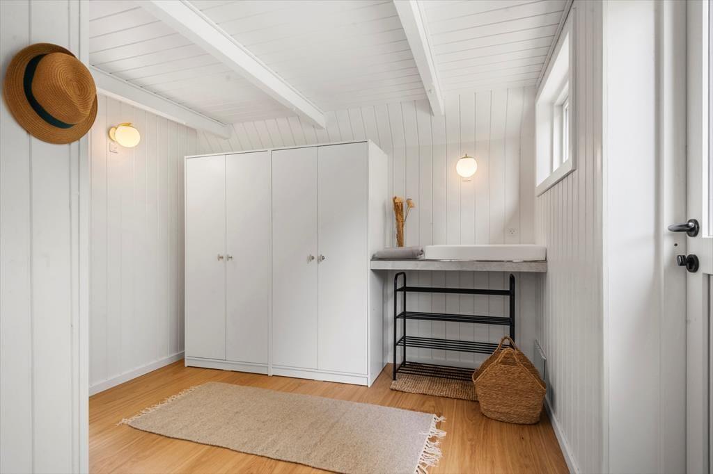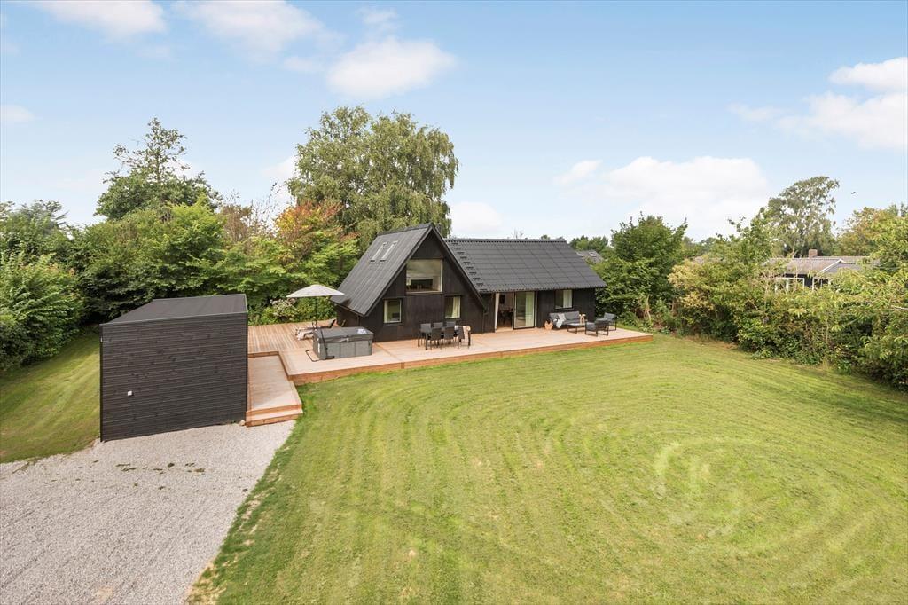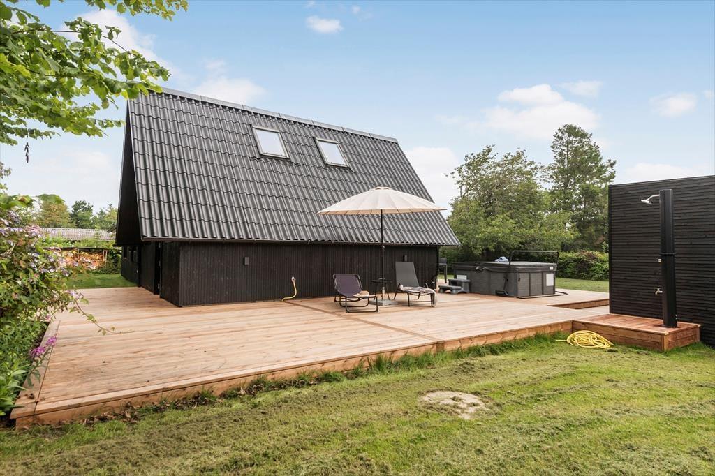 Draußen entfaltet sich das Ferienhaus voll und lädt dich ein, das Urlaubsleben zu genießen. Die große, offene Terrasse ist ein eigenes Kapitel – ein Ort, an dem der Morgenkaffee besonders gut schmeckt und du die Sonnenbahn am Himmel verfolgen kannst, während der Tag in deinem eigenen Tempo vergeht. Hier kannst du lange Mittagessen genießen, das Gras unter den Füßen spüren oder dich von Abenden mit gutem Essen, Gesprächen und ruhigen Momenten unter freiem Himmel verzaubern lassen. Wenn die Sehnsucht nach dem Meer ruft, sind es nur wenige Schritte zum schönen Dyngby Strand, wo weicher Sand und einladendes Wasser zum Spielen, Schwimmen und Verweilen einladen. Die natürliche Umgebung sorgt für Ruhe, und du kannst Stunden damit verbringen, am Ufer entlang zu spazieren, Muscheln zu sammeln oder einfach still zu sitzen und deinen Gedanken freien Lauf zu lassen, während du den Duft von Salz und Meeresbrise genießt.