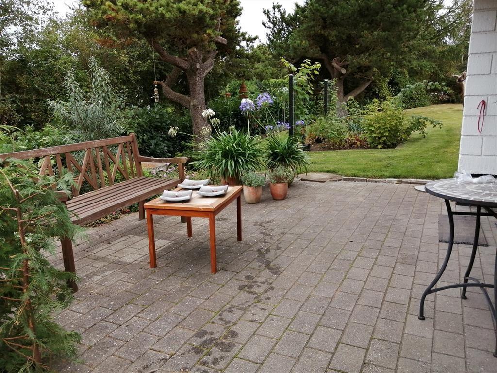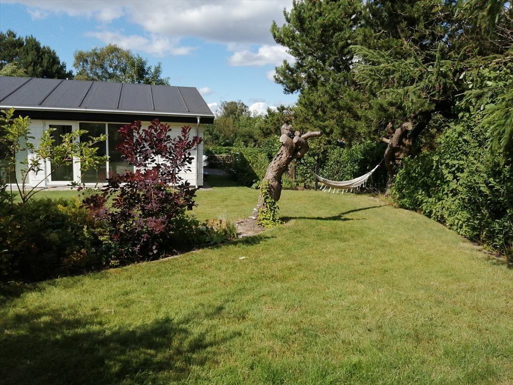 Das Ferienhaus verfügt über einen charmanten, gepflegten Garten mit Blumenbeeten, Rasenflächen, Büschen und Bäumen, der bei jedem Wetter eine schöne Umgebung bietet. Das Grundstück ist von einer Hecke umgeben, die für vollkommene Privatsphäre sorgt.