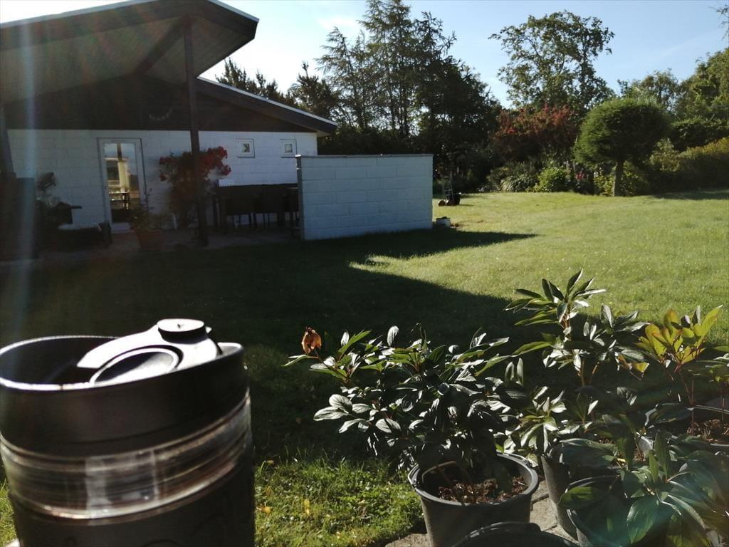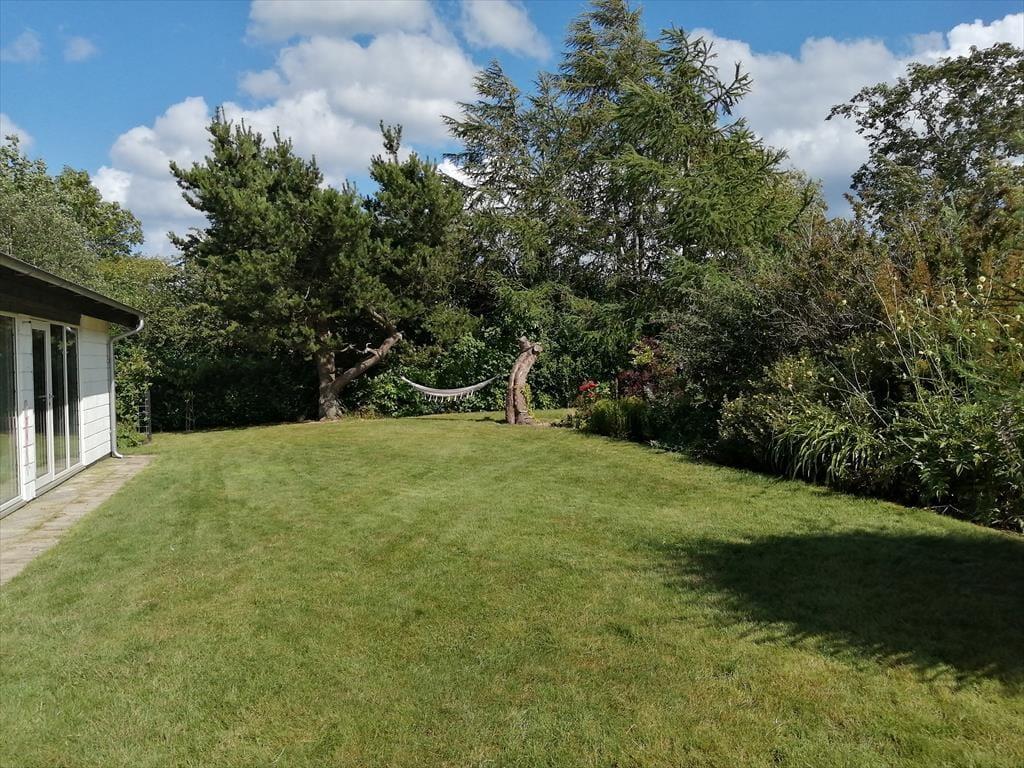Das Ferienhaus befindet sich in einer ruhigen Ferienhaussiedlung, nur 400 Meter vom kinderfreundlichen Dyngby Strand entfernt. Dieser Strand bietet breite Sandflächen und viel Platz zum Schwimmen, Entspannen oder Spazierengehen. Er zeichnet sich durch seine natürliche Schönheit aus und ist frei von übermäßigen Besuchern und Kiosken.