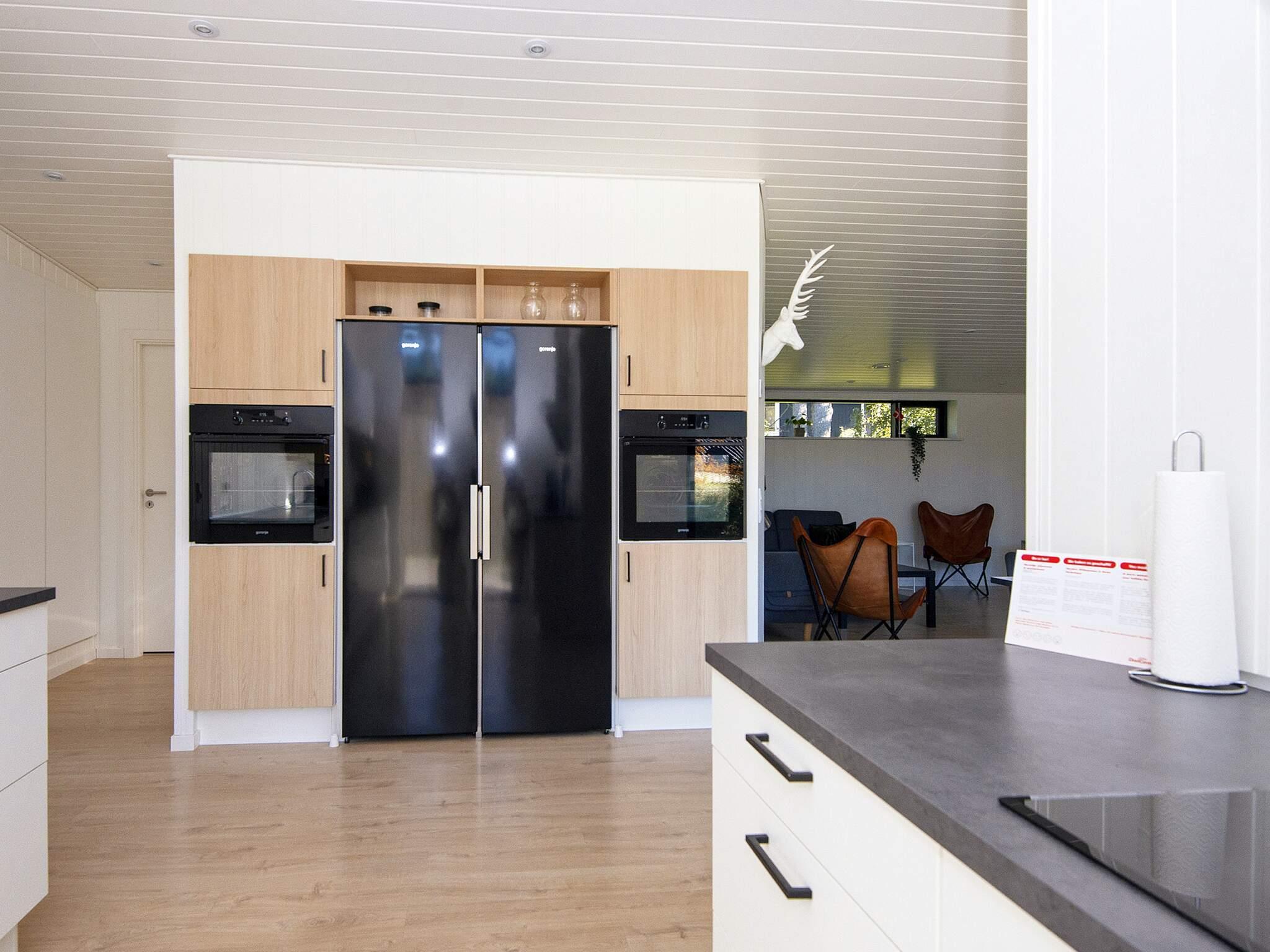 Und: Überd. Terrasse, E-Heiz., Luft-Wasser-Wärmepumpe, Grill, Naturgrundst. m. Bäumen 1200 m2, moderne Möblierung, Ferienhausgebiet, Nichtraucherhaus
