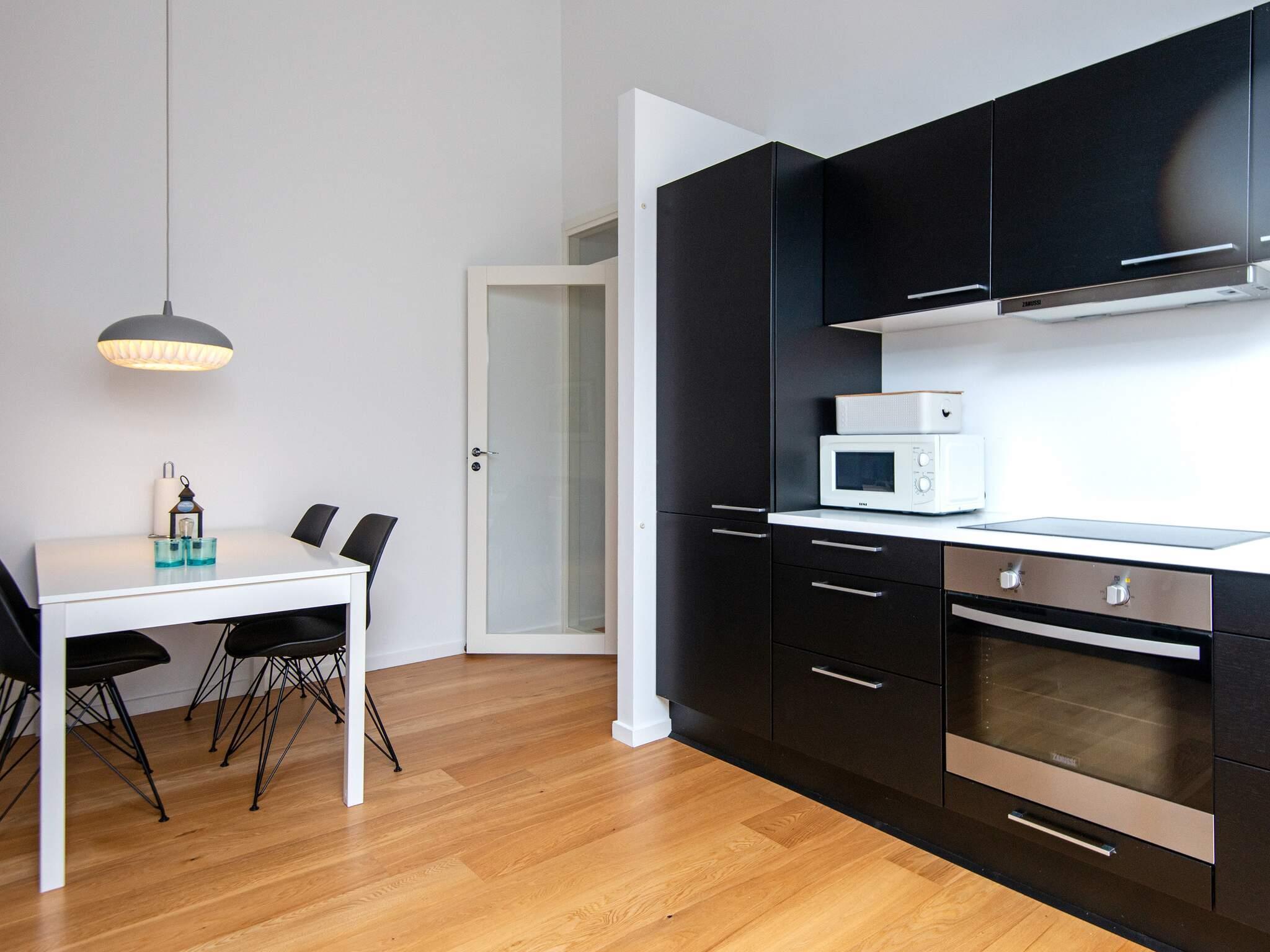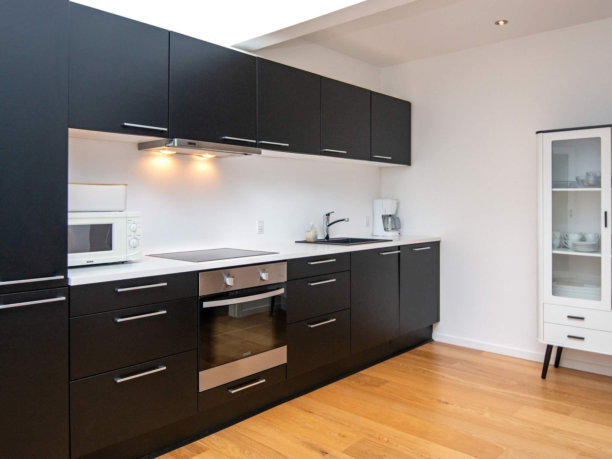 Die Wohnung ist für entspanntes Wohnen und gemeinsame Momente konzipiert. Der offene Küchen- und Wohnbereich ist hell und funktional zugleich und verfügt über einen Esstisch und bequeme Sitzgelegenheiten für gemeinsame Mahlzeiten, Gespräche oder einfach nur zum Beobachten des Lichtspiels über der Bucht. Hier beginnt der Morgen mit einem Frühstück am Fenster und endet der Abend mit Geschichten, die noch lange nach dem Abräumen erzählt werden.