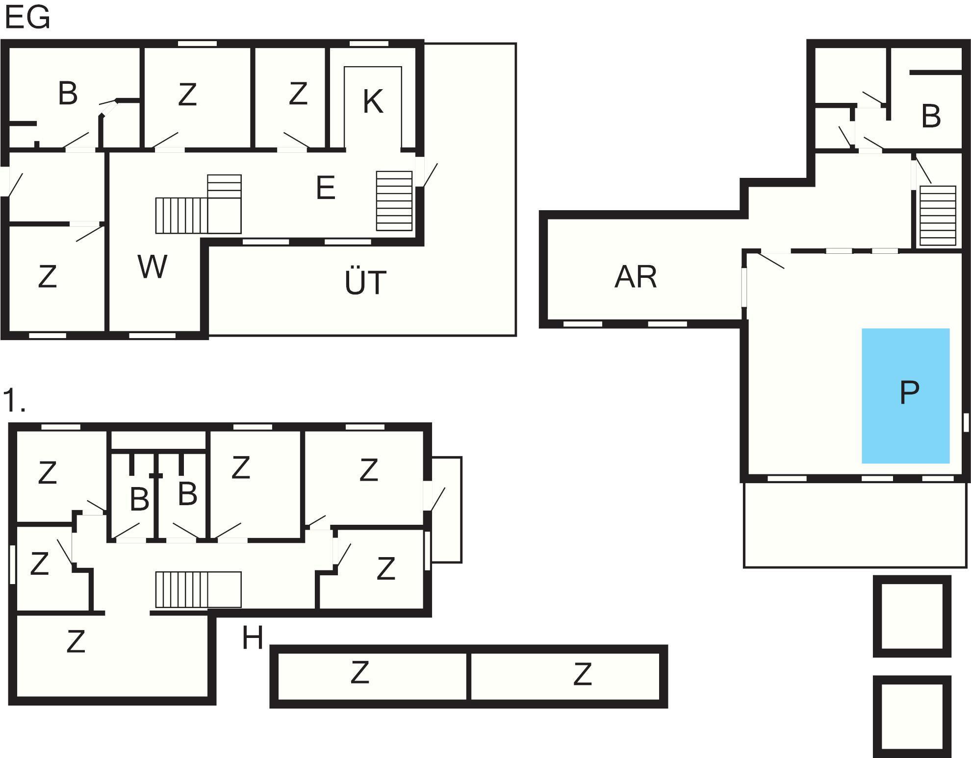 8 Schlafz.: (1DB)+(1DB)+(1DB)+(1DB)+(1DB+2K)+(1DB+2K)+(1DB+1B)+(1DB+1B)