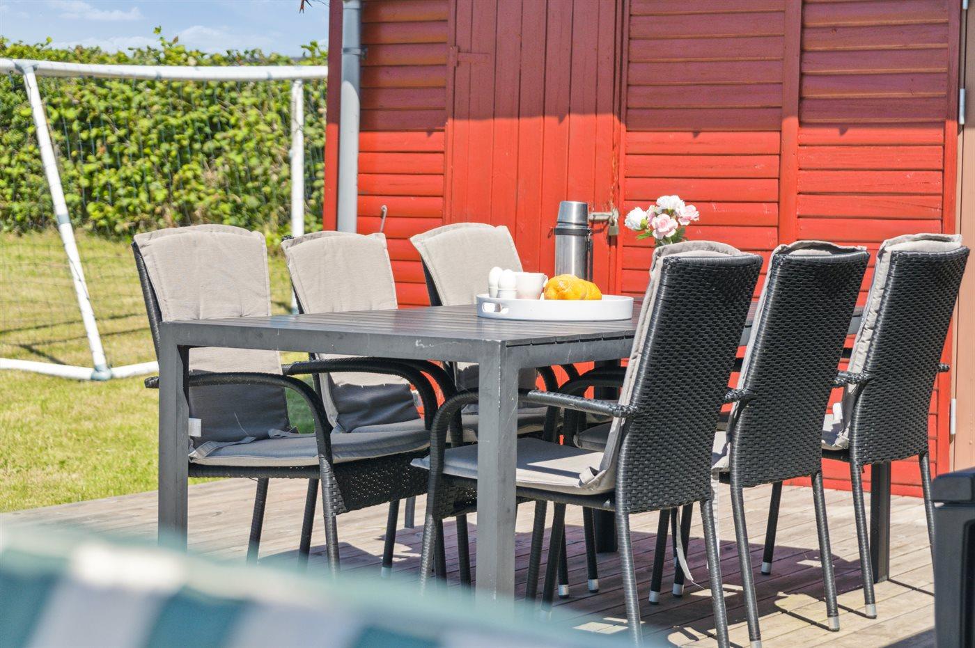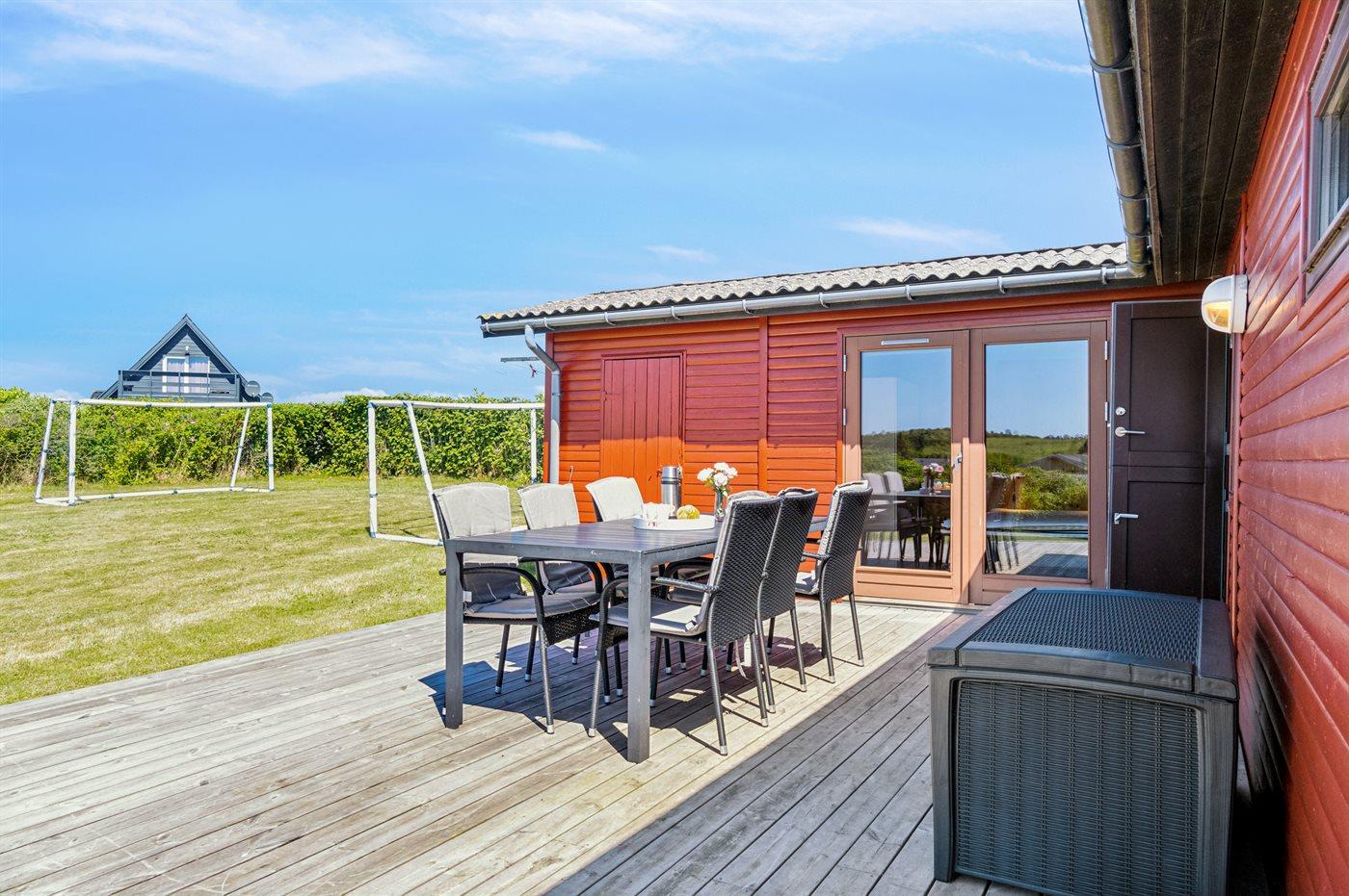 Die Ferienunterkunft liegt auf einem 1200 m² großen Gartengrundstück. Die Entfernung zum Meer beträgt 500 m. Die nächste Einkaufsmöglichkeit liegt 2500 m entfernt. Es steht ein offenes Terrassenareal zur Verfügung. Schaukel. Sandkasten. Trampolin. Rutsche. Fußballtor. Es steht ein Grill zur Verfügung. Parkplatz auf dem Grundstück.