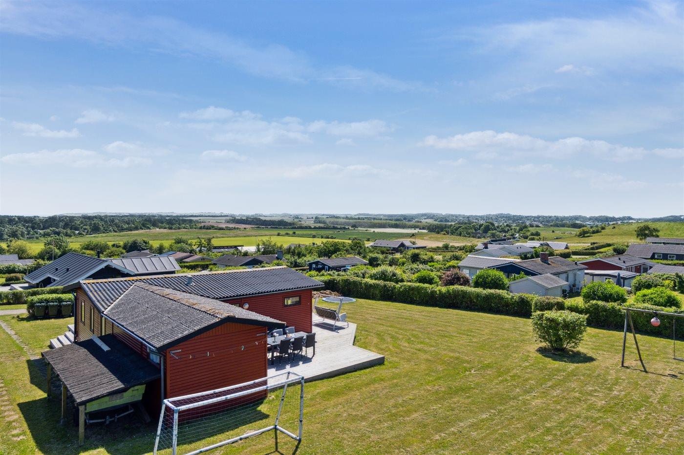 Neben der schönen Aussicht zeichnet sich das Haus durch seine große Holzterrasse und das herrliche Grundstück aus – mit viel Platz für Outdoor-Aktivitäten – darunter Spielen im Spielturm, auf dem Trampolin im Garten oder Ballspiele um das Fußballtor des Hauses.