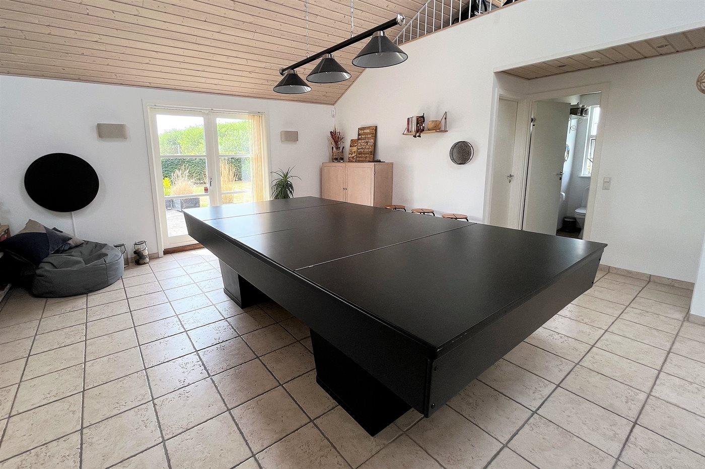 Dieses schöne Ferienhaus liegt nur 350 m vom Meer entfernt in einer äußerst attraktiven Ferienhaussiedlung. Das Haus ist gut eingerichtet und hat zwei gute Schlafbereiche und herrliche Aufenthaltsbereiche mit hohen Decken. Zentral im Haus großer, exklusiver Billardtisch, Dart und Surroundsound-Anlage. Von dort führt eine Treppe in das offene Obergeschoss des Hauses. Dort befinden sich ein großer Fernseher und eine PlayStation 4 mit Lenkrad und Pedalen. Ein toller Spielplatz für Kinder und Junggebliebene! Schöner Garten mit guten Terrassen und einer Außendusche – falls ihr den Sand vom Strandbesuch abspülen oder euch einfach nur abkühlen wollt.
