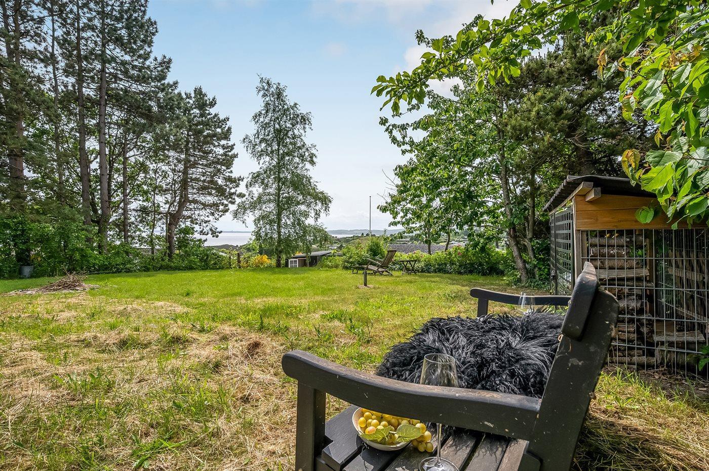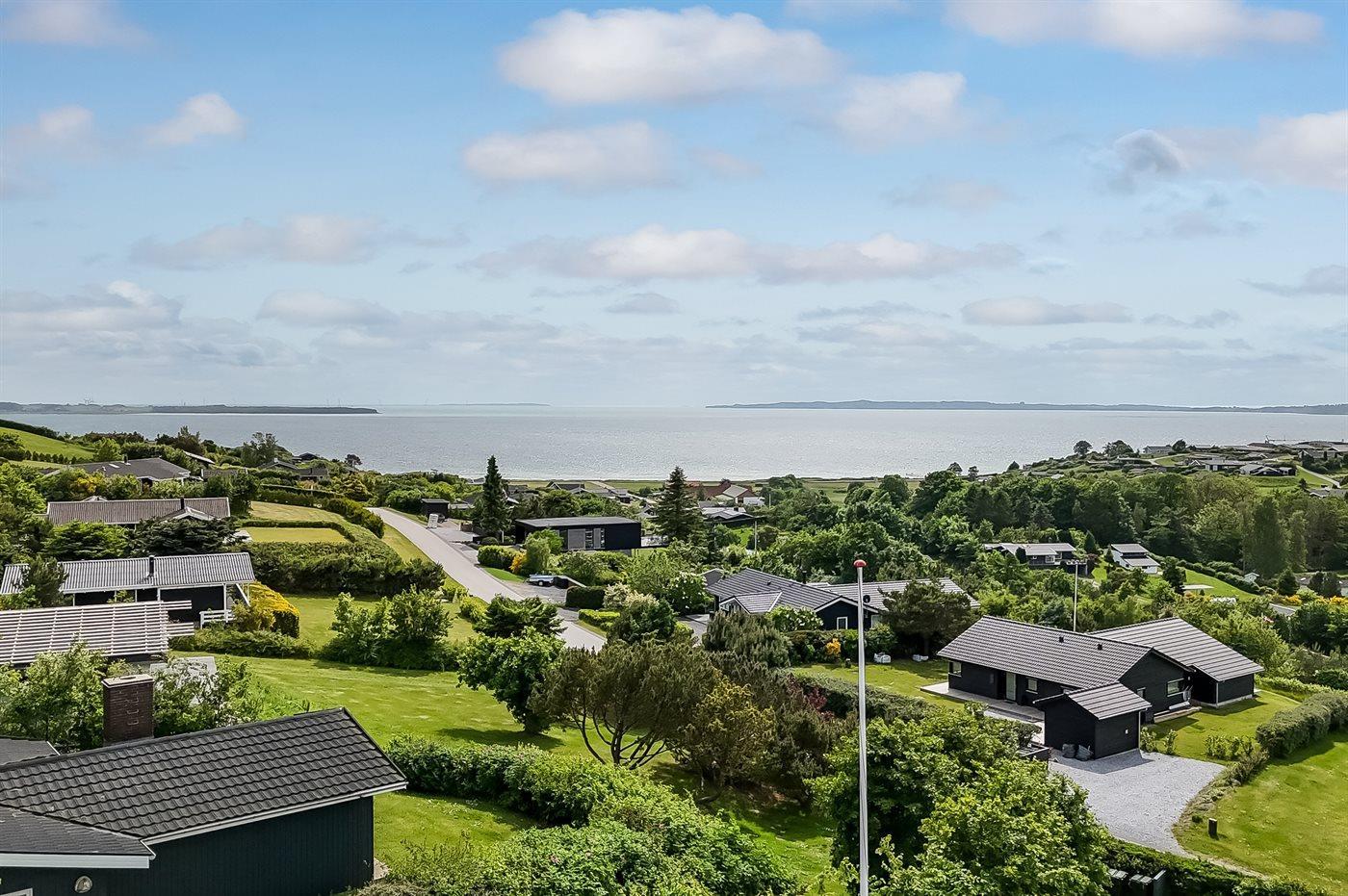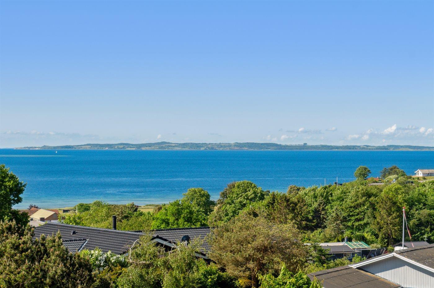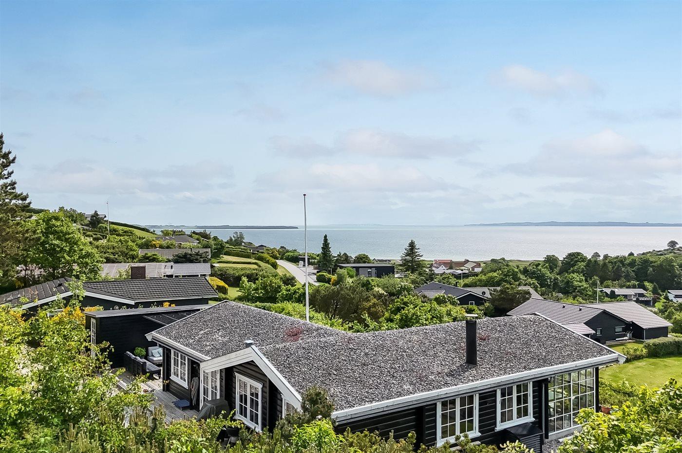 Mit einer phantastischen Aussicht über das Wasser, wo die Stadt Ebeltoft im Hintergrund zu ahnen ist, liegt dieses gemütliche und gepflegte Ferienhaus. Die Aussicht können Sie sowohl vom Haus als auch von der großen Terrasse aus genießen. Das Haus liegt ungestört – in schöner und ruhiger Umgebung und aufgrund der hohen Lage können Sie die schöne Aussicht auf die Umgebung genießen.