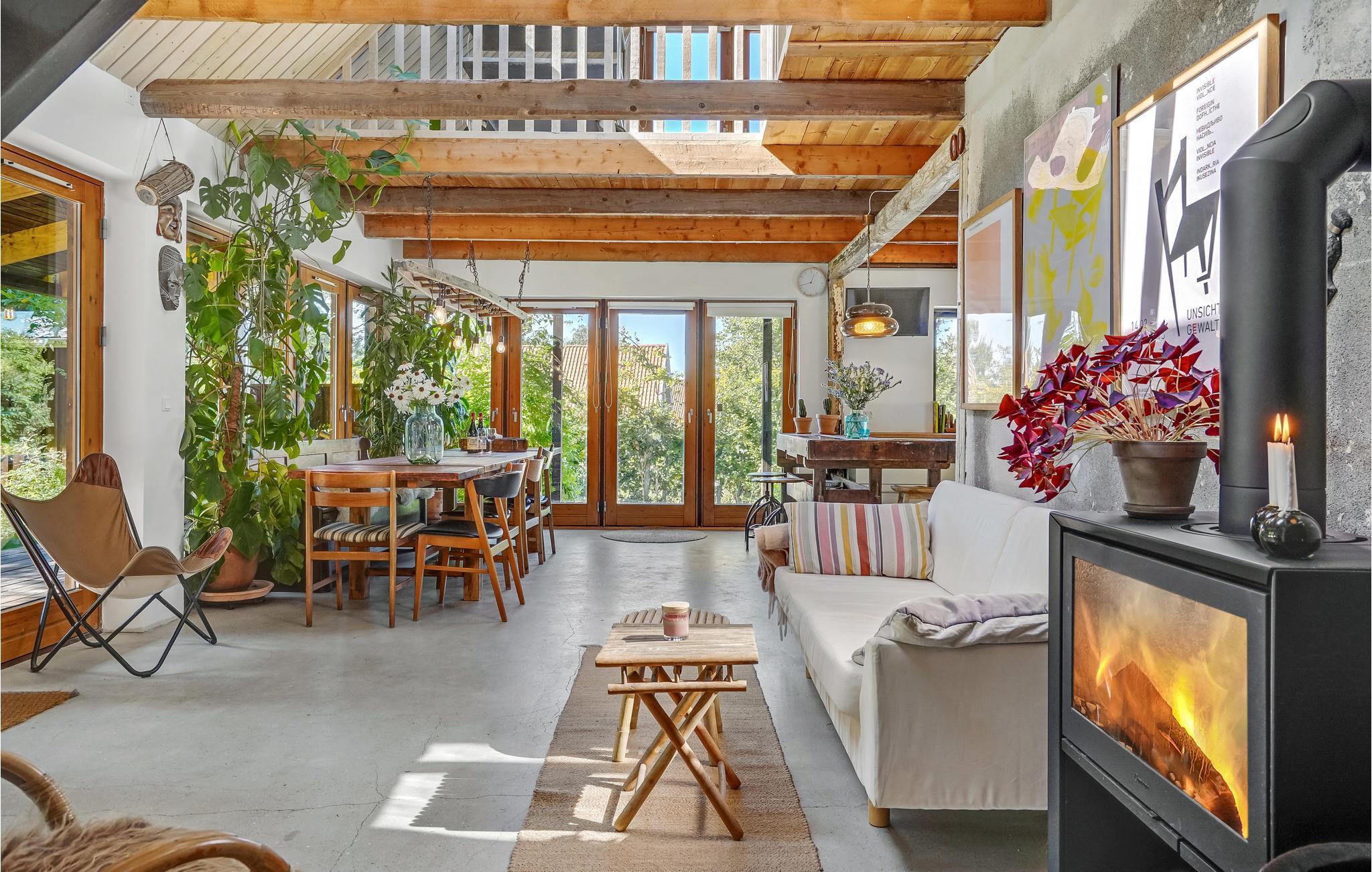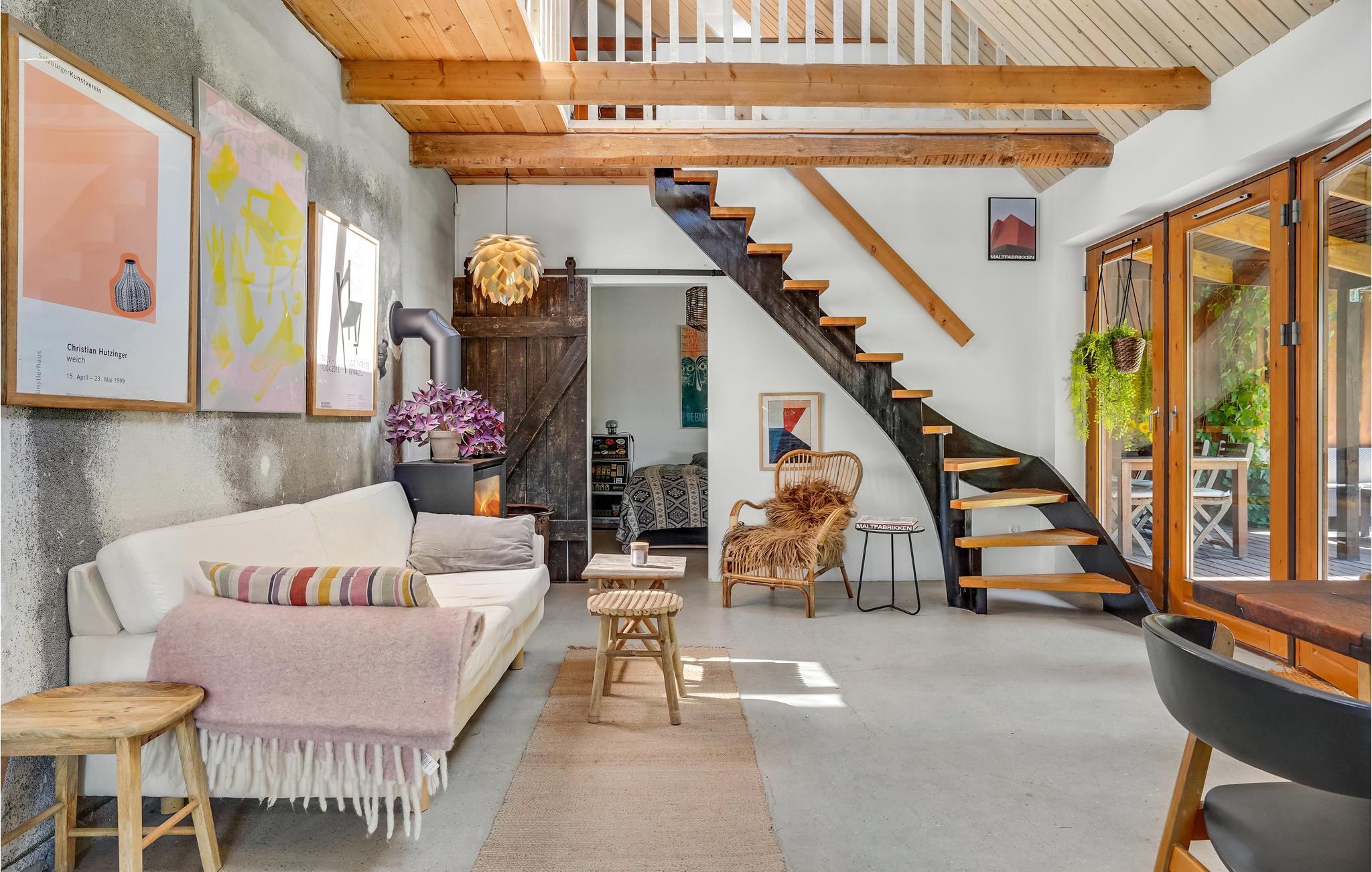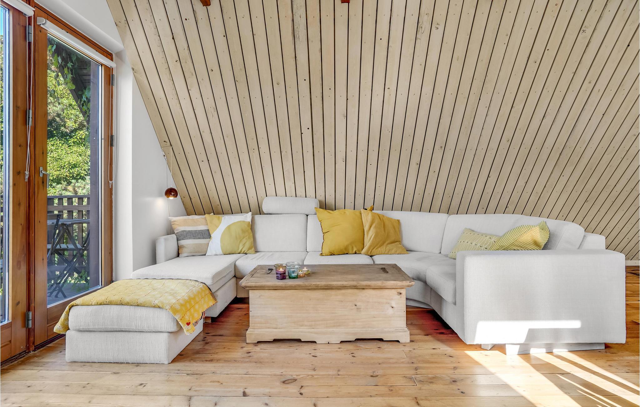 Willkommen in diesem einladenden Ferienhaus, das sich auf zwei Etagen erstreckt und Platz für neun Personen bietet. Das Herz des Hauses ist der schöne Wohnbereich mit offener Küche und langem Esstisch, wo Sie gut zusammen essen, kochen oder einfach einen ruhigen Abend mit einem Feuer im Kamin verbringen können. Da der Raum nach oben offen ist, haben Sie hier ein luftiges und angenehmes Raumgefühl mit viel Tageslicht. In der oberen Etage finden Sie eine weitere Sofaecke, sodass Sie immer einen ruhigen Ort zum Lesen finden können. Ihnen stehen außerdem vier Schlafzimmer und zwei Badezimmer zur Verfügung.