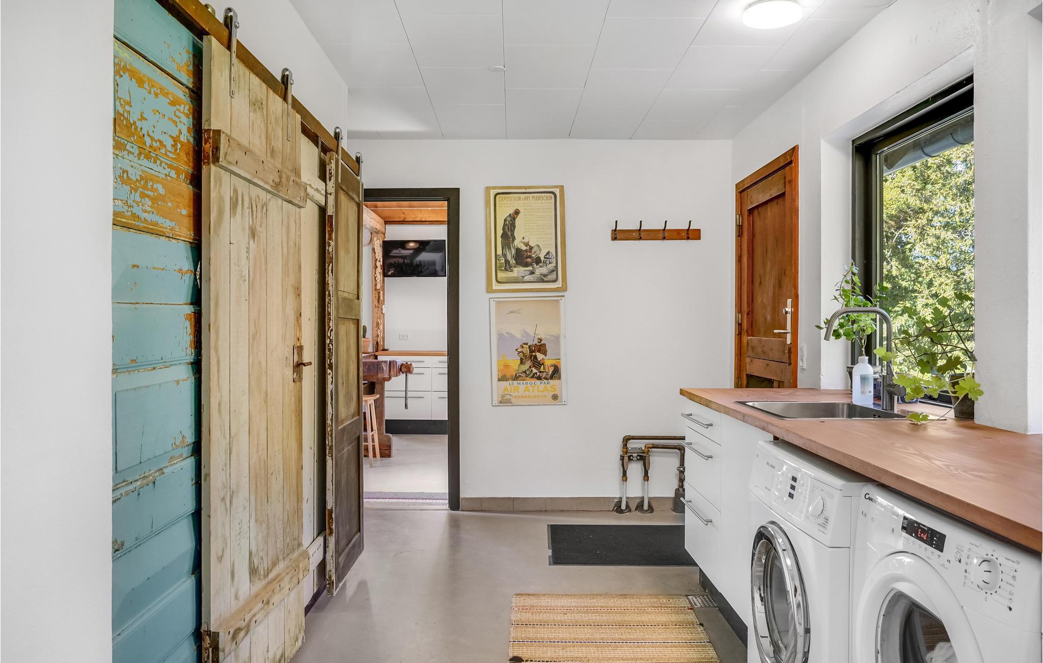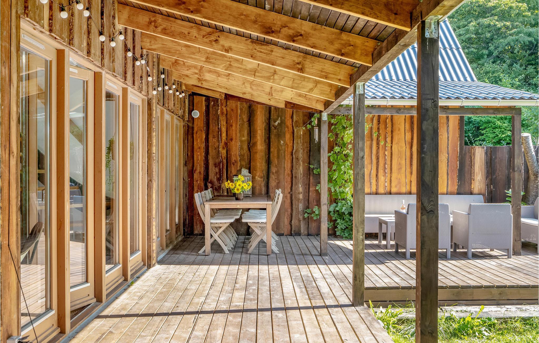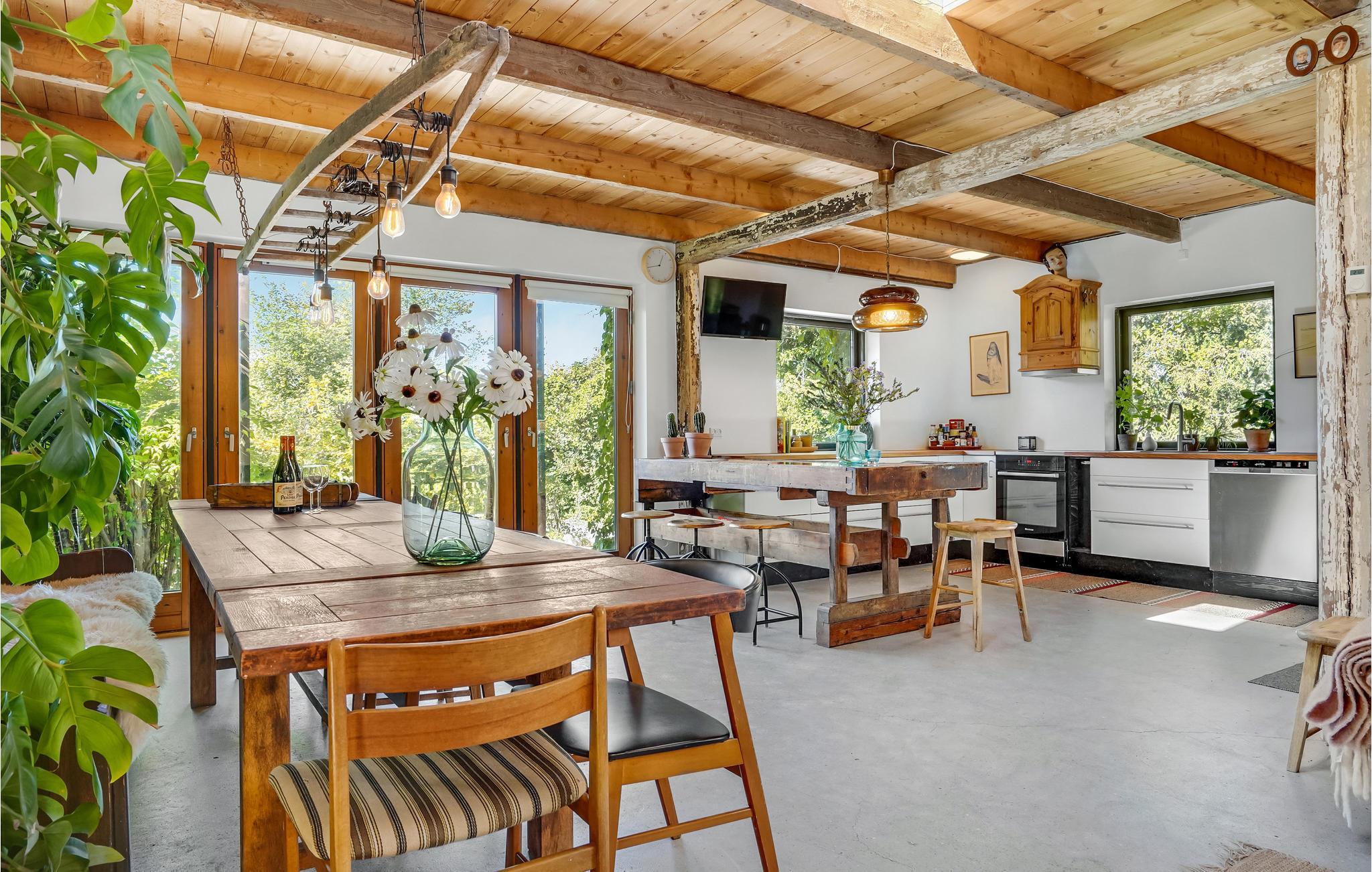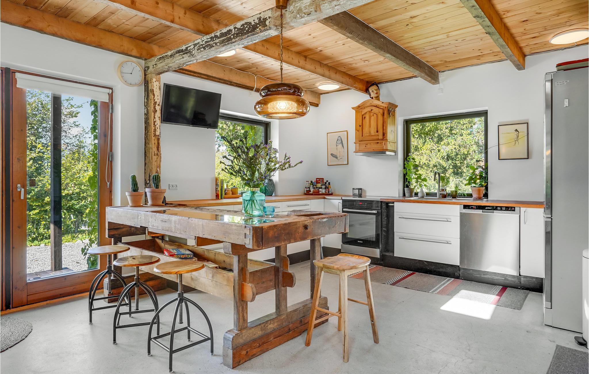 Willkommen in diesem einladenden Ferienhaus, das sich auf zwei Etagen erstreckt und Platz für neun Personen bietet. Das Herz des Hauses ist der schöne Wohnbereich mit offener Küche und langem Esstisch, wo Sie gut zusammen essen, kochen oder einfach einen ruhigen Abend mit einem Feuer im Kamin verbringen können. Da der Raum nach oben offen ist, haben Sie hier ein luftiges und angenehmes Raumgefühl mit viel Tageslicht. In der oberen Etage finden Sie eine weitere Sofaecke, sodass Sie immer einen ruhigen Ort zum Lesen finden können. Ihnen stehen außerdem vier Schlafzimmer und zwei Badezimmer zur Verfügung.