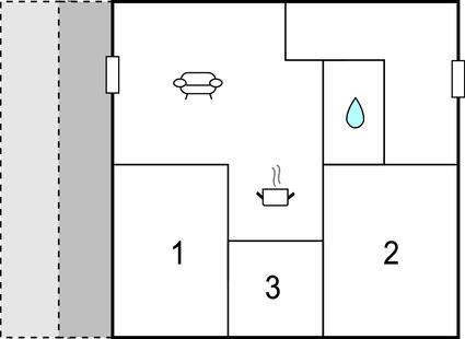 Wohnraum/Küche - 1 Schlafmöglichkeit. (Einzelbett(en)).