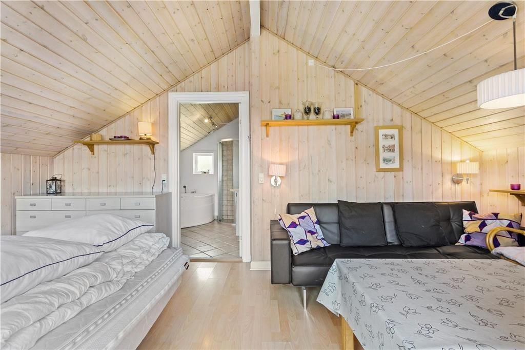 Dieses Ferienhaus ist das perfekte Objekt für Familien, die gemeinsam Urlaub am Wasser und nahe beliebter Ausflugsziele machen möchten. Es ist praktisch mit u.a. großem, hellem Anbau für separat wohnende Paare oder Teenager eingerichtet. Hier befindet sich auch ein eigenes Badezimmer mit Dusche und Whirlpool sowie ein kleines Wohnzimmer. Wenn der Anbau nicht genutzt wird, finden Sie im Haupthaus viel Platz und alles, was eine große Familie benötigt. Gemütlichkeit verbreitet sich sofort wenn der Kamin knistert. Sollte es einmal schlechtes Wetter geben, versammeln sich alle im Wohnzimmer und schauen im TV einen schönen Film. Im Badezimmer sind Waschmaschine und Wäschetrockner vorhanden. Dies ist ein Ferienhaus, das die beste Grundlage für gelungene Urlaubstage in Nordjütland zu bieten hat.