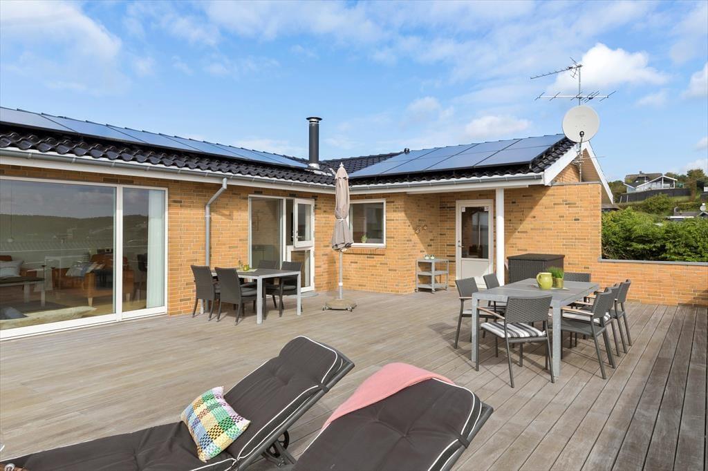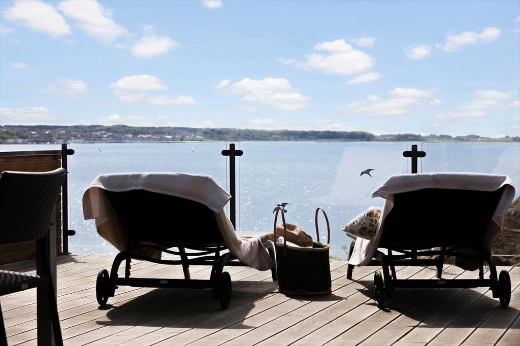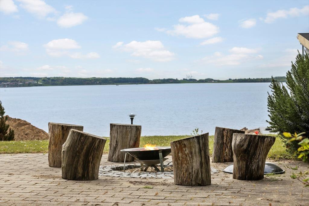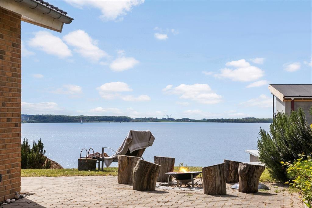 Wenn die Sonne vom Himmel strahlt, werdet ihr kaum der Versuchung widerstehen können, die große, einladende Terrasse zu genießen. Du suchst dir den perfekten Platz aus und startest den Tag mit einer heißen Tasse Kaffee in der Hand, während dein Blick über die atemberaubende Panoramaaussicht auf die Ebeltoft Vig schweift. Und wenn der Abend hereinbricht, entzündest du den Grill oder die Feuerstelle. Die Gartenmöbel auf der Terrasse bieten den perfekten Rahmen für lange, gemütliche Sommerabende unter freiem Himmel. Das Haus liegt auf einer Anhöhe und ist über eine Treppe zu erreichen und bietet freie Sicht auf das Meer – als würde die Welt stillstehen in deinem eigenen Ferienparadies.