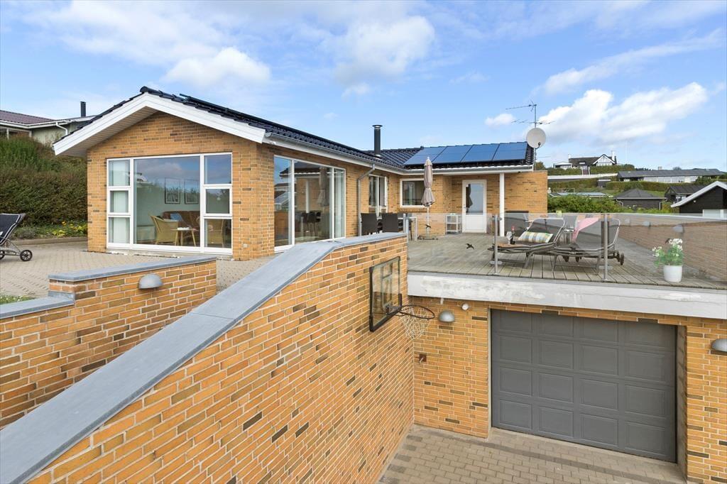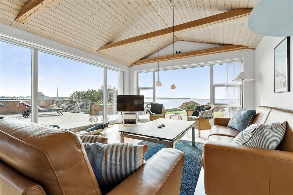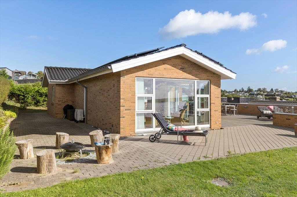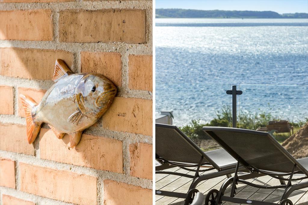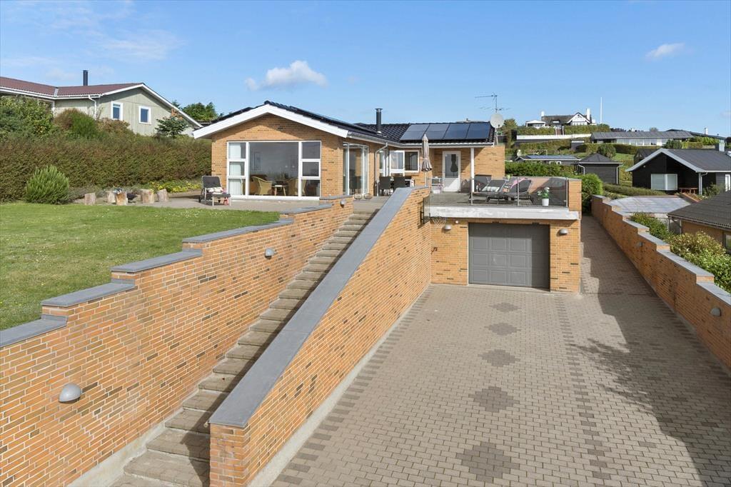 Wenn die Sonne vom Himmel strahlt, werdet ihr kaum der Versuchung widerstehen können, die große, einladende Terrasse zu genießen. Du suchst dir den perfekten Platz aus und startest den Tag mit einer heißen Tasse Kaffee in der Hand, während dein Blick über die atemberaubende Panoramaaussicht auf die Ebeltoft Vig schweift. Und wenn der Abend hereinbricht, entzündest du den Grill oder die Feuerstelle. Die Gartenmöbel auf der Terrasse bieten den perfekten Rahmen für lange, gemütliche Sommerabende unter freiem Himmel. Das Haus liegt auf einer Anhöhe und ist über eine Treppe zu erreichen und bietet freie Sicht auf das Meer – als würde die Welt stillstehen in deinem eigenen Ferienparadies.