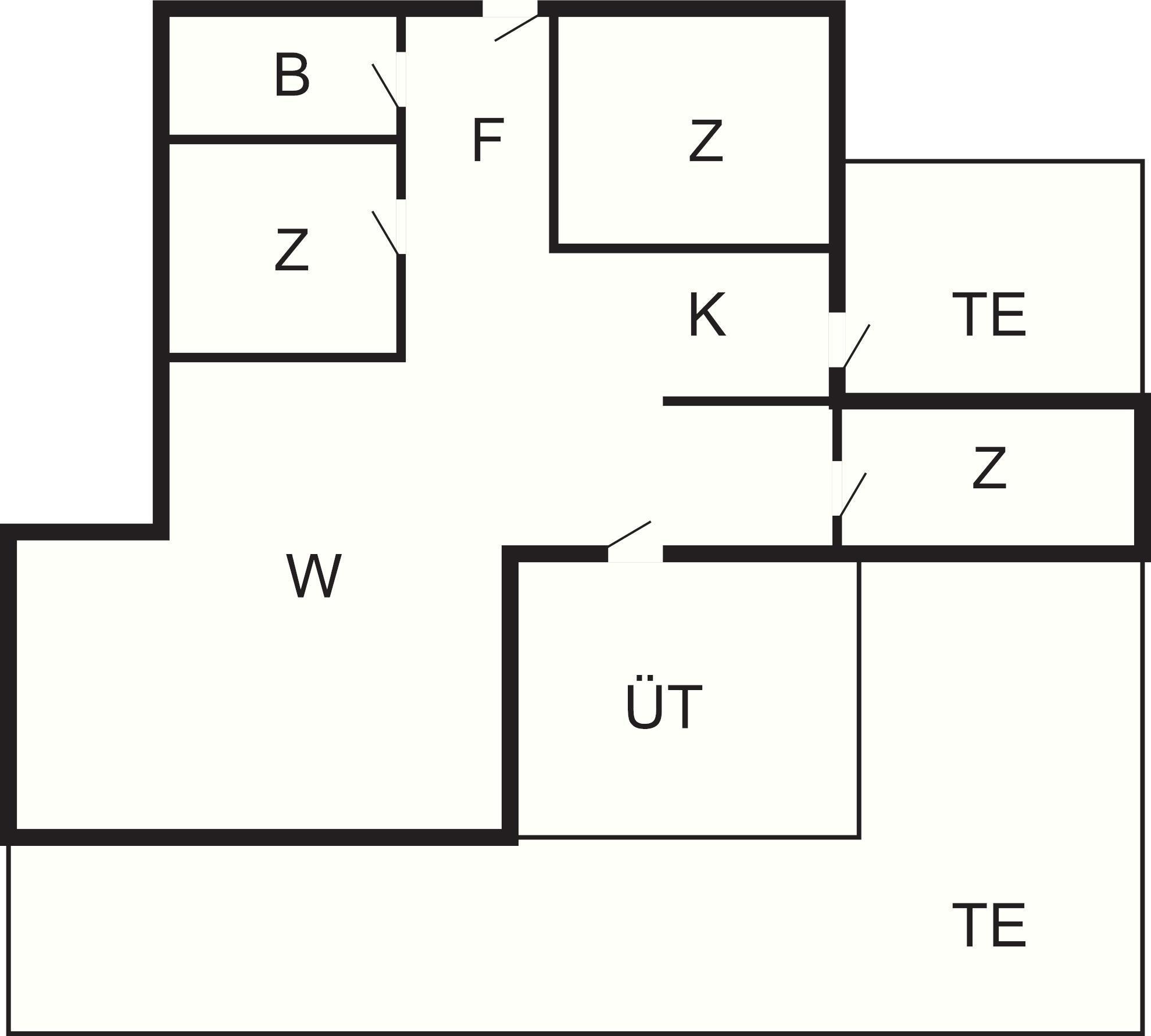 Bad: Waschm., WC, Waschb., Dusche, Fußbodenheiz.