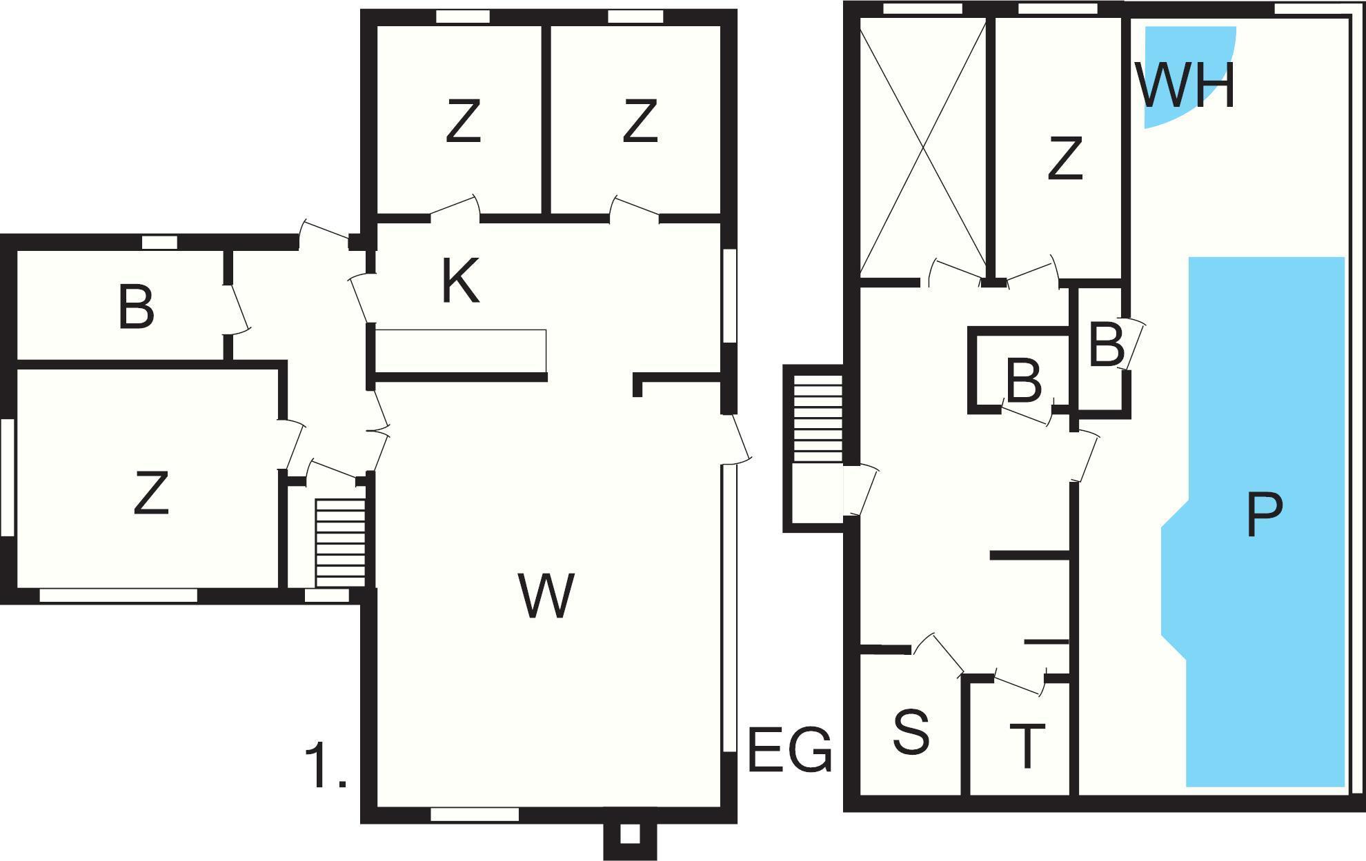 4 Schlafz.: (1DB)+(1DB)+(2B)+(2B), Kinderbett