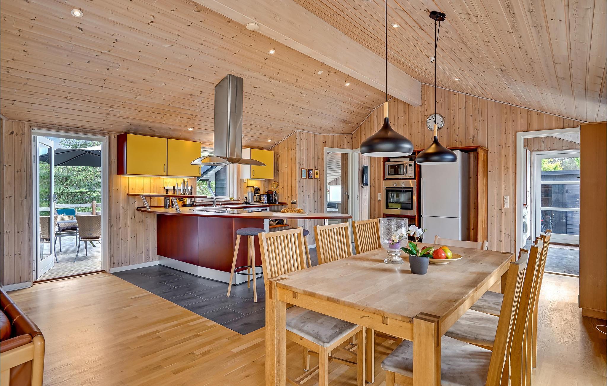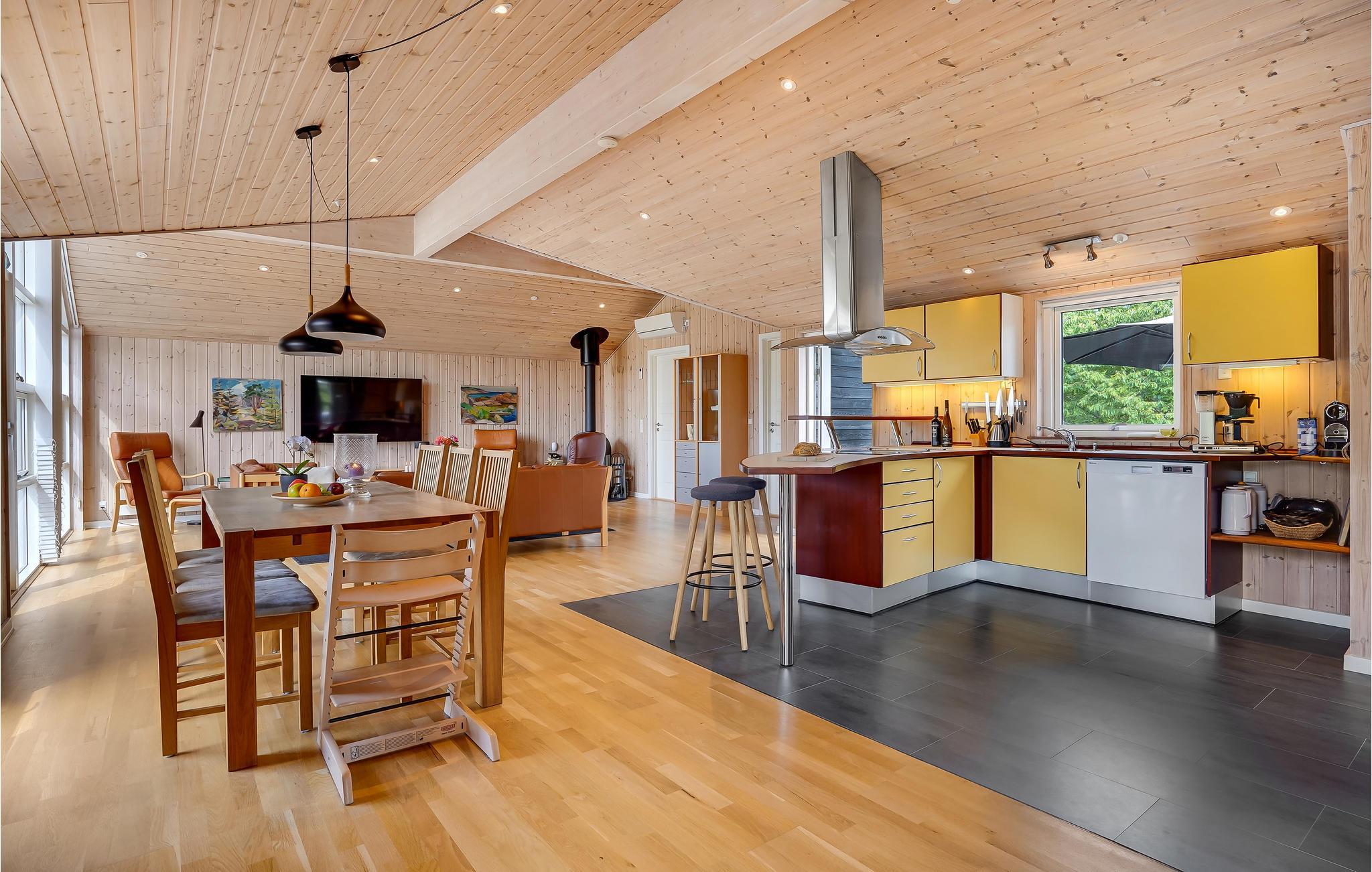 Wenig Energie verbrauchendes und schönes Ferienhaus von hohem Standard. Es liegt auf einem leicht abfallenden Naturgrund mit Rasen. Das geräumige Haus enthält alle notwendigen Einrichtungen für einen angenehmen Urlaub. Stunden im Freien und die Sonnen genießen Sie auf der Südwestterrasse mit Aussicht auf die Landschaft. Da das Haus nah am Strand liegt und es mit dem Fahrrad auch nicht lange dauert nach Ebeltoft zu kommen, haben Sie hier ein gutes Ferienhaus um die meisten Attraktionen Ostjütlands zu erreichen. Ein schönes Erlebnis verspricht ein Ausflug in den Nationalpark Mols Bjerge, von der Erhebung Trehøje haben Sie bei gutem Wetter Sicht auf Fünen und Seeland. Im Haus gibt es eine schnelle Internetverbindung (50 mb/50).