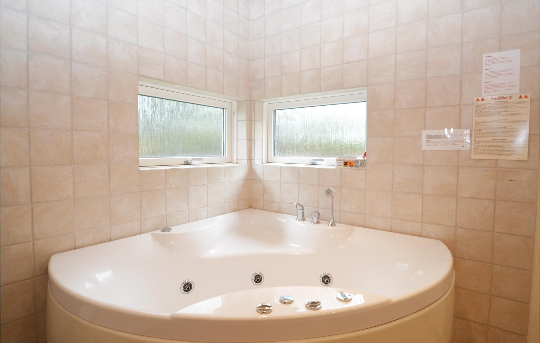 Helles Ferienhaus nahe Elkenøre Strand mit Terrasse, Sauna, Whirlpool und großem Garten, ideal für einen entspannten Urlaub in Dänemark.