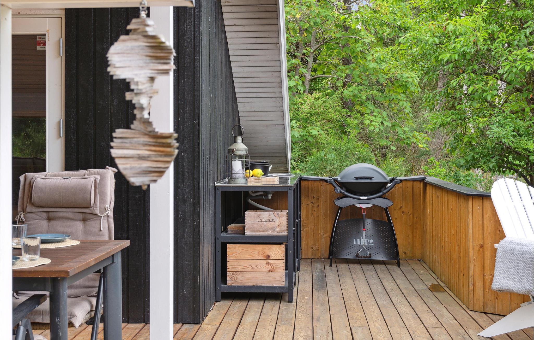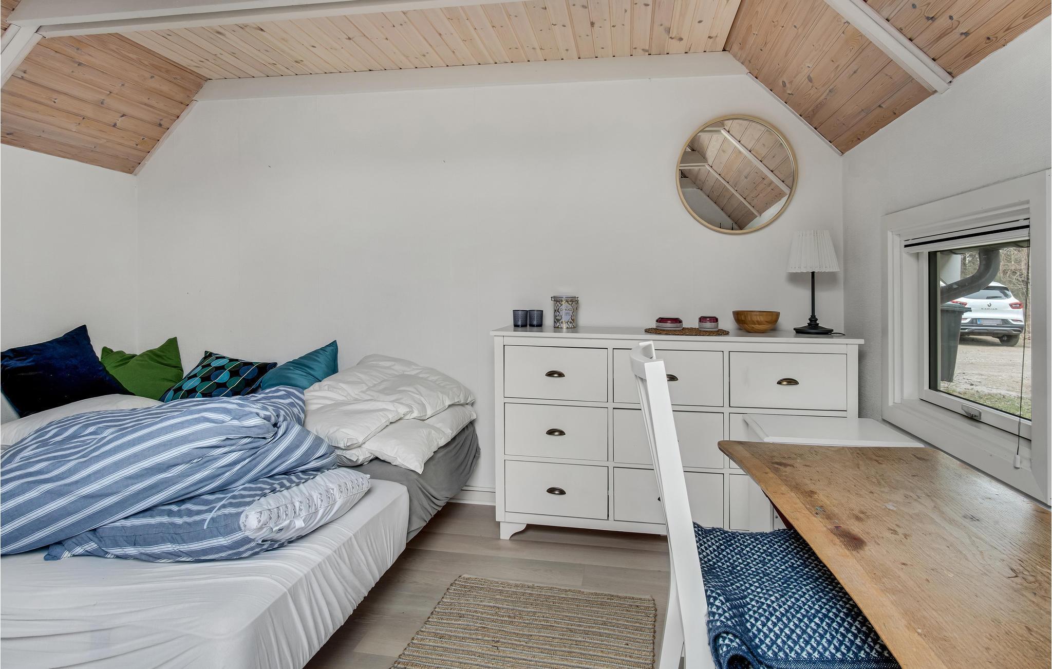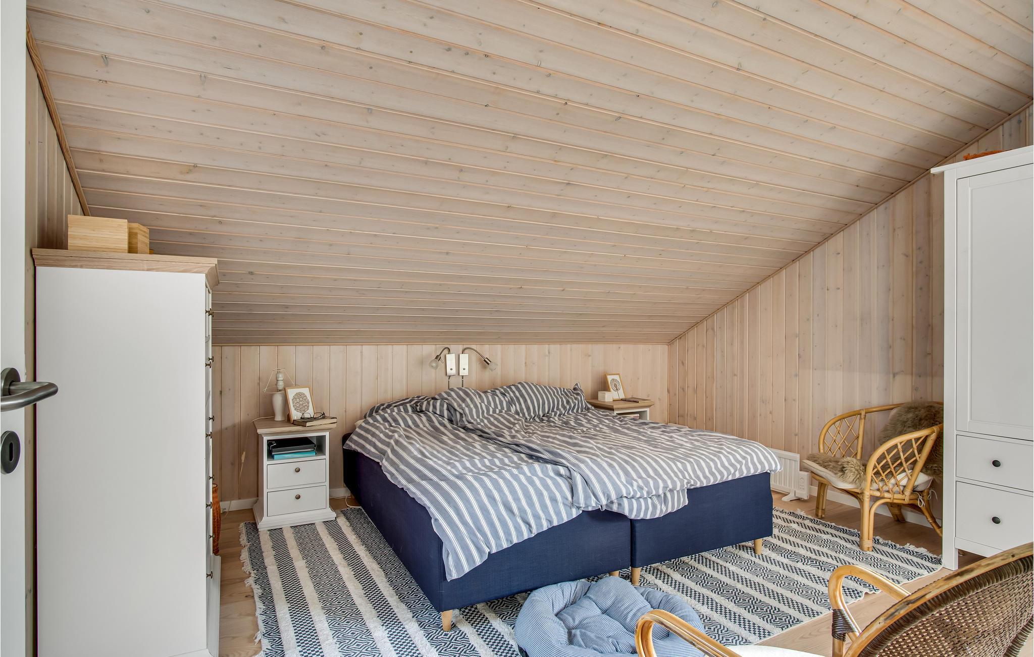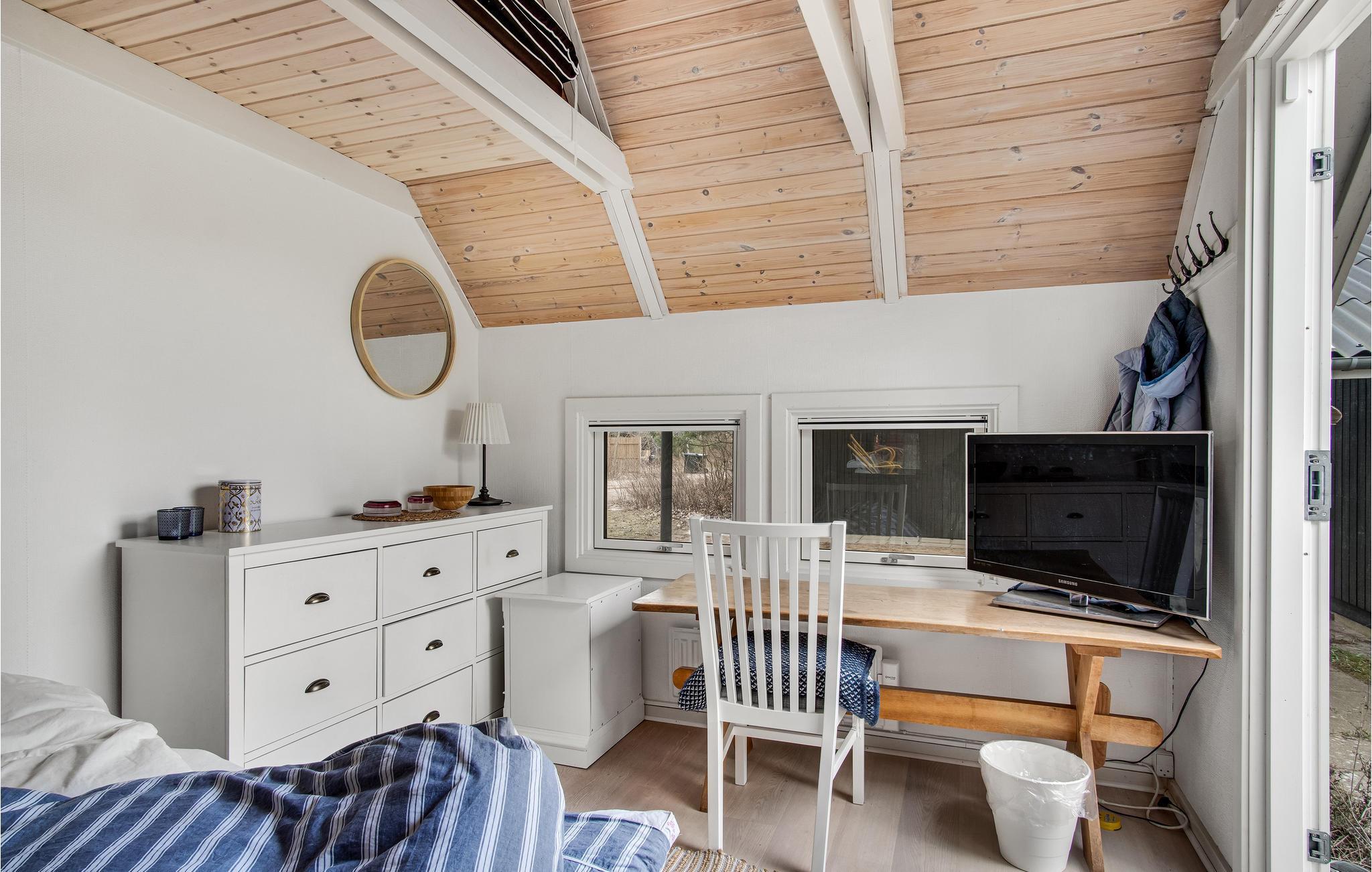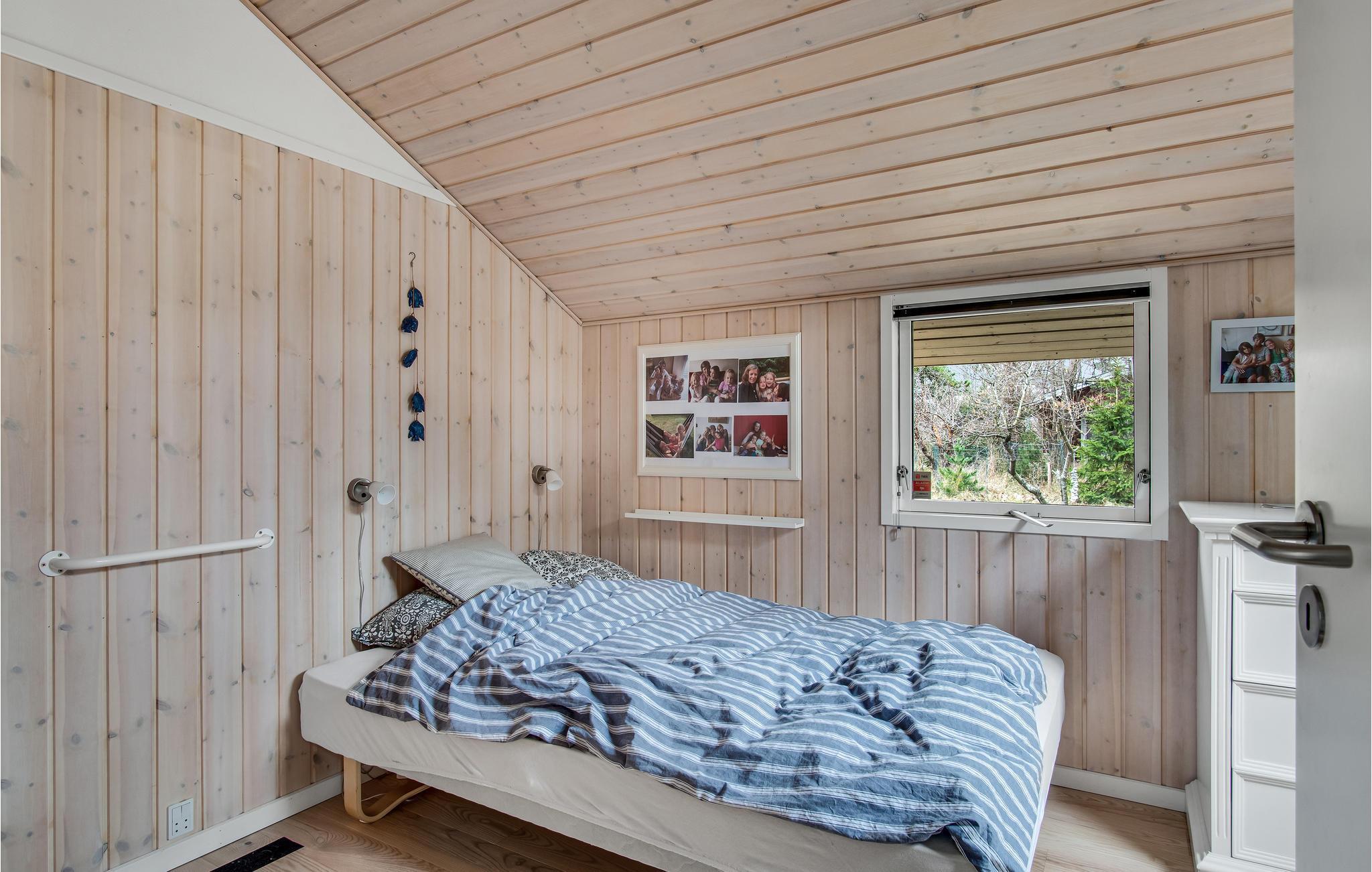 In idyllischer Lage umgeben von Bäumen erwartet Sie dieses einladende Ferienhaus. Die helle und moderne Einrichtung lädt dazu ein, in vollen Zügen mit Ihren Lieben zu entspannen. Holzverkleidete Wände und die geschmackvollen Möbel sorgen für den wohnlichen Charme der Räume. Genießen Sie gemeinsame Mahlzeiten am langen Esstisch mit wunderbarem Blick in den Garten. Nach einem schönen Tag am Meer oder einem spannenden Ausflug in der Umgebung können Sie es sich in der einladenden Sofalandschaft mit Blick ins Freie bequem machen und zusammen Spiele spielen. Besonders gemütlich wird es, wenn Sie im Kaminofen anfeuern und beim Knistern der Flammen noch lange gemütlich plaudern.